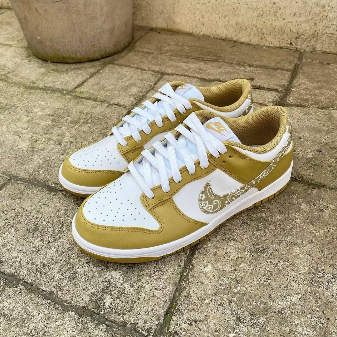 Nike Dunk Low ESS "Barley Paisley" 白金 香檳金 白黃 女款 變形蟲 低筒