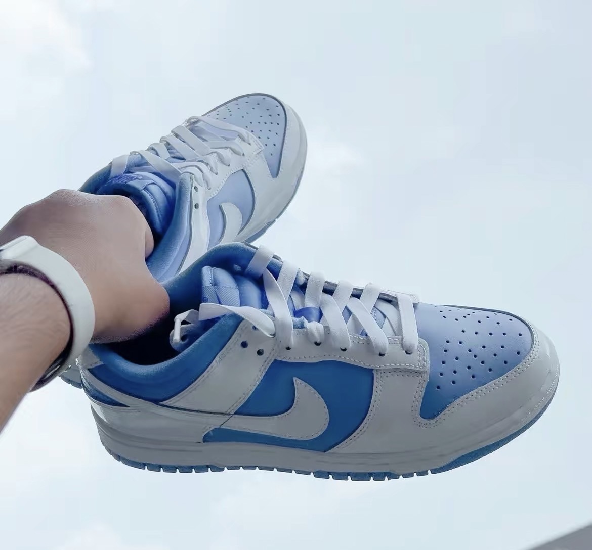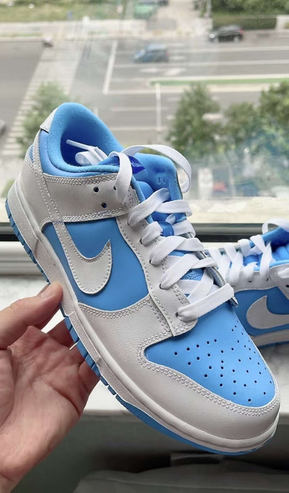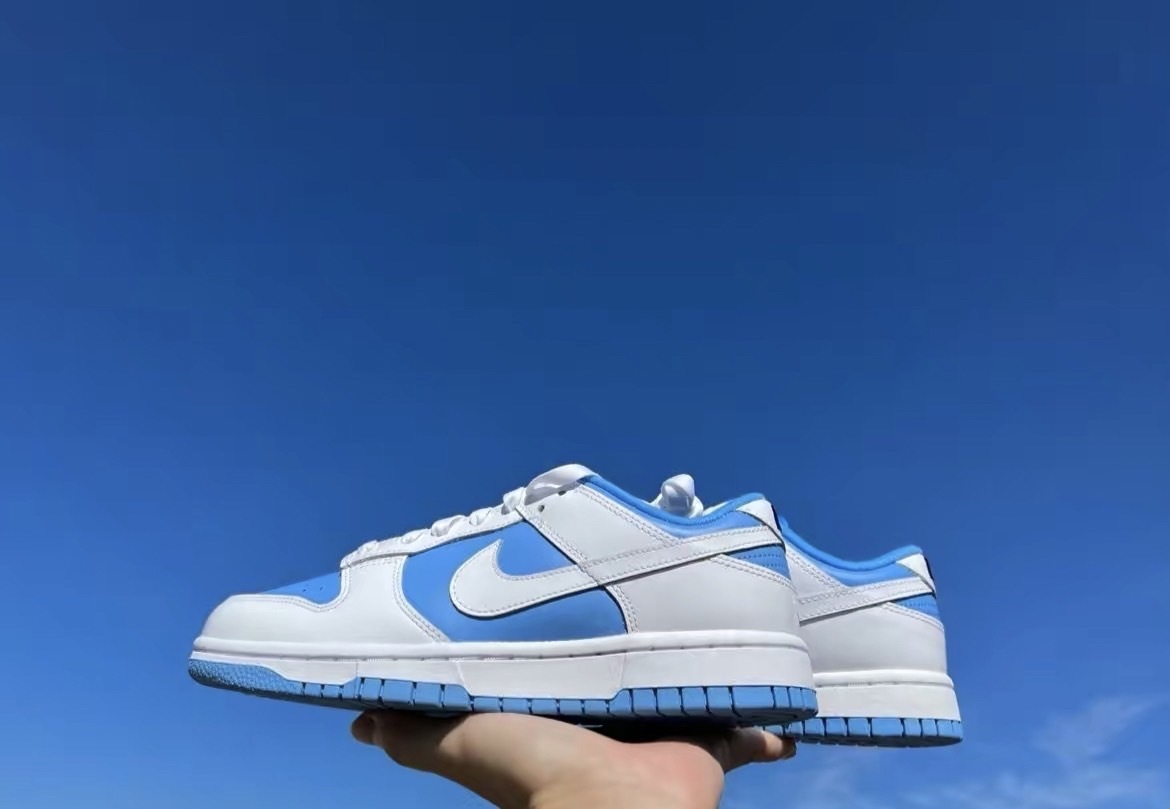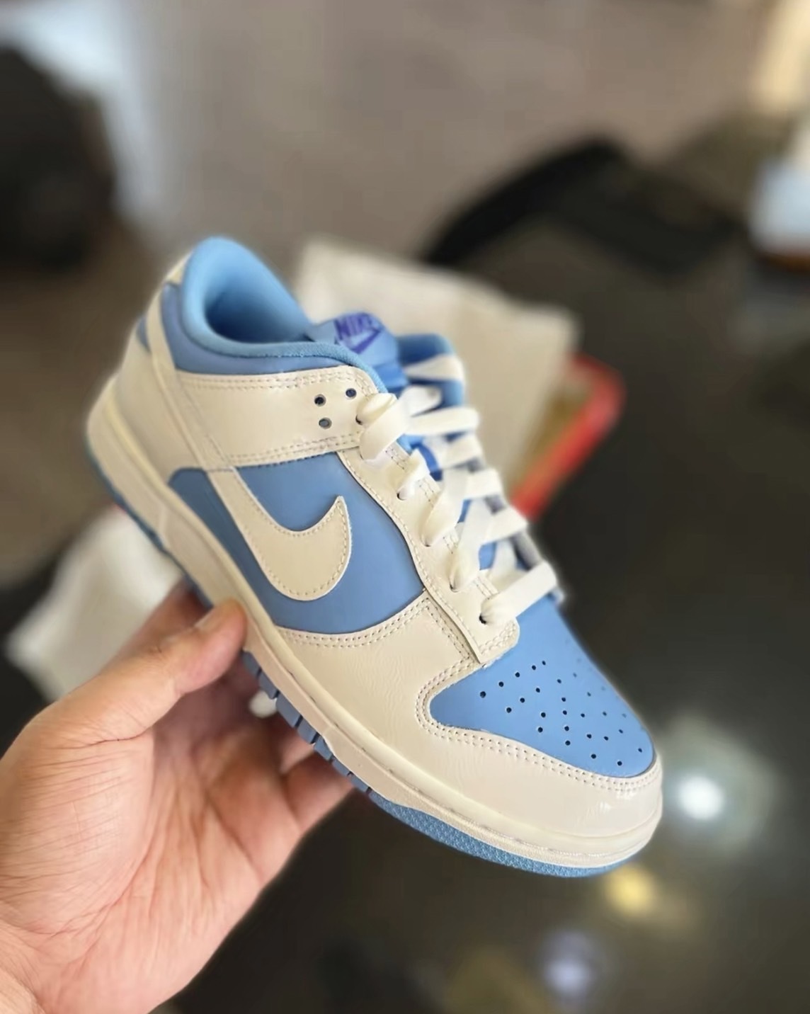Nike Dunk Low ESS "Reverse UNC" Reverse North Carolina Blue Patent Leather Blue and White Women's