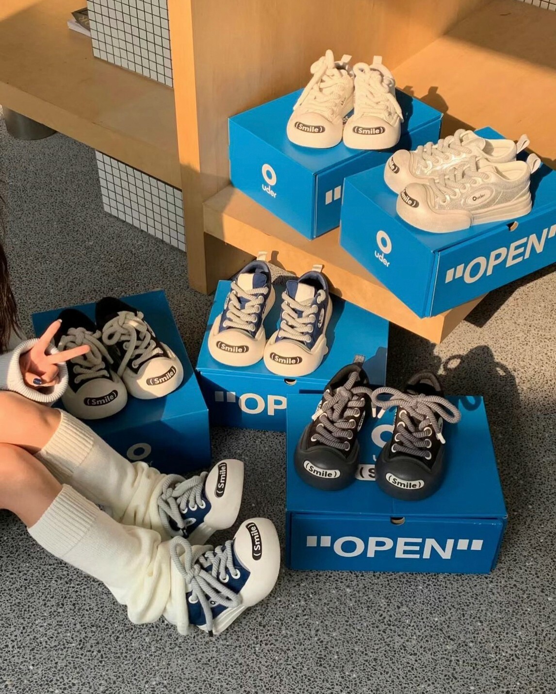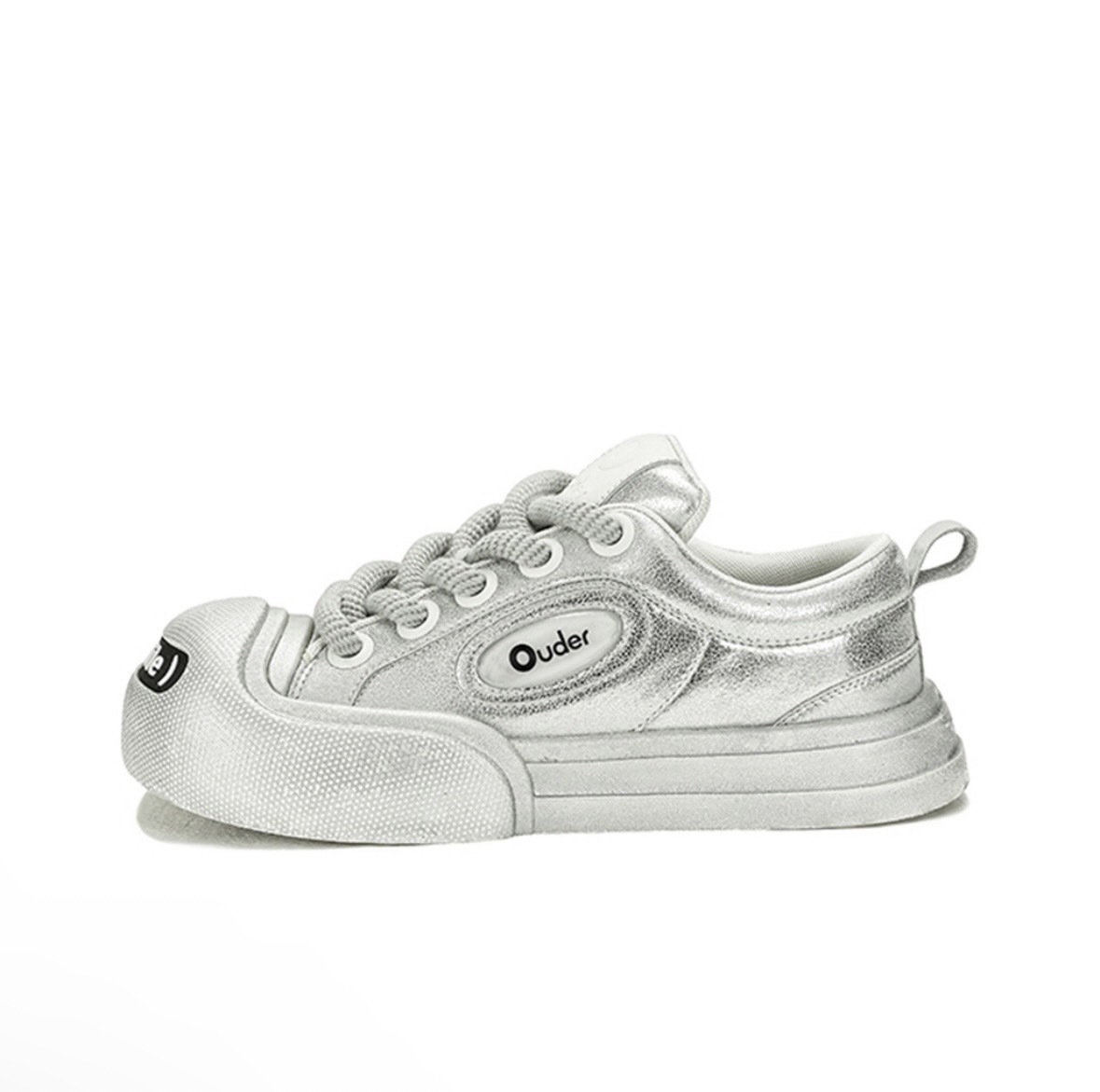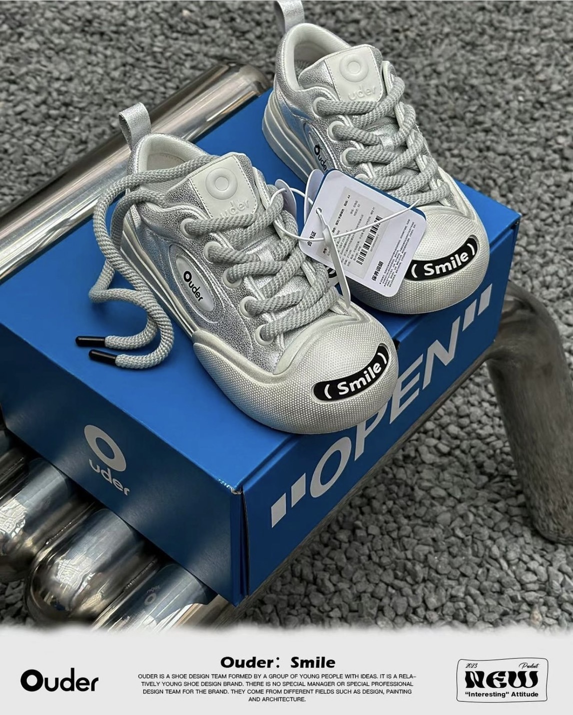 Ouder (Smile) smile, round head, thick bottom, silver gray, old low-top canvas shoes, cutting-edge designer brand