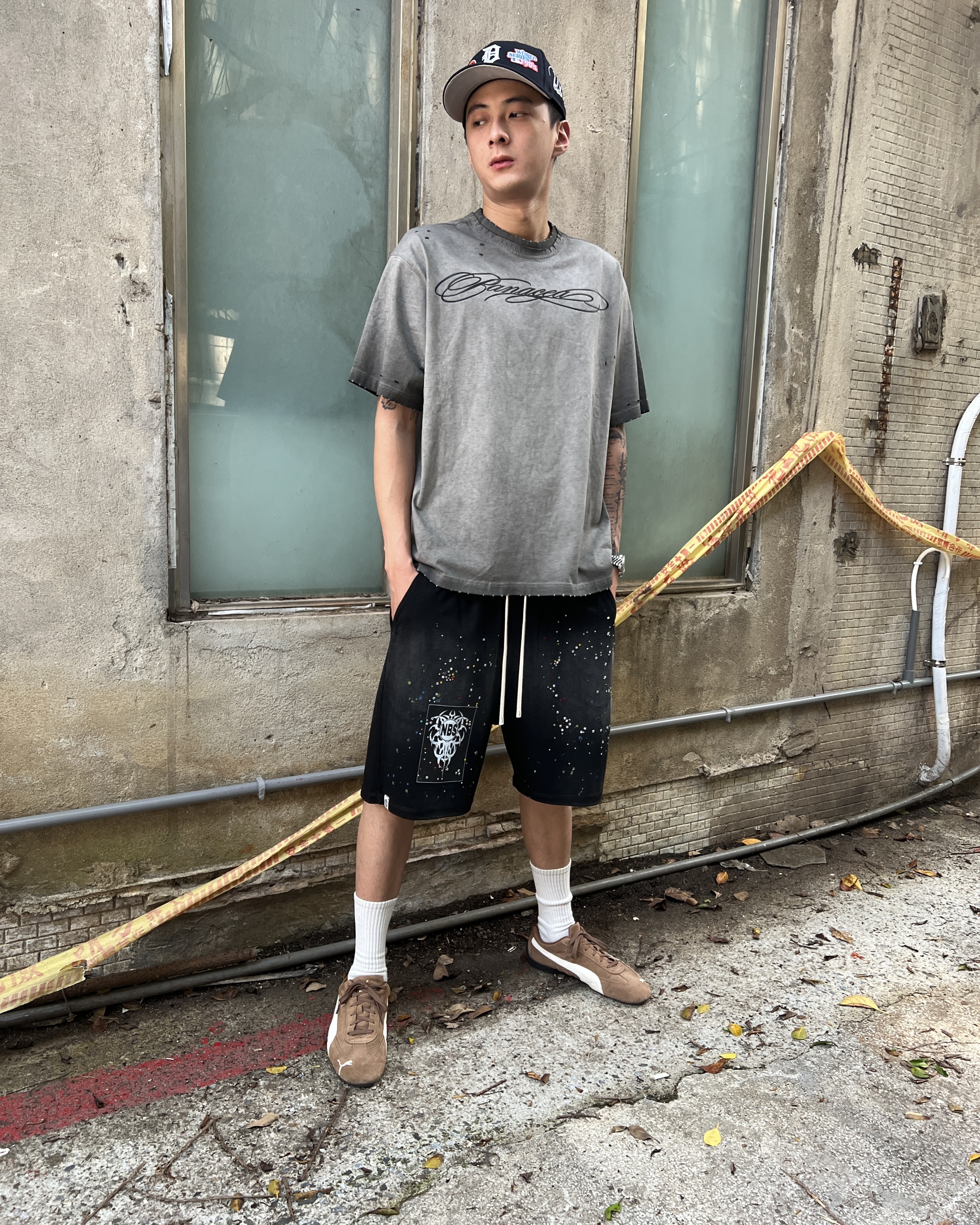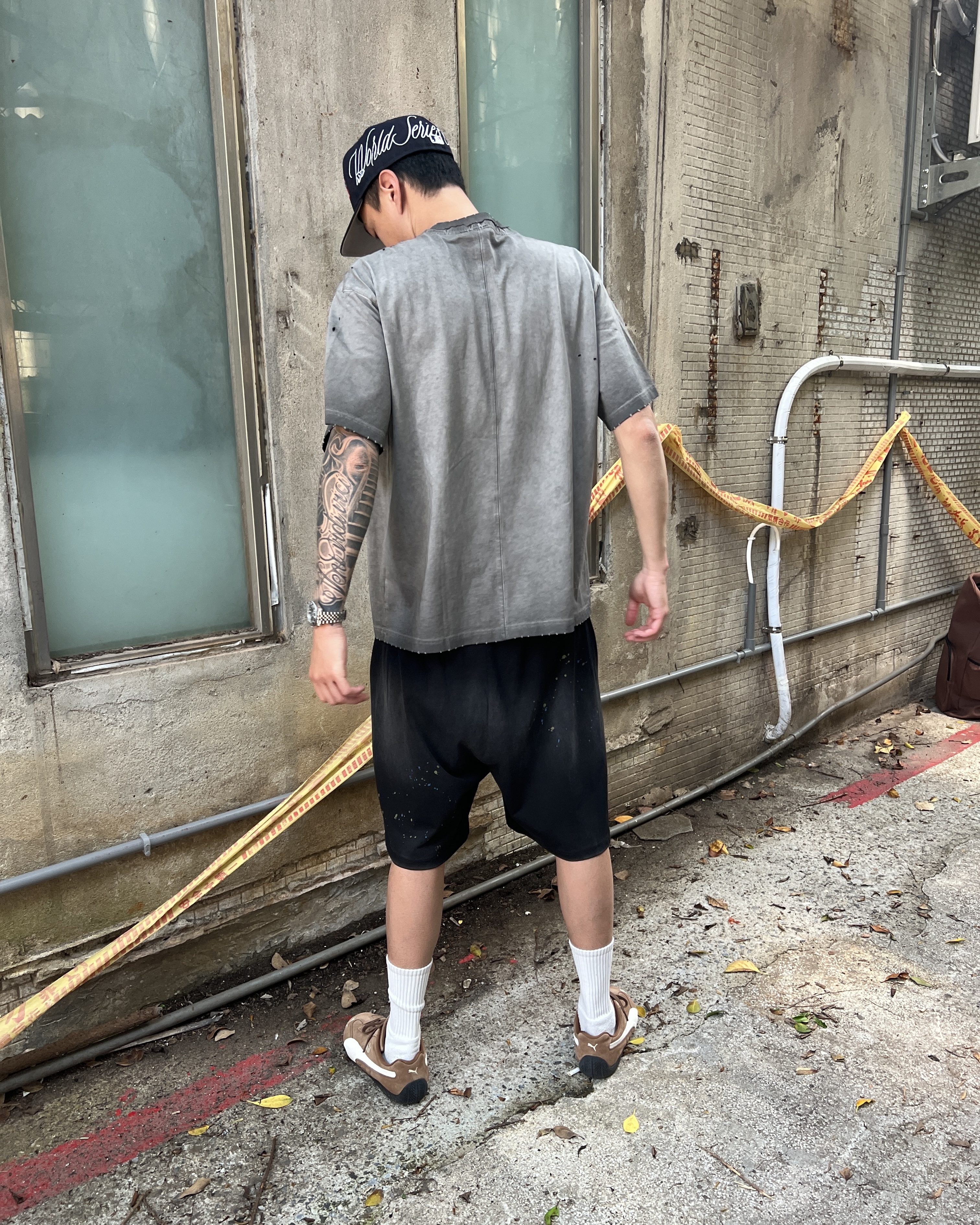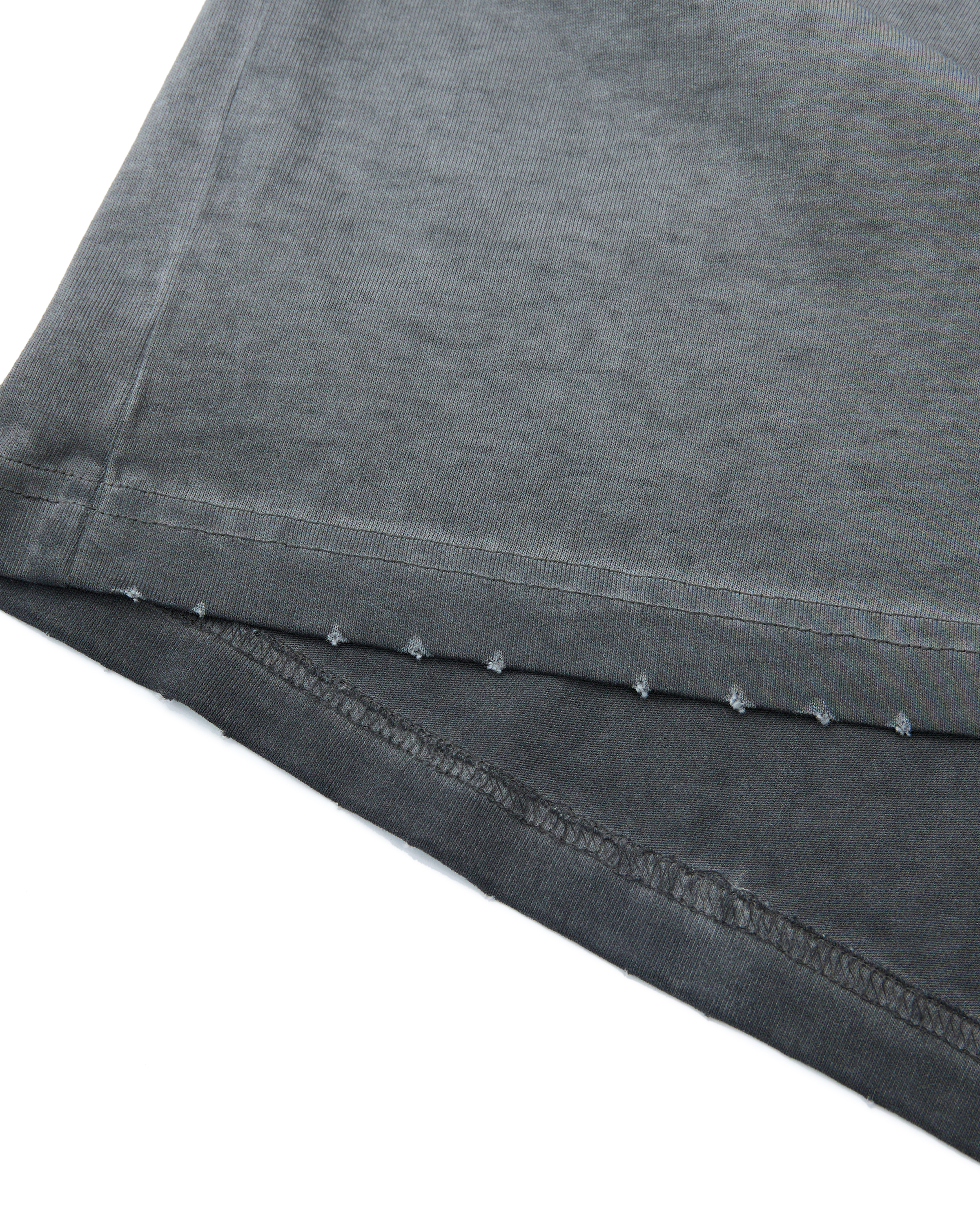 全件經礦洗加工處理,搭配局部破壞與褪色細節,塑造出自然斑駁的復古街頭氛圍。