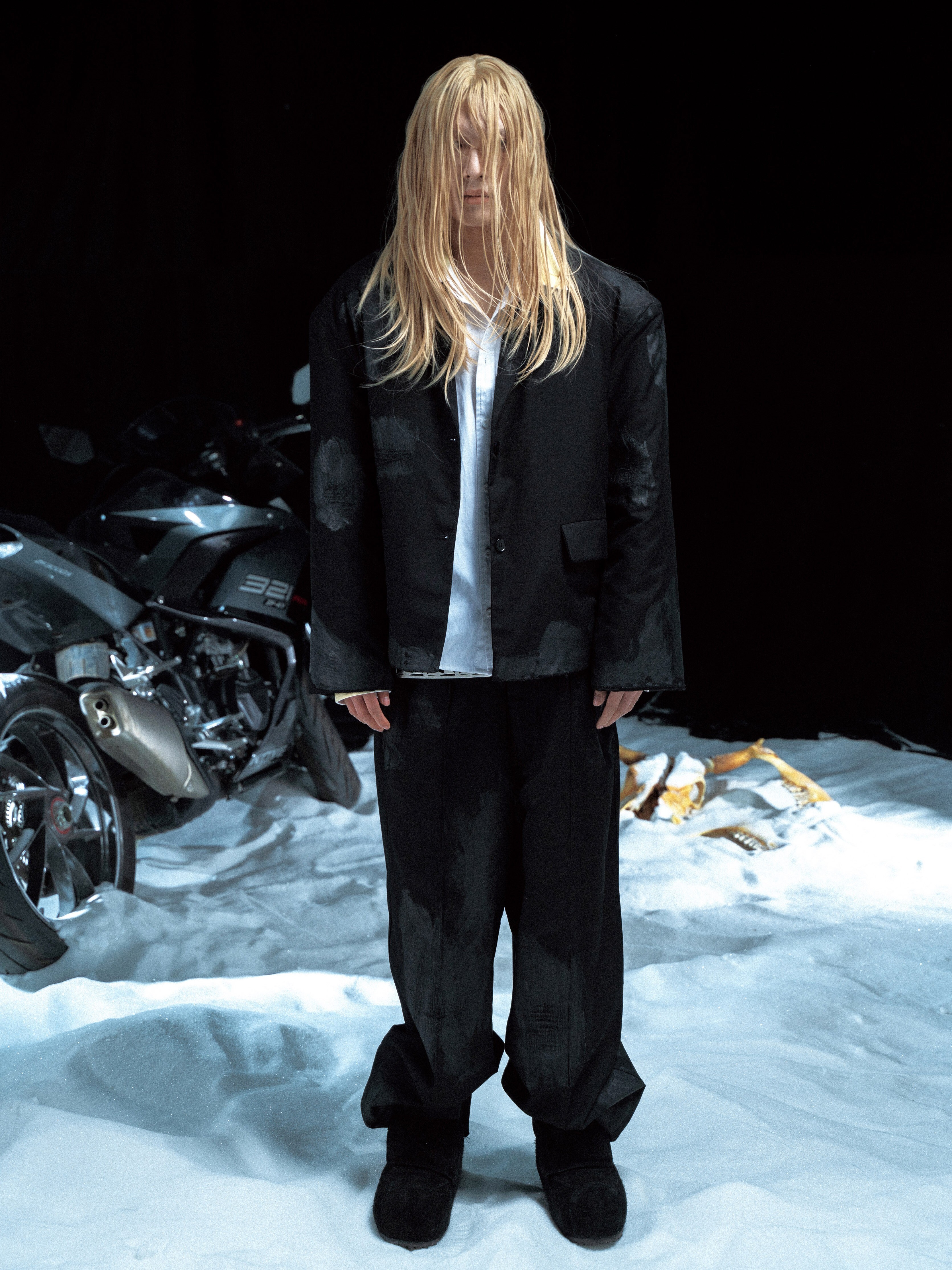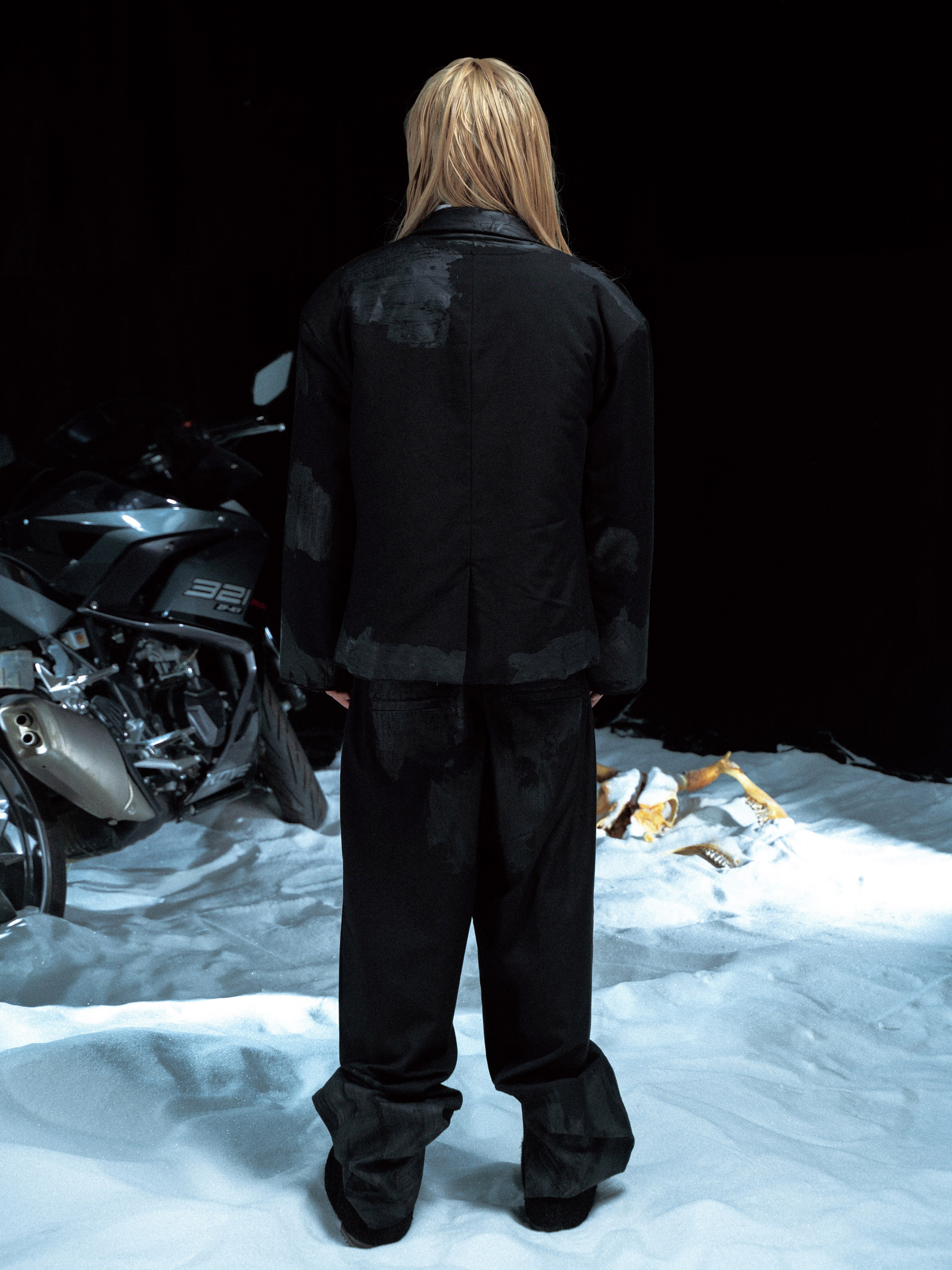 PCCVISION 3MAN0N Double waist distressed dirty dyed loose suit trousers