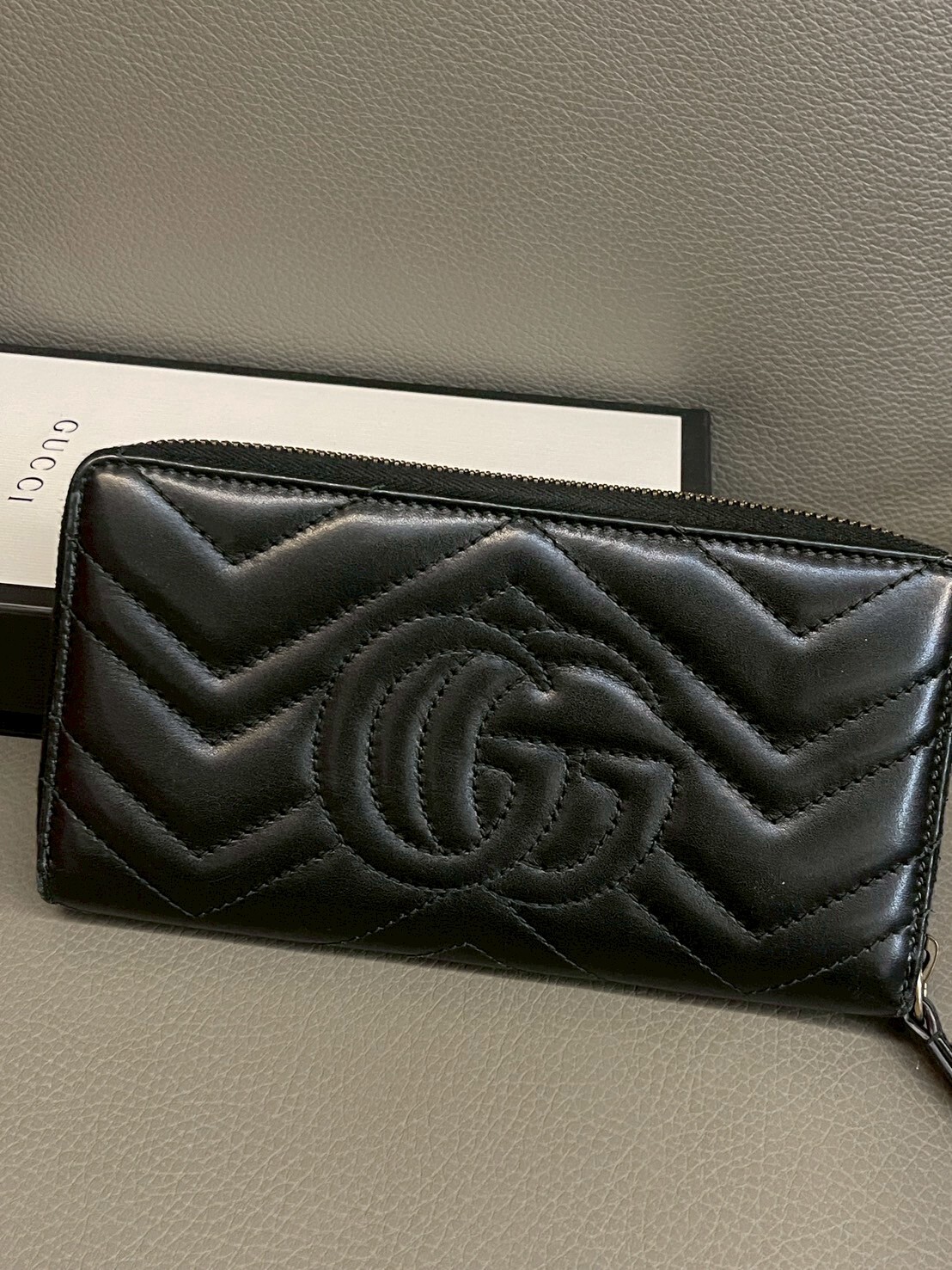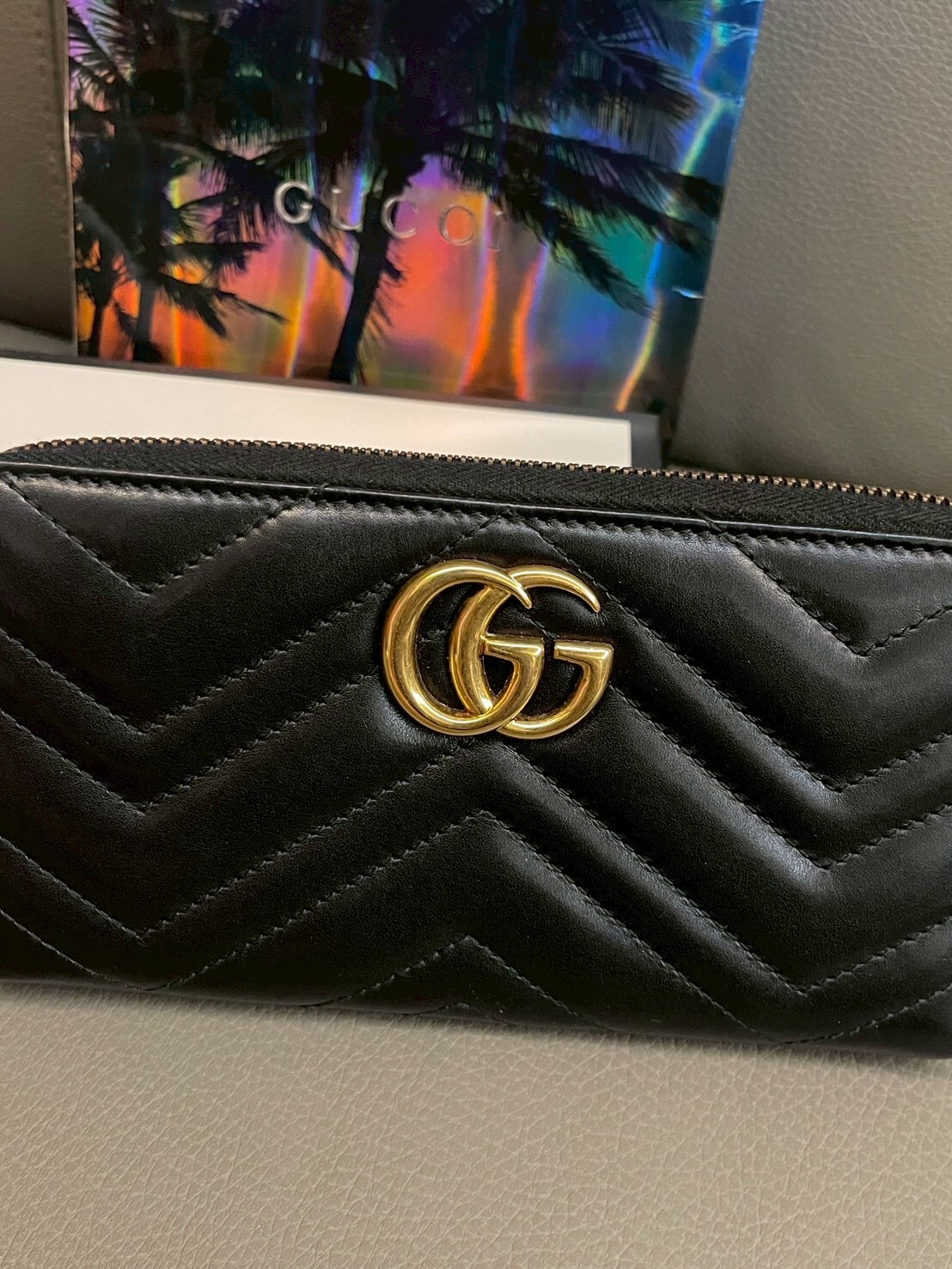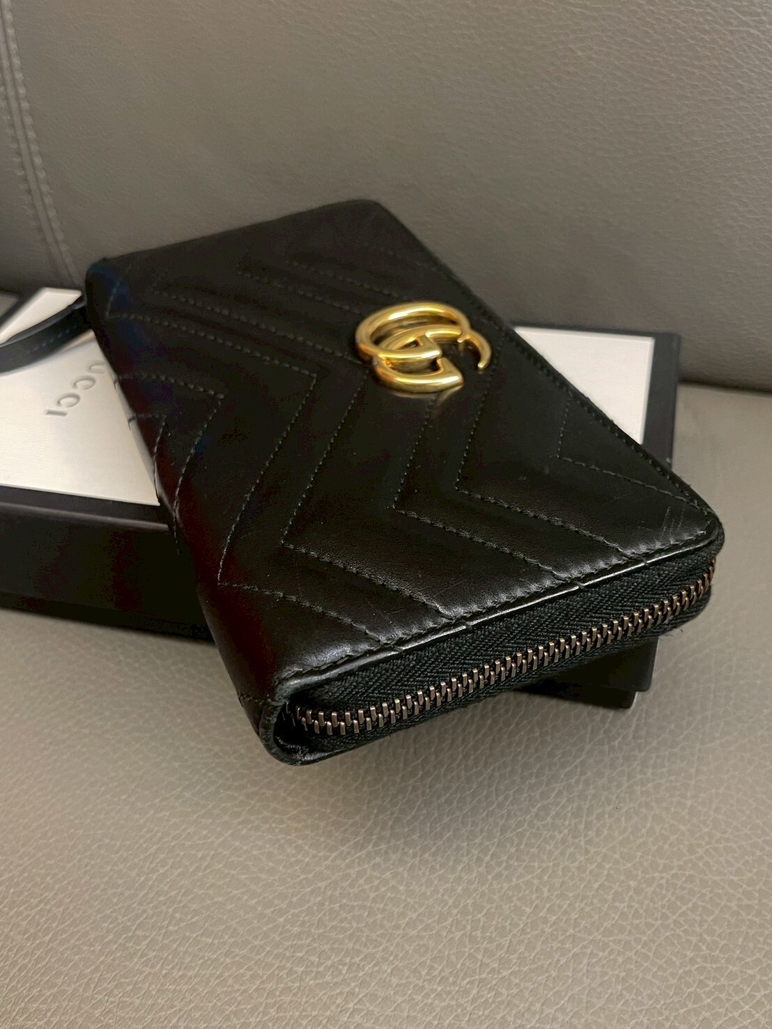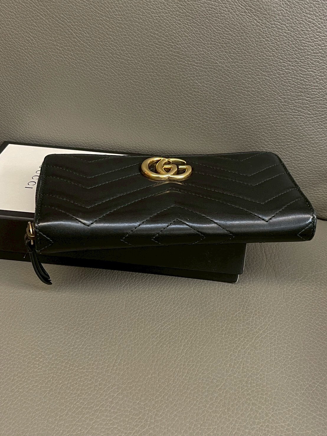 二手美品 GUCCI GG Marmont系列 金標Logo拉鍊長夾