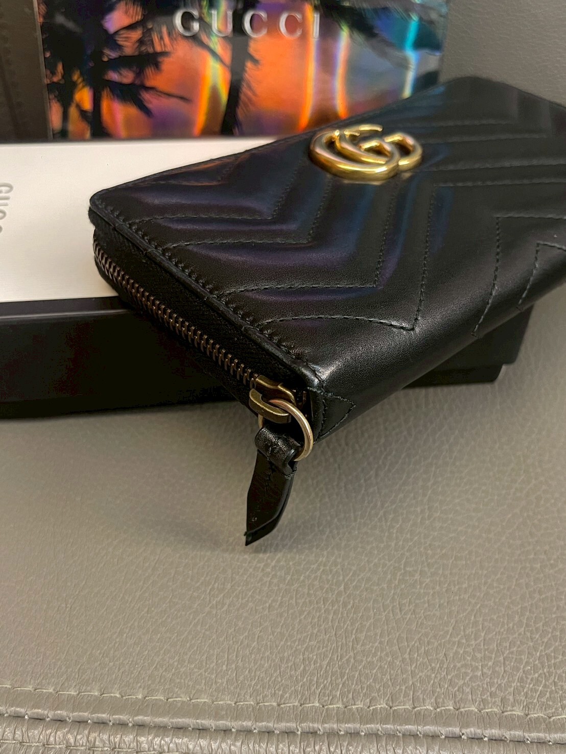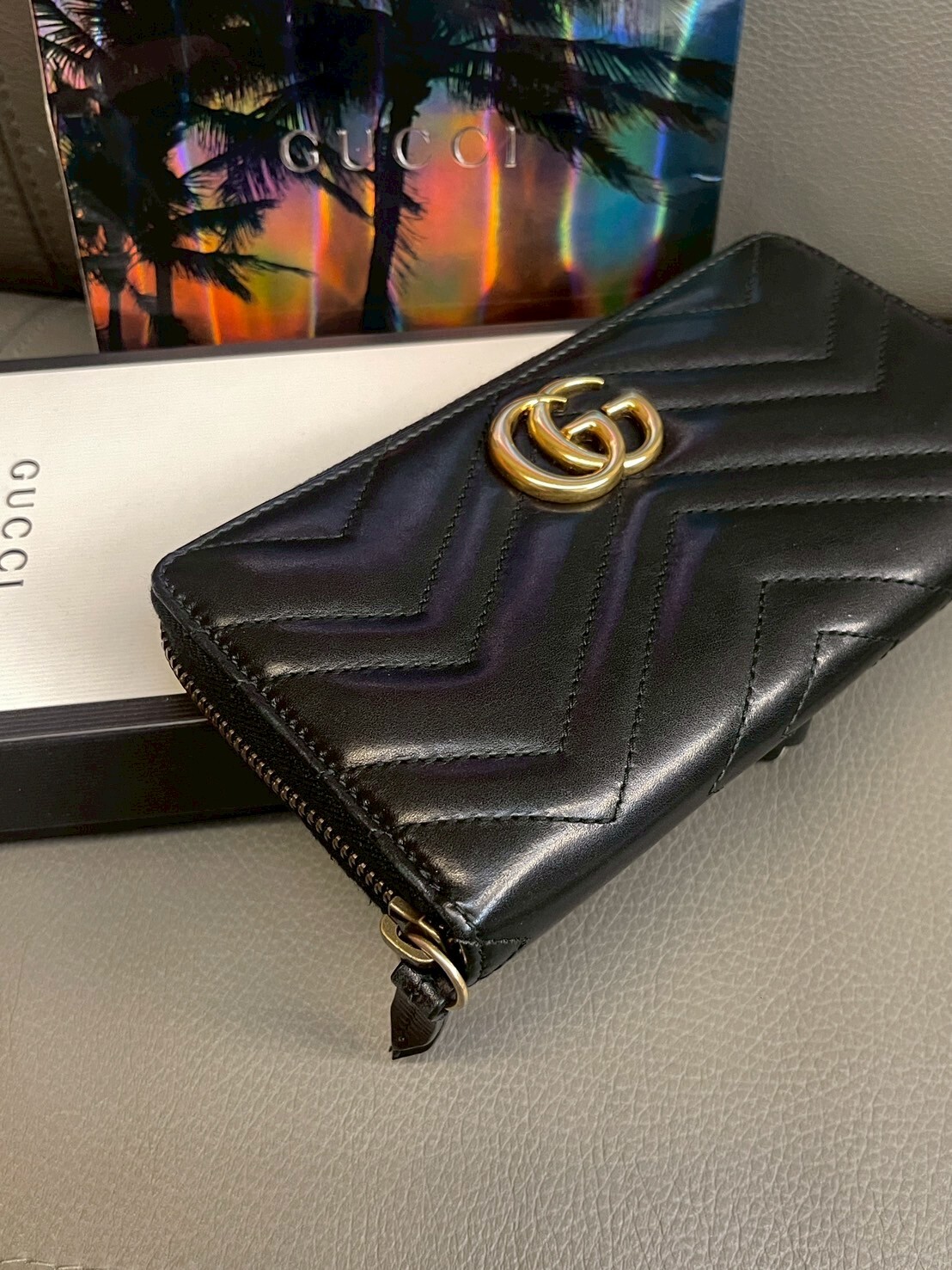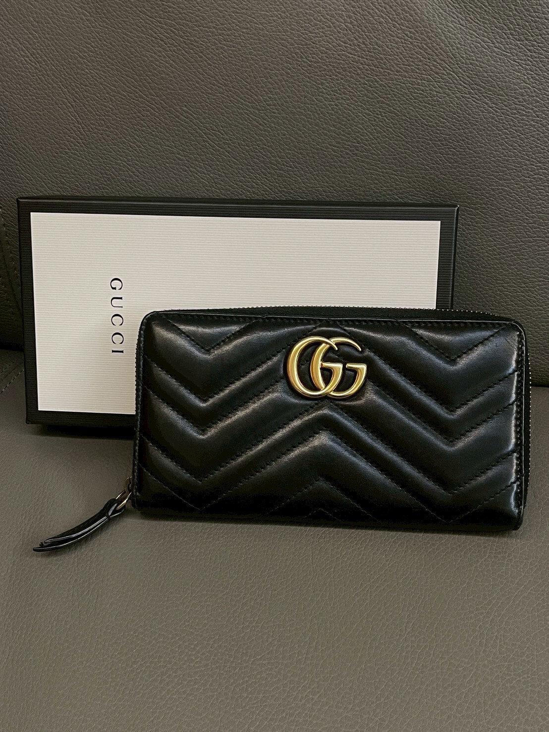 二手美品 GUCCI GG Marmont系列 金標Logo拉鍊長夾