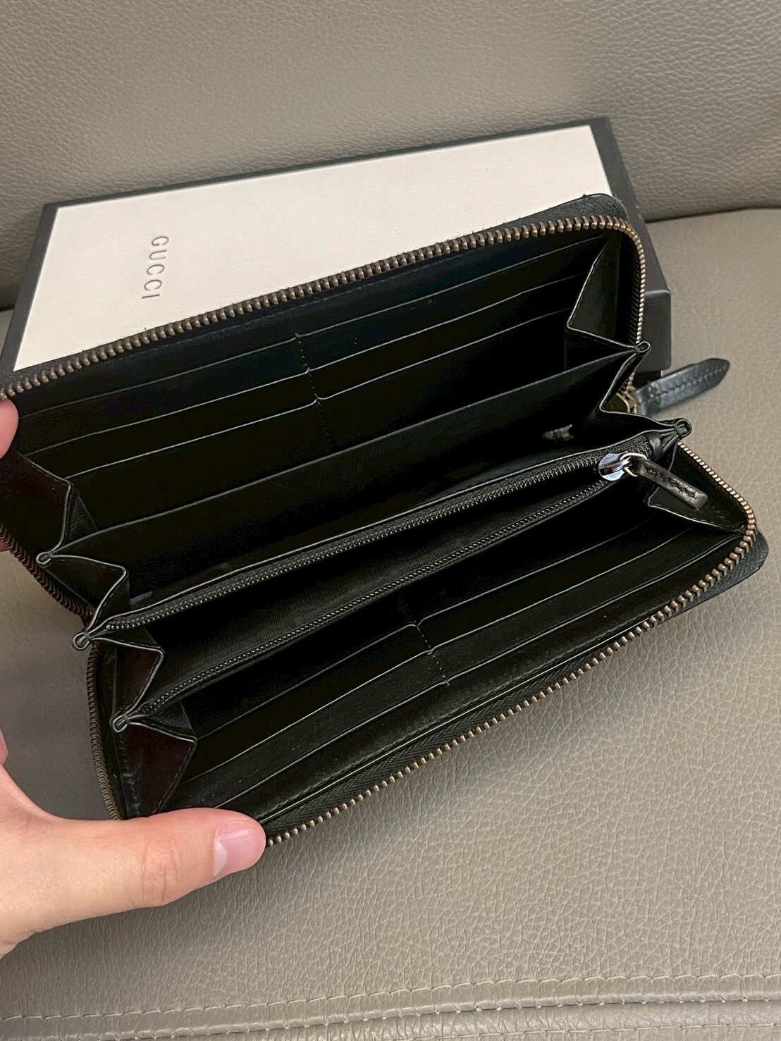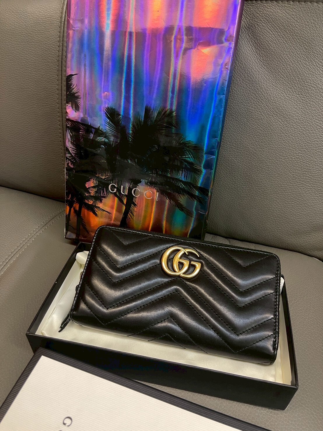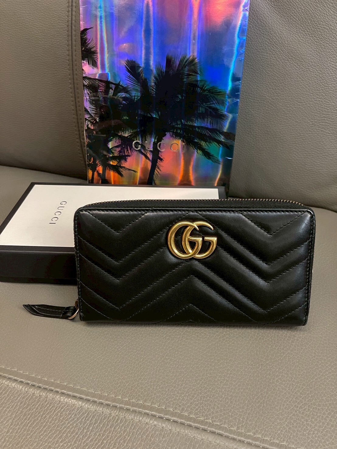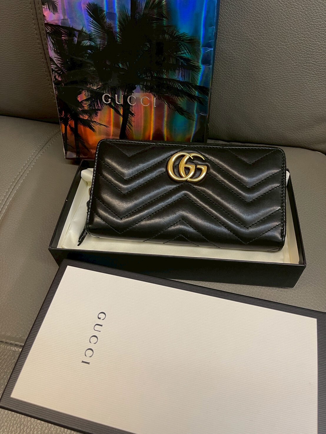 二手美品 GUCCI GG Marmont系列 金標Logo拉鍊長夾