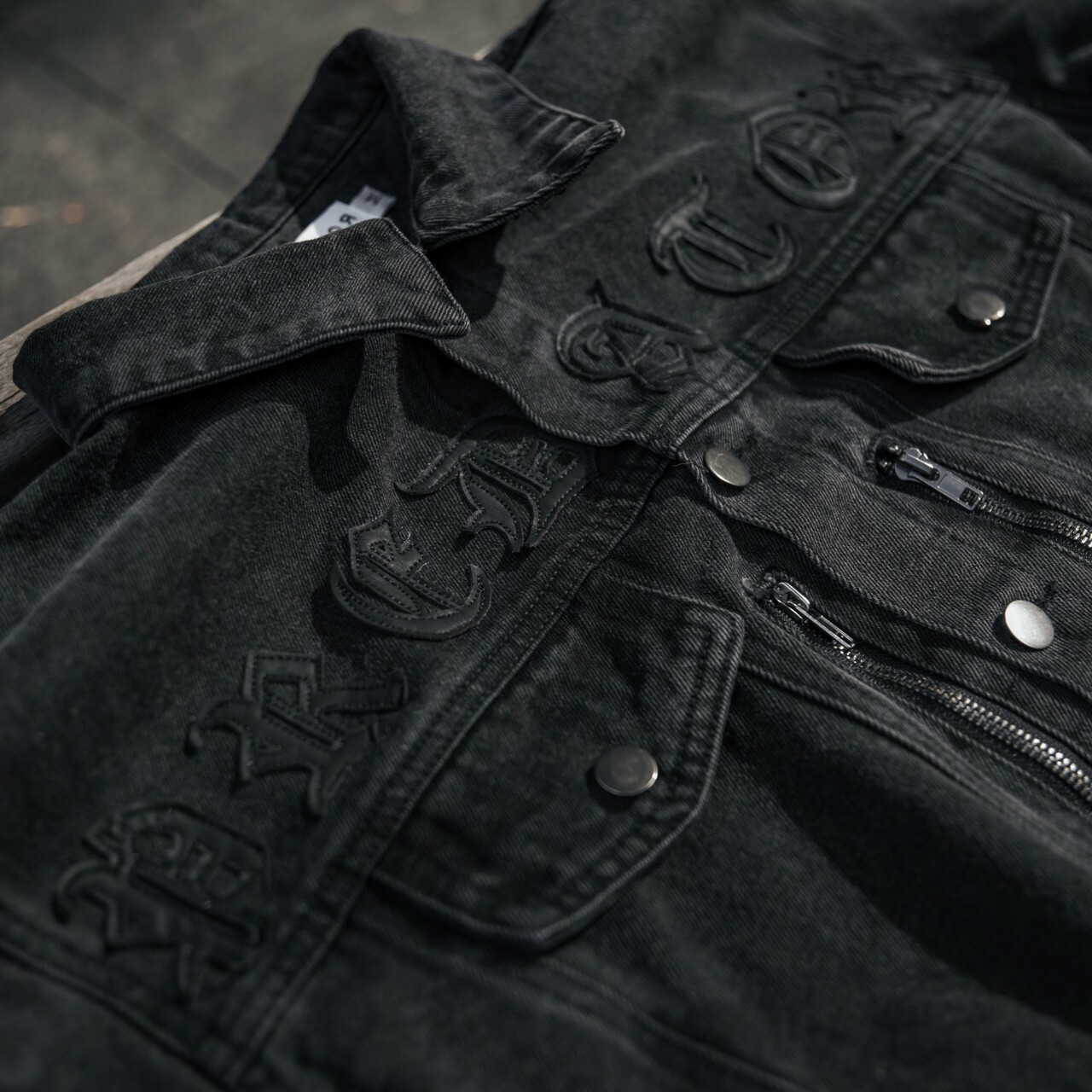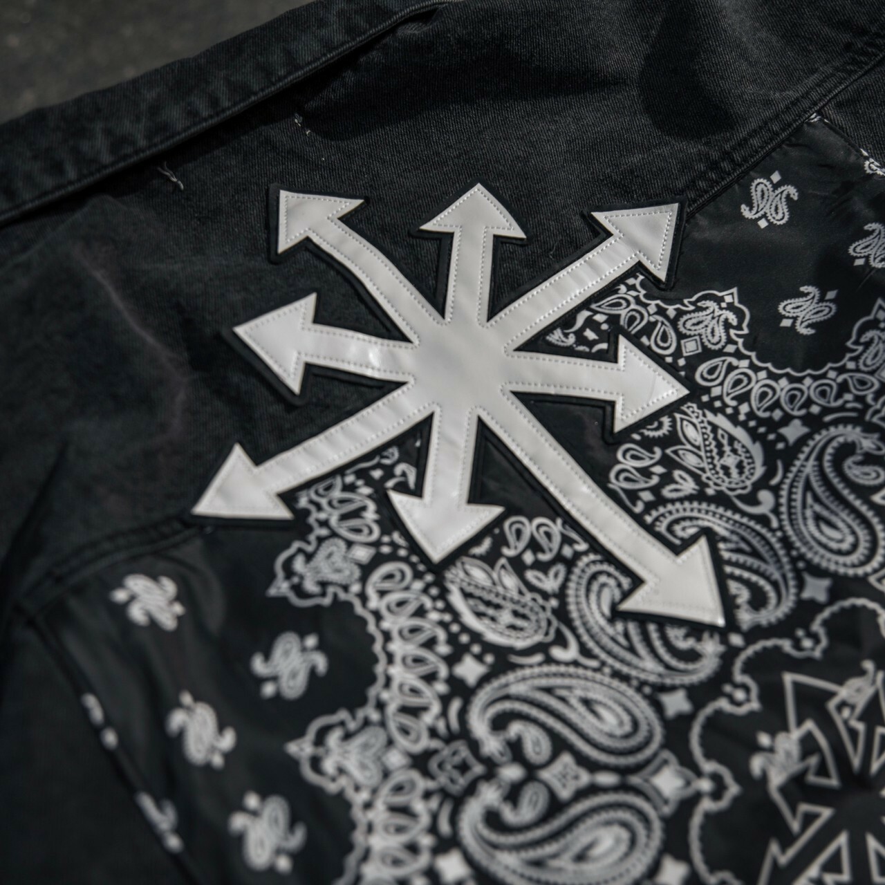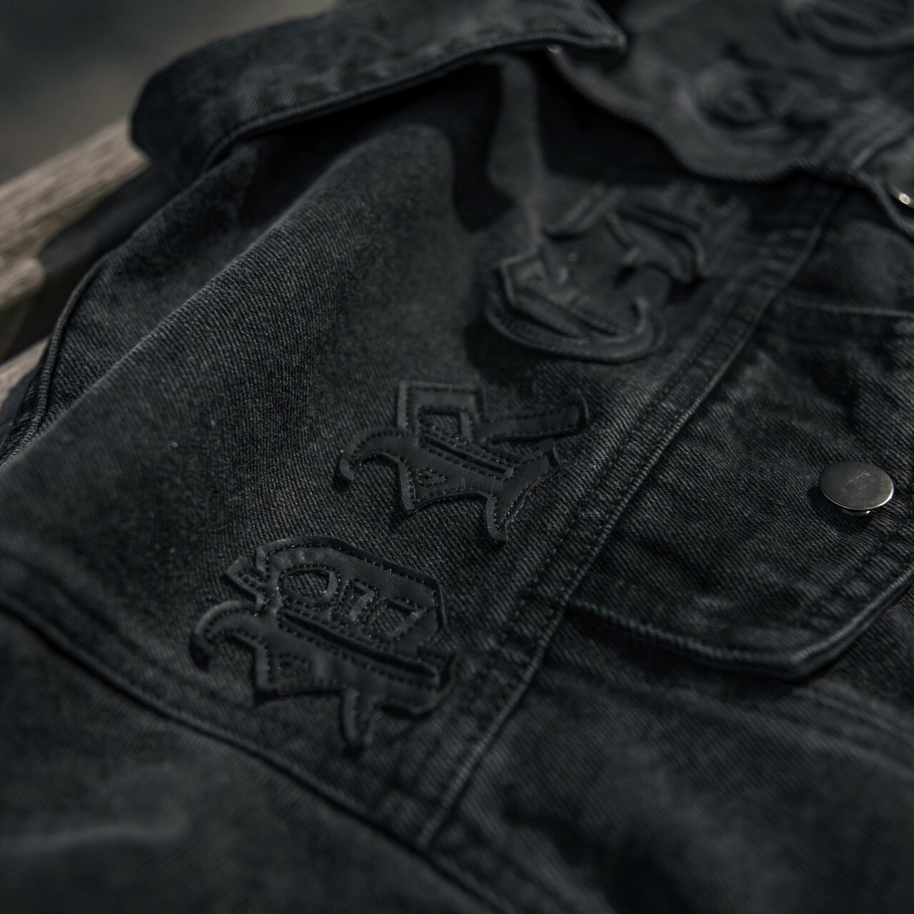 Predator 03 Eight Arrows Logo Amoeba Cashew Flower Washed Black Denim Jacket Denim Jacket