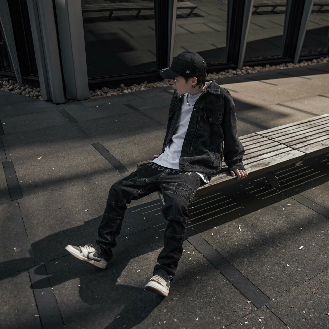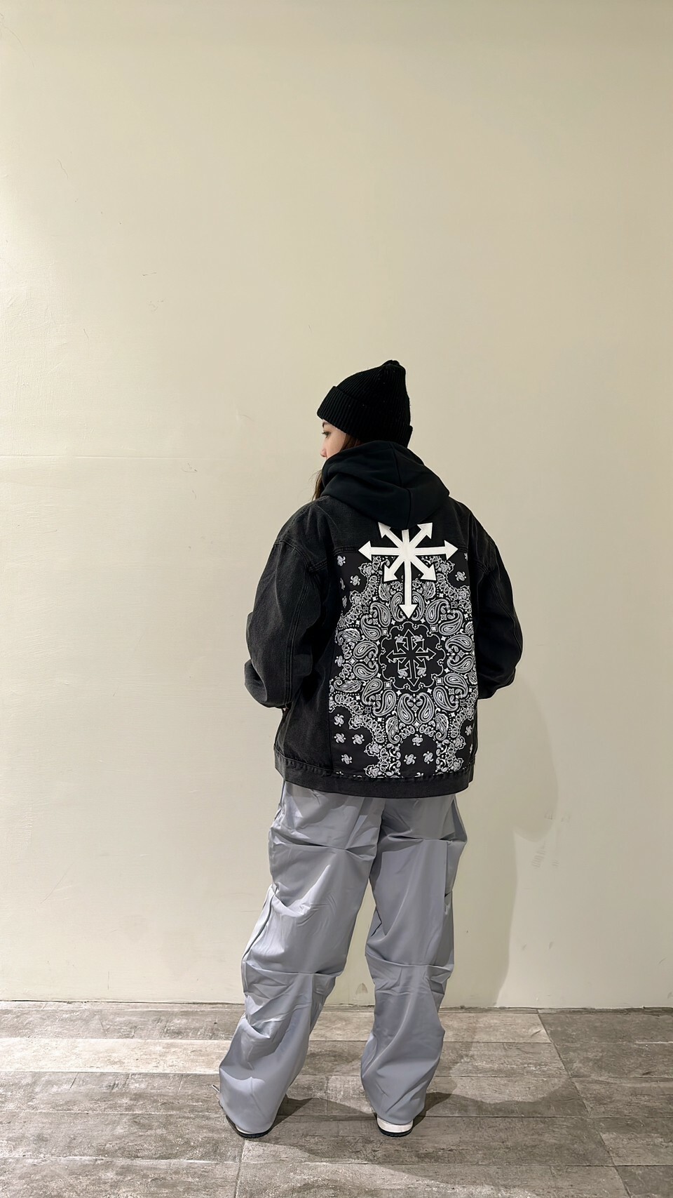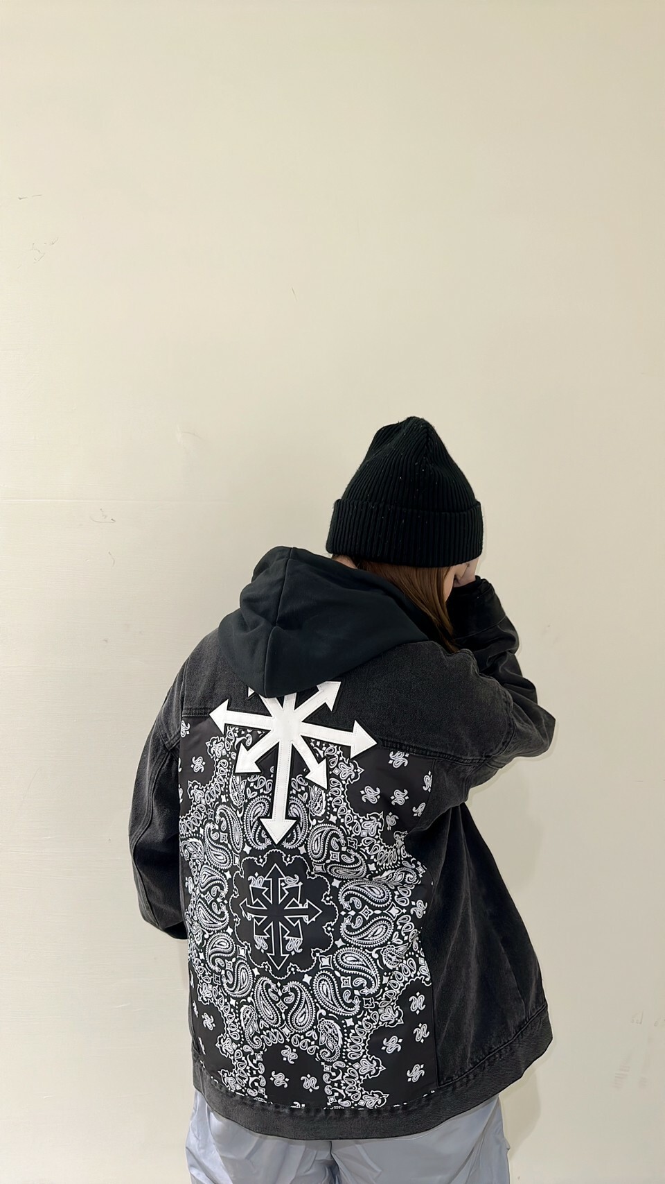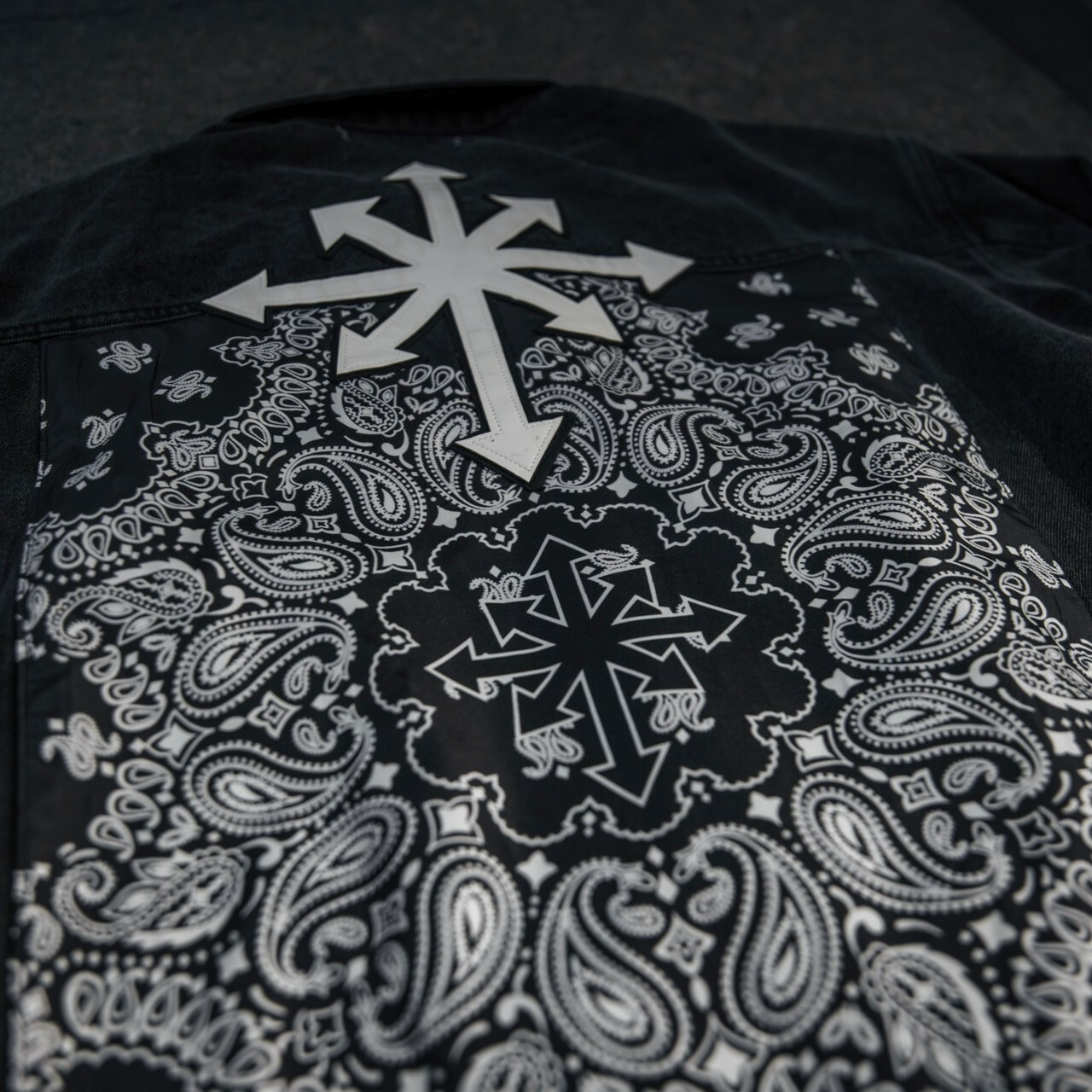 Predator 03 Eight Arrows Logo Amoeba Cashew Flower Washed Black Denim Jacket Denim Jacket