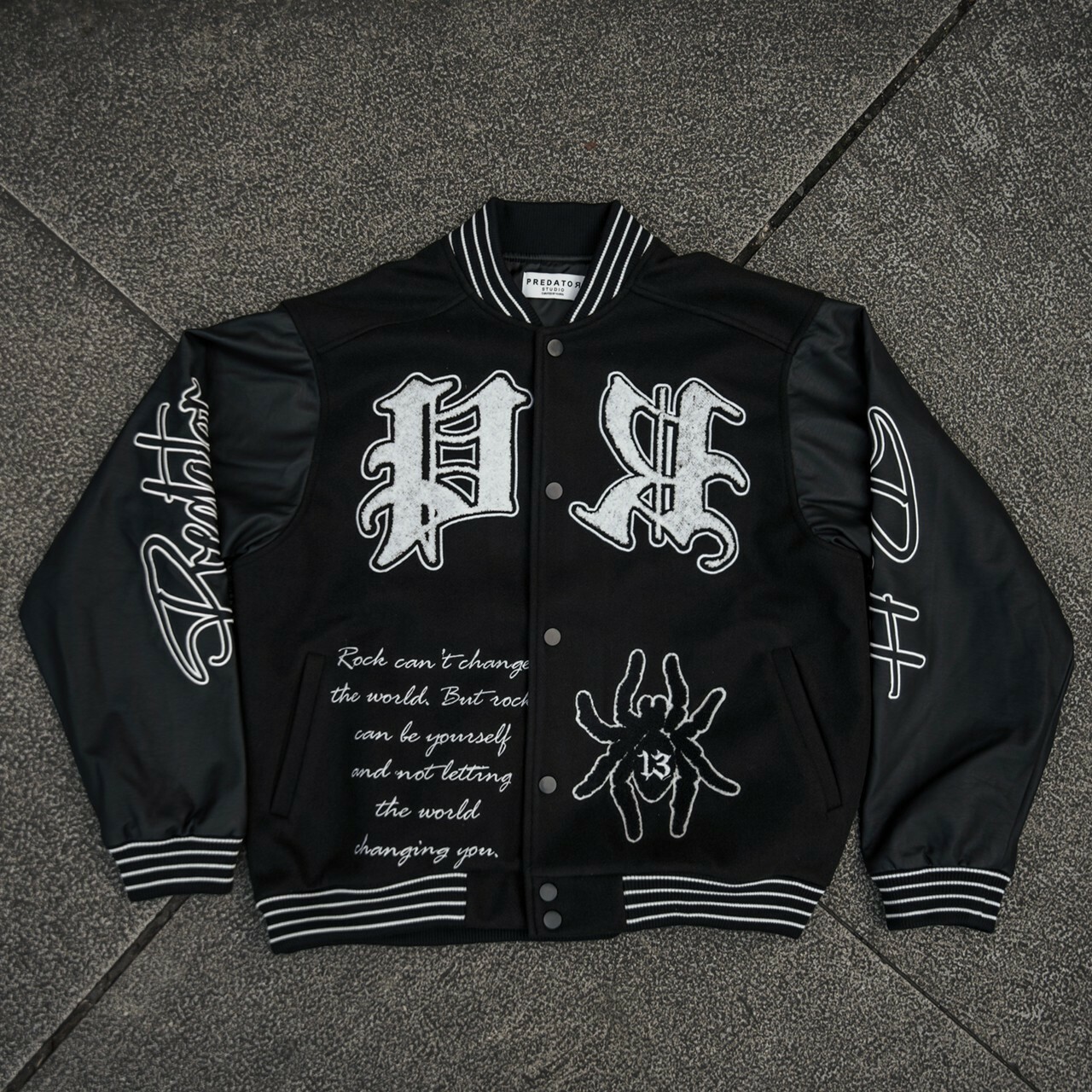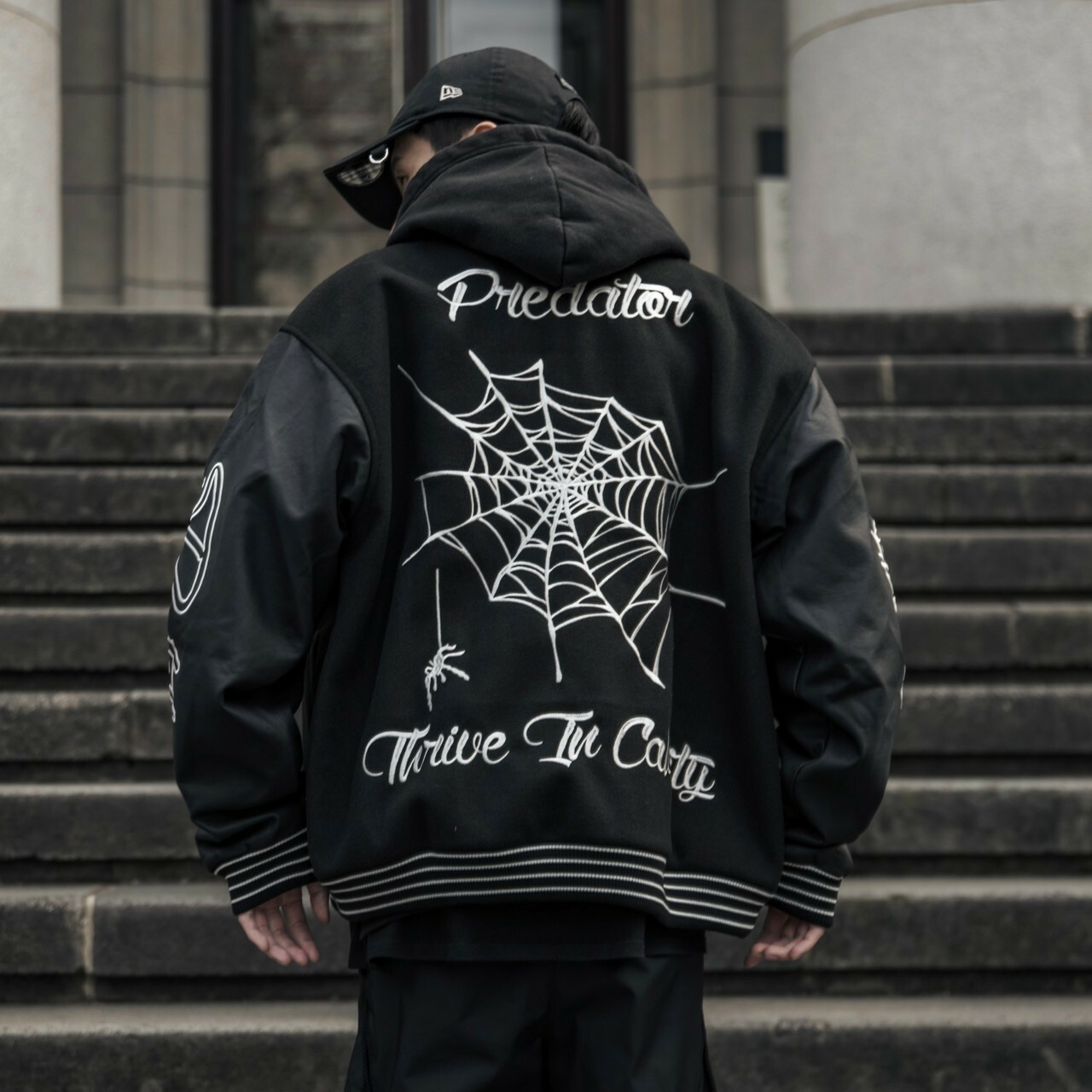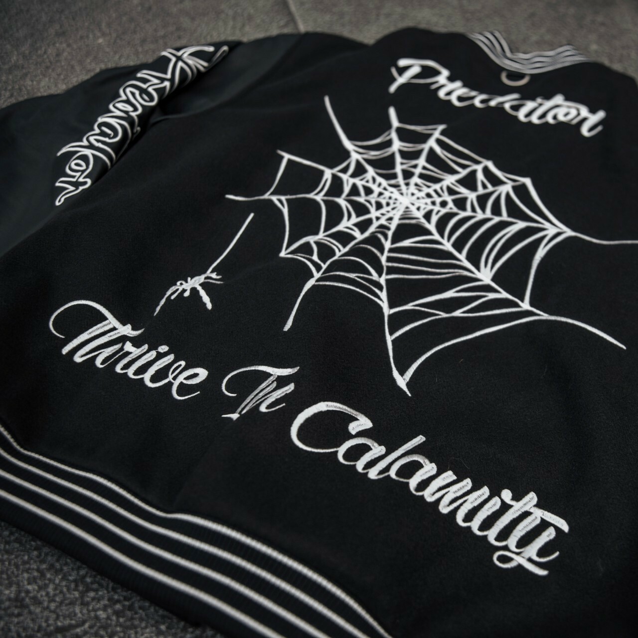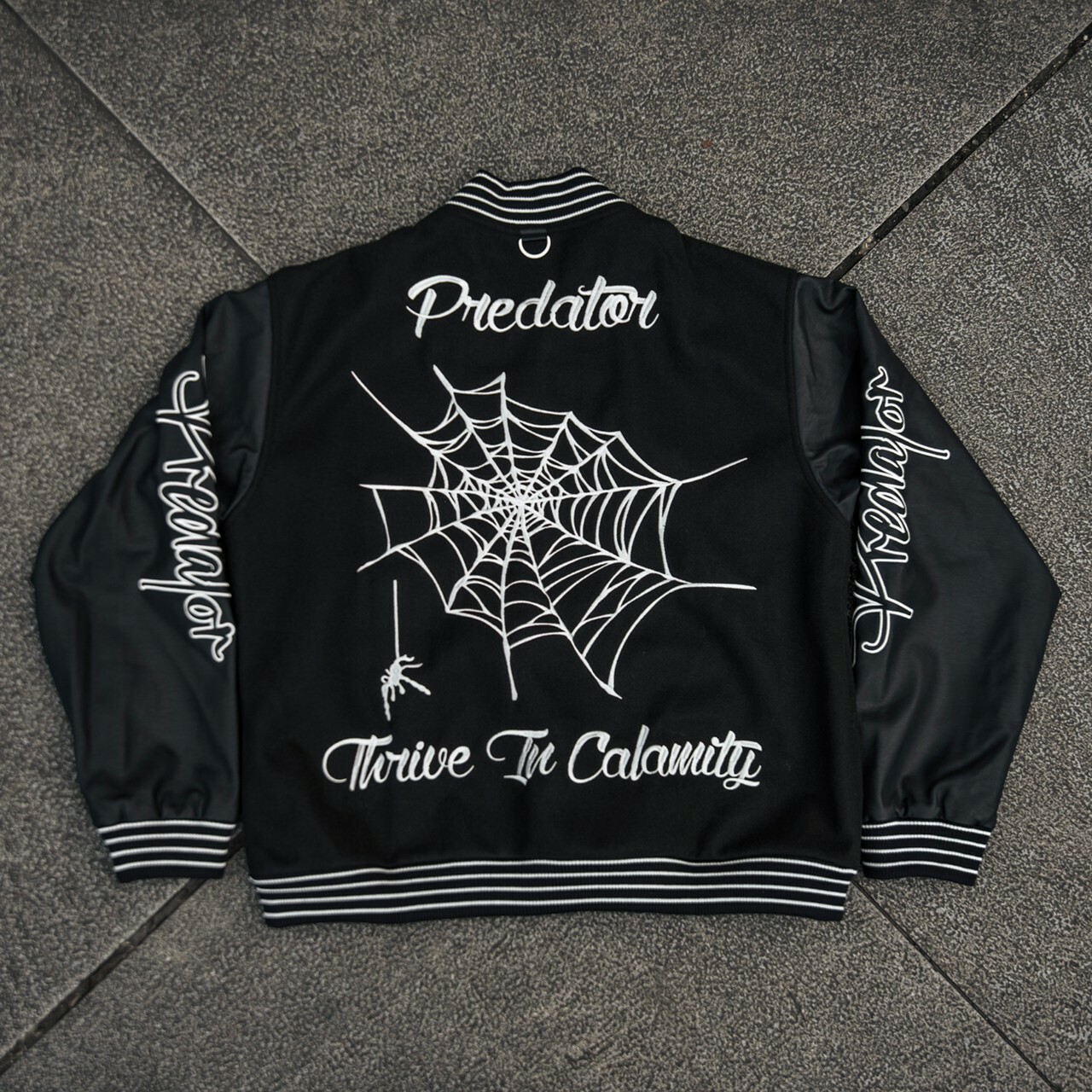 Predator 03 刺繡 蜘蛛網 毛巾繡 黑色皮袖棒球外套 棒外 Varsity Jacket