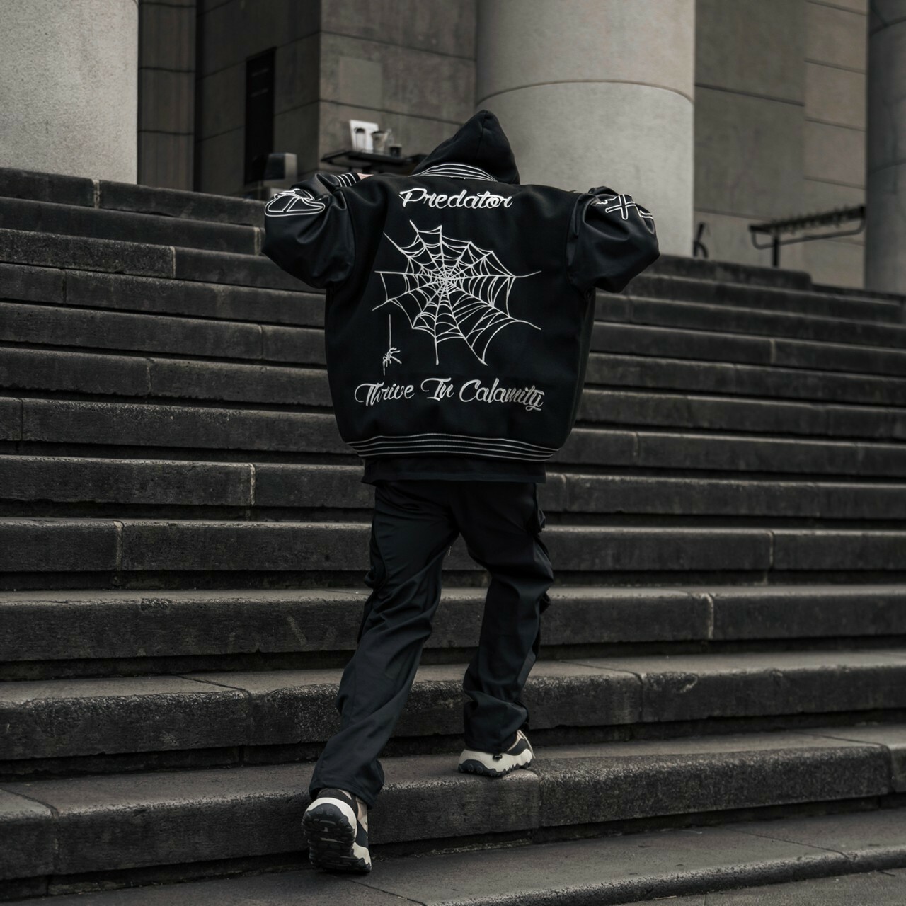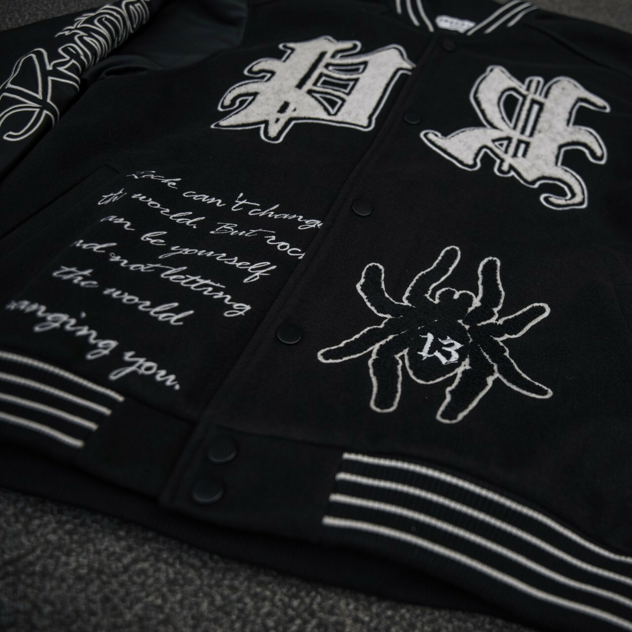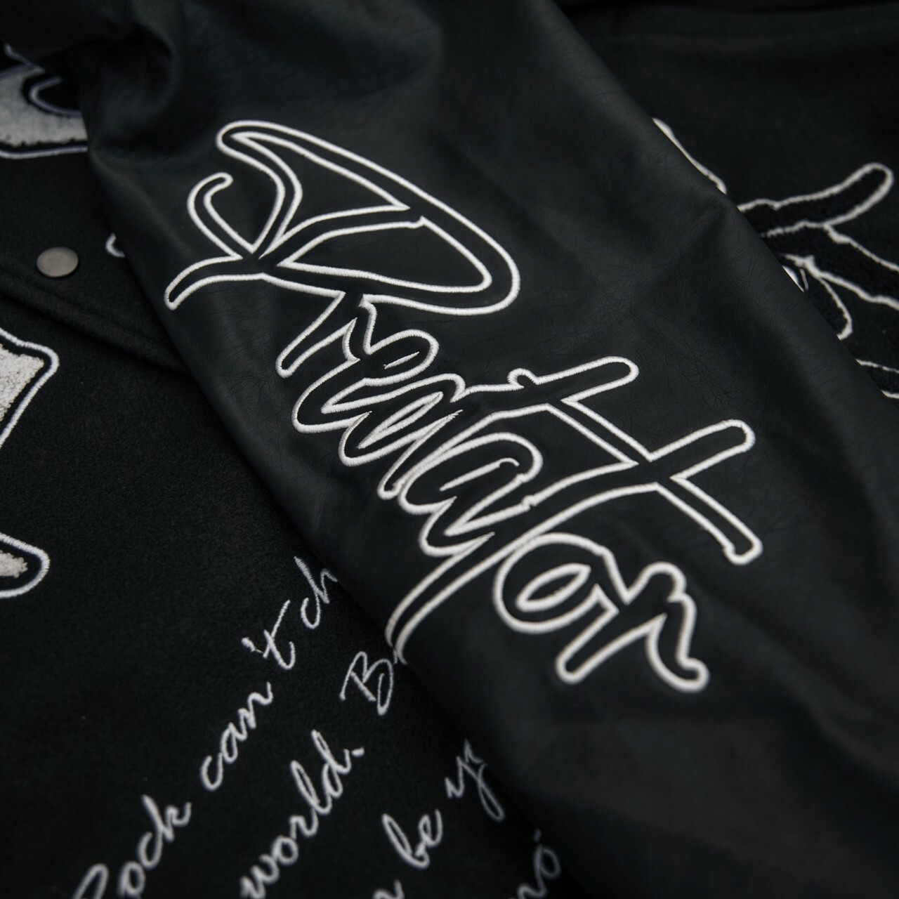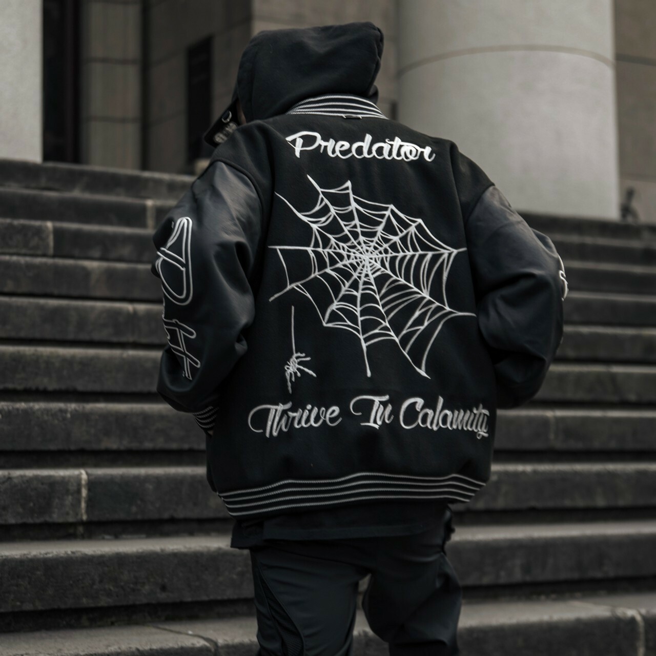 Predator 03 刺繡 蜘蛛網 毛巾繡 黑色皮袖棒球外套 棒外 Varsity Jacket