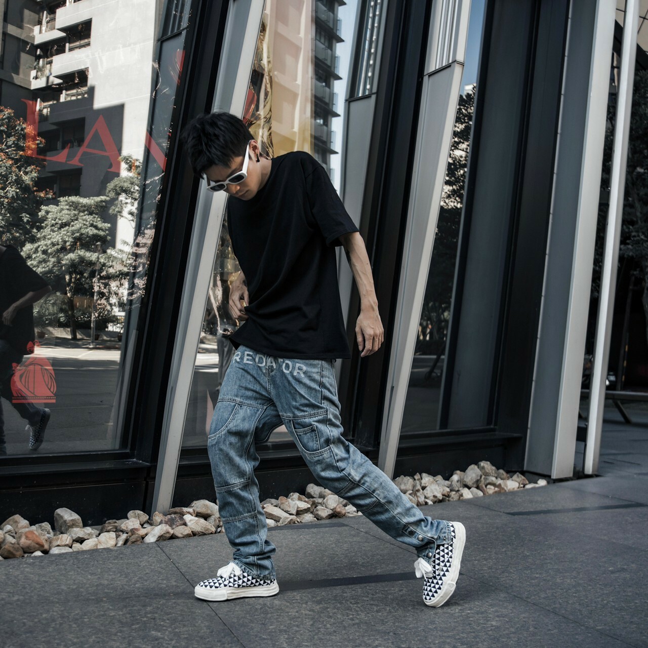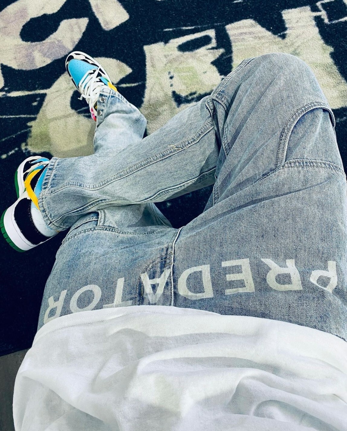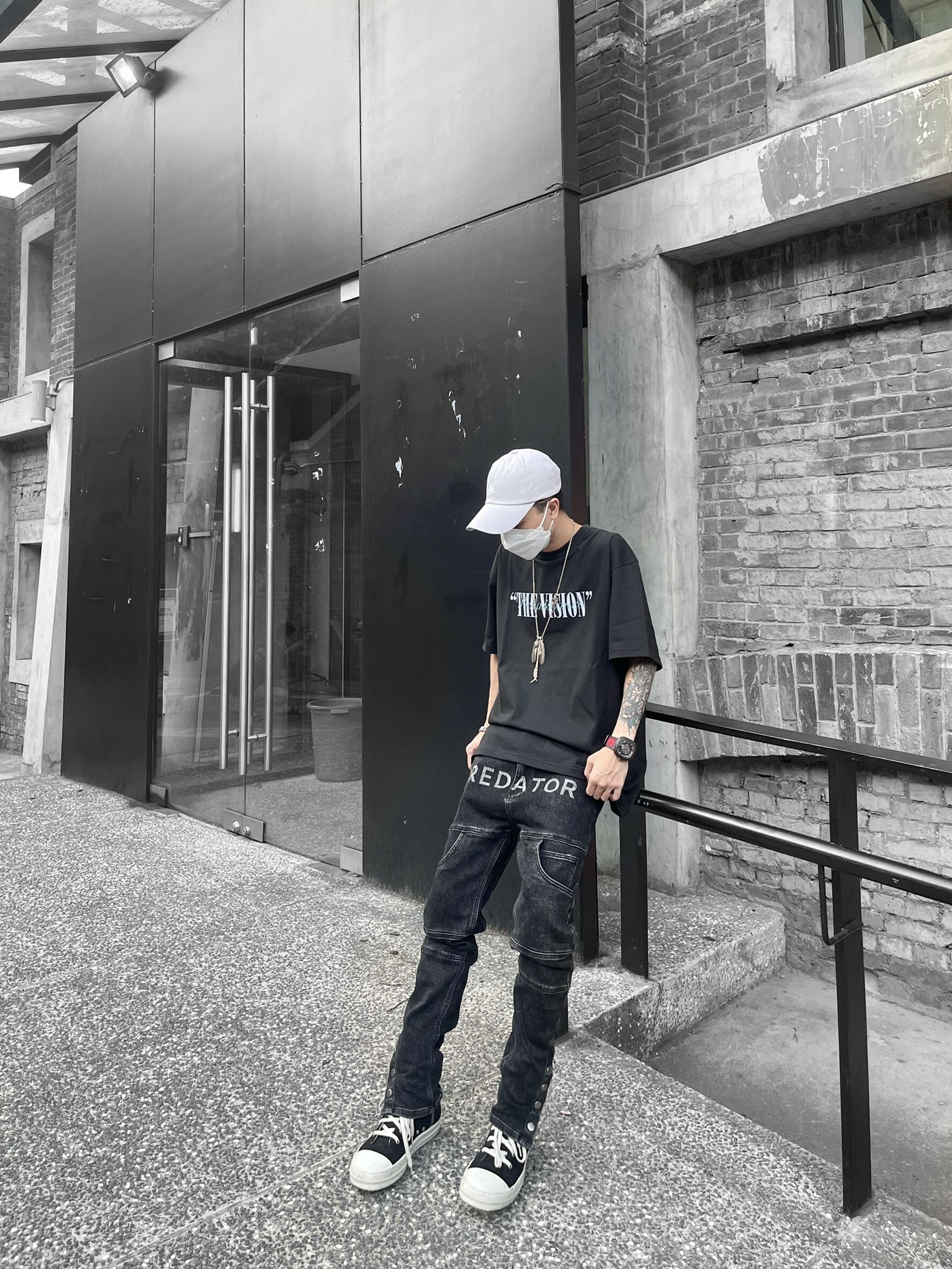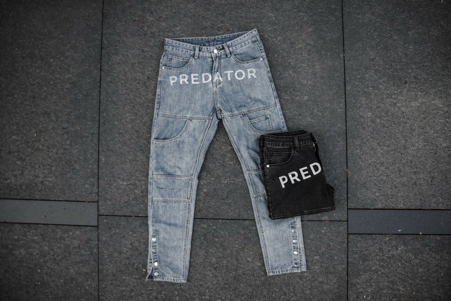PREDATOR 正面Logo 水洗 解構 排釦牛仔褲 VIBE神褲