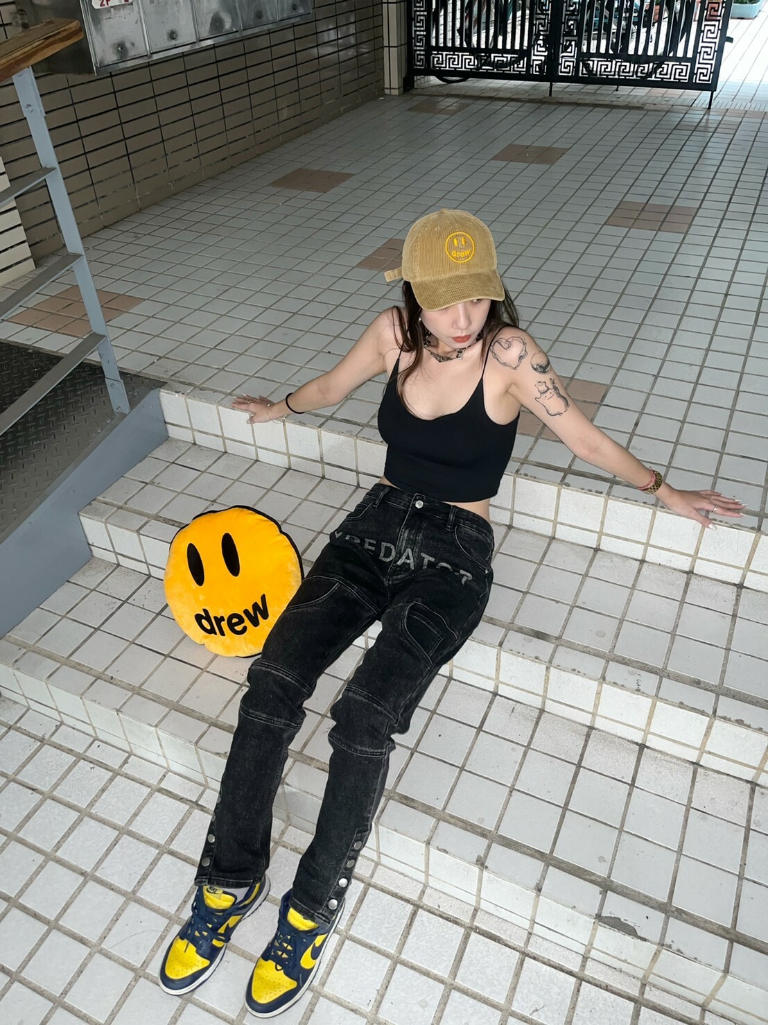 褲腳的排扣設計也保留一些Vibe的穿搭風格