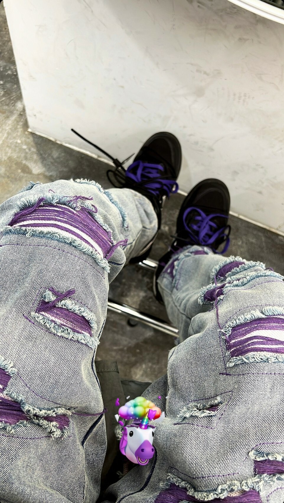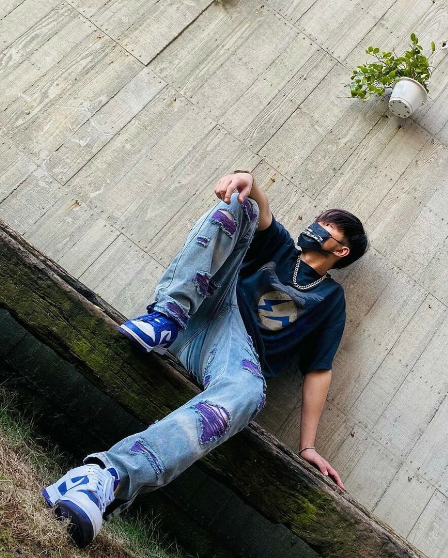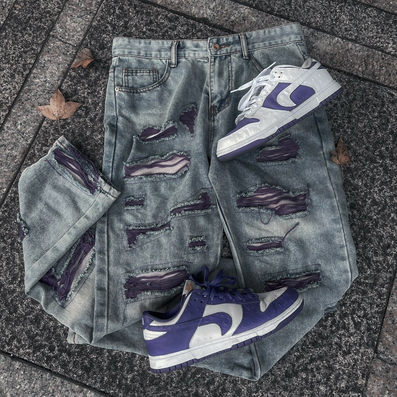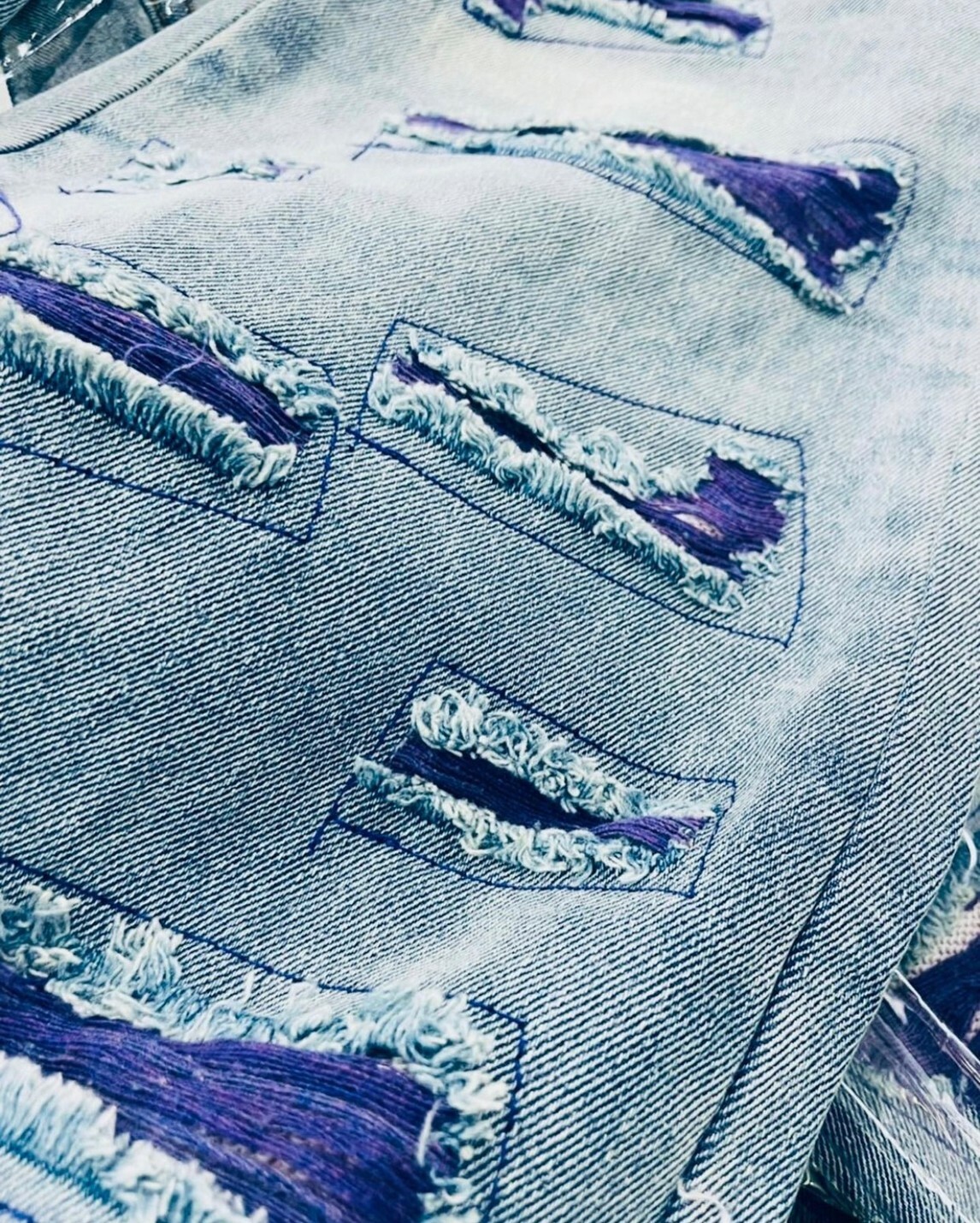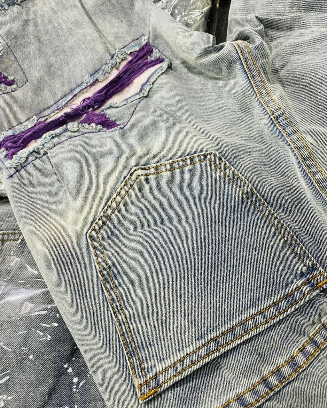 市面上少見的大面積紫色刷破牛仔褲