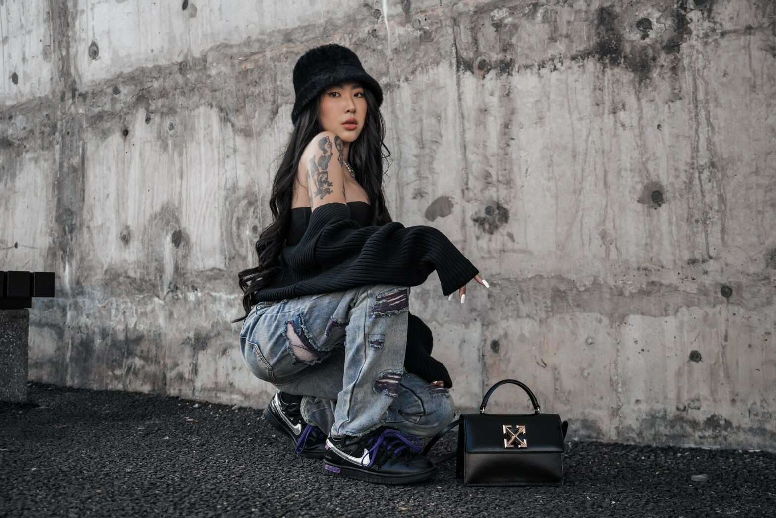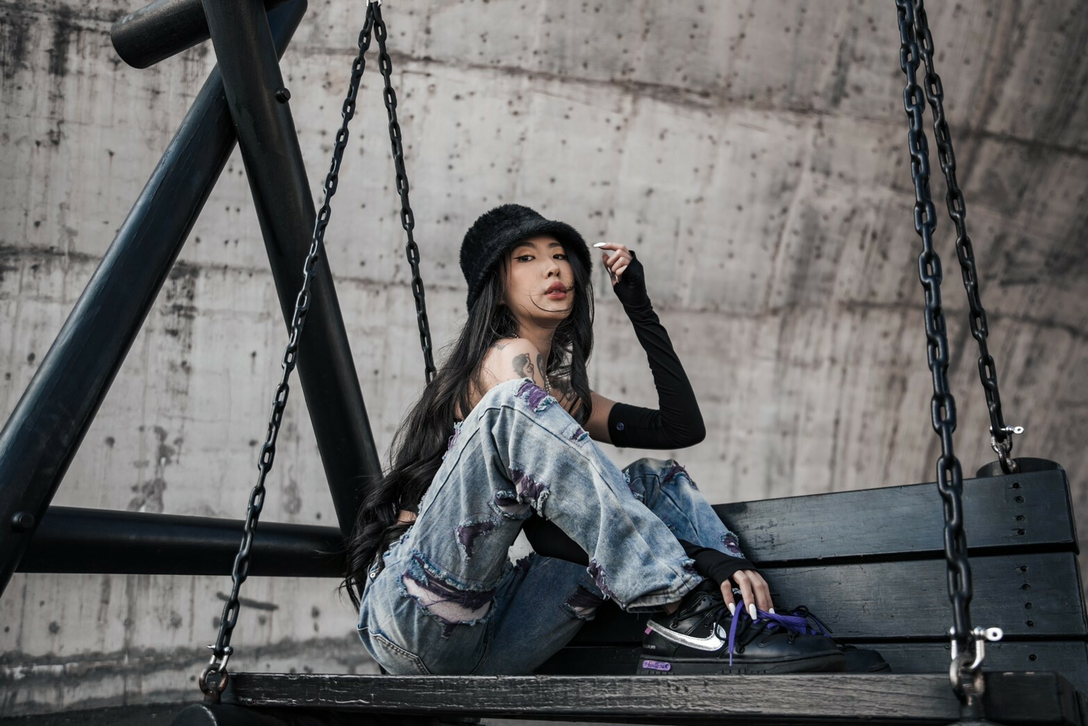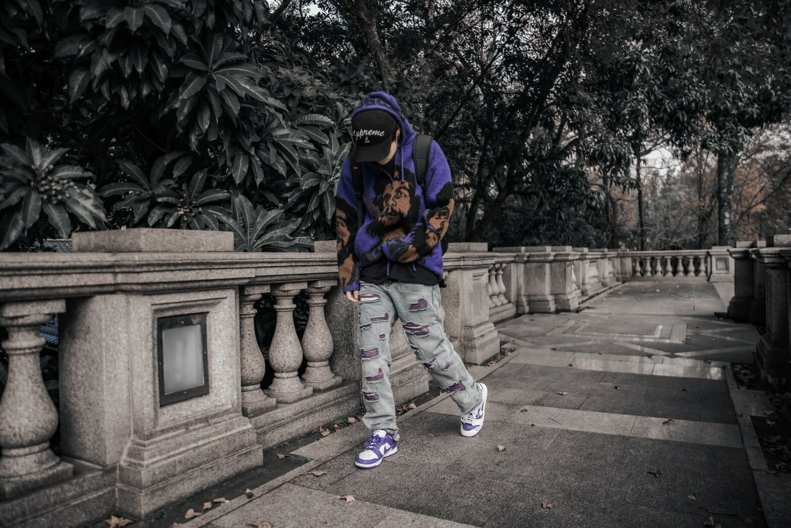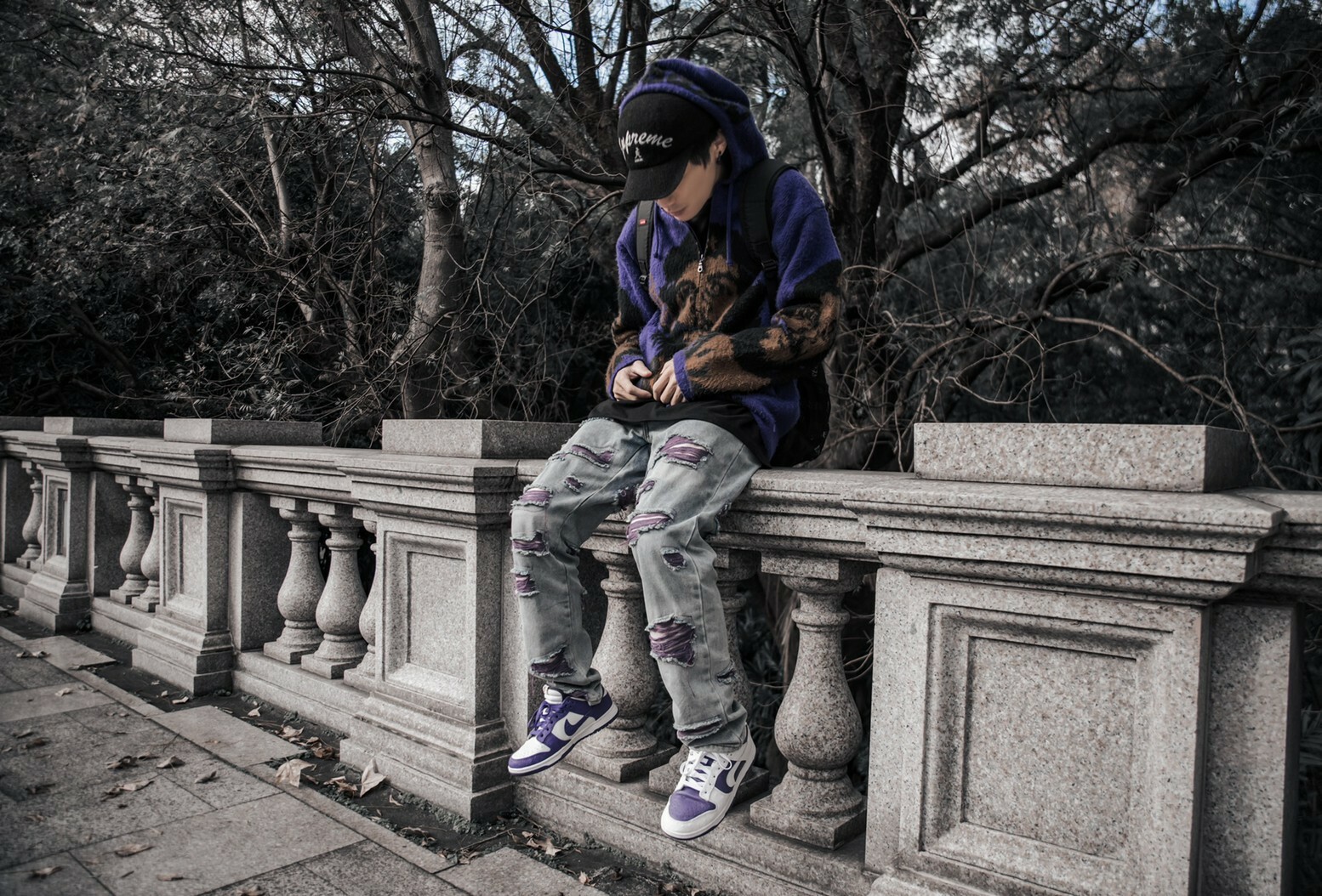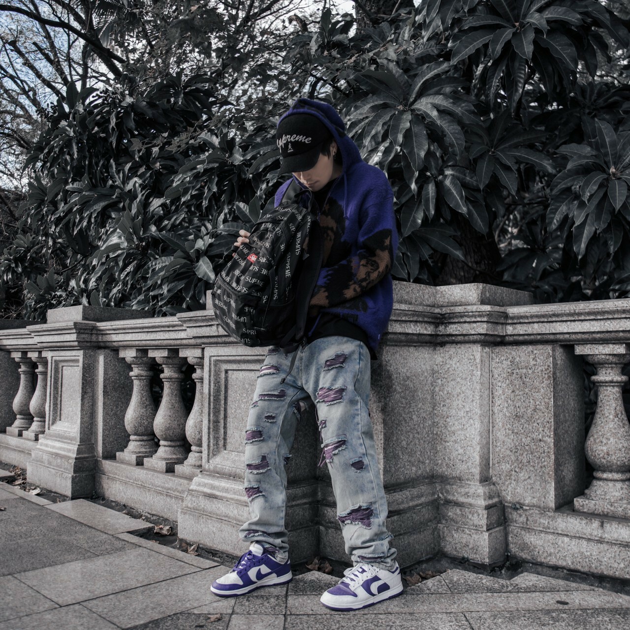 市面上少見的大面積紫色刷破牛仔褲