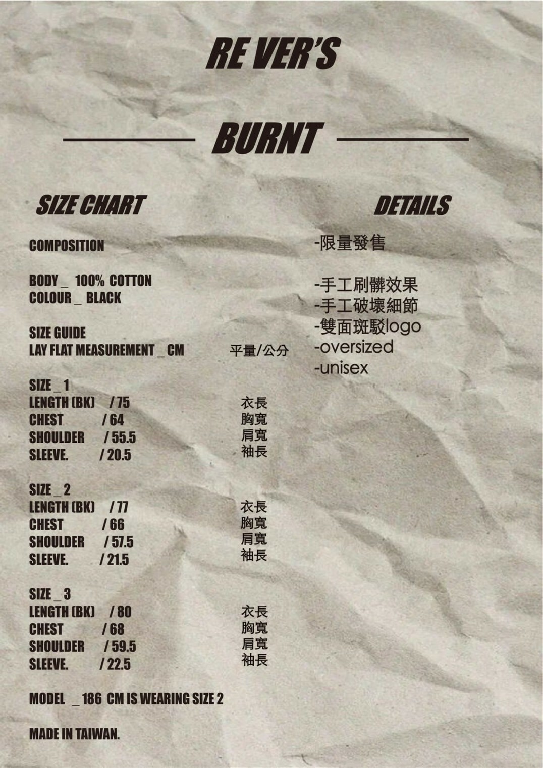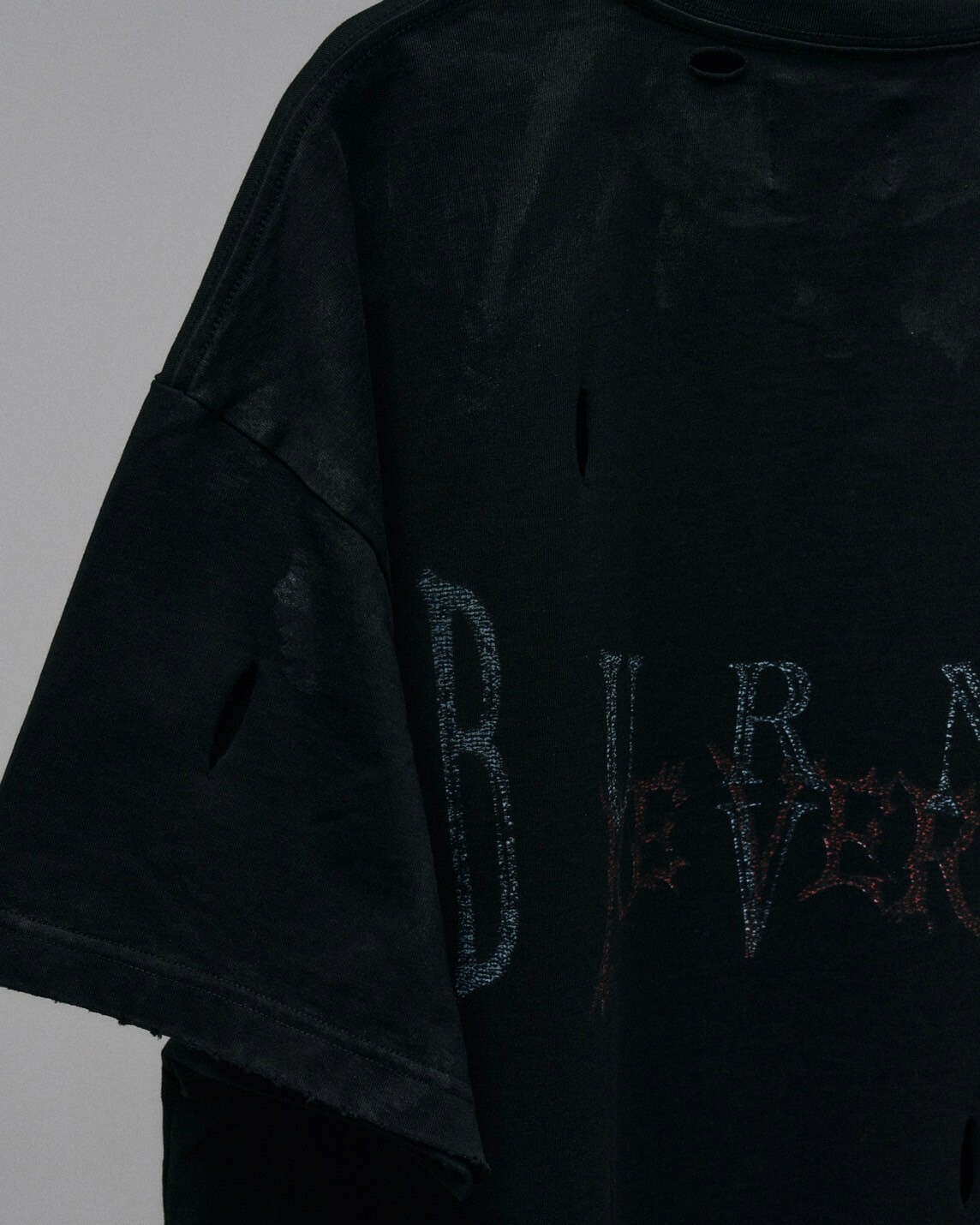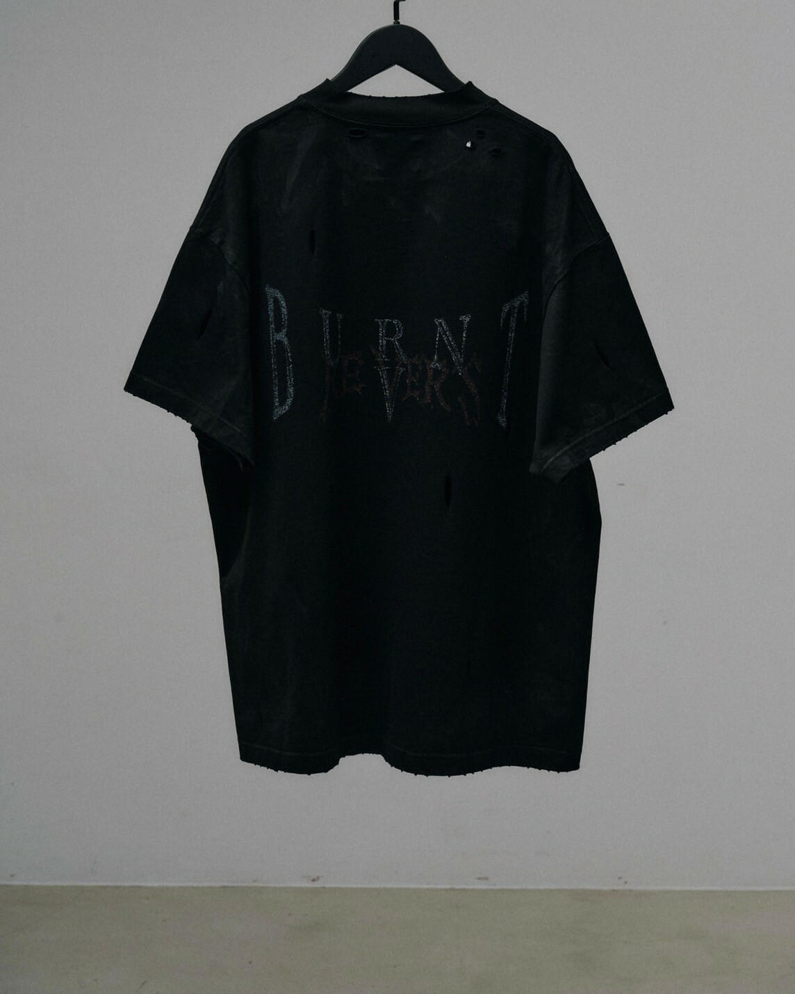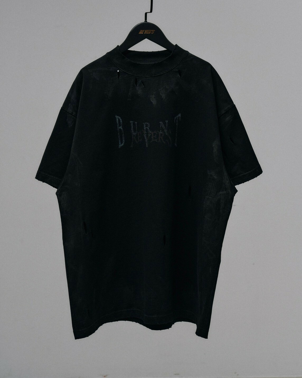 RE VER'S - BURNT- Limited black, hand-damaged, double-sided mottled logo short-sleeved T