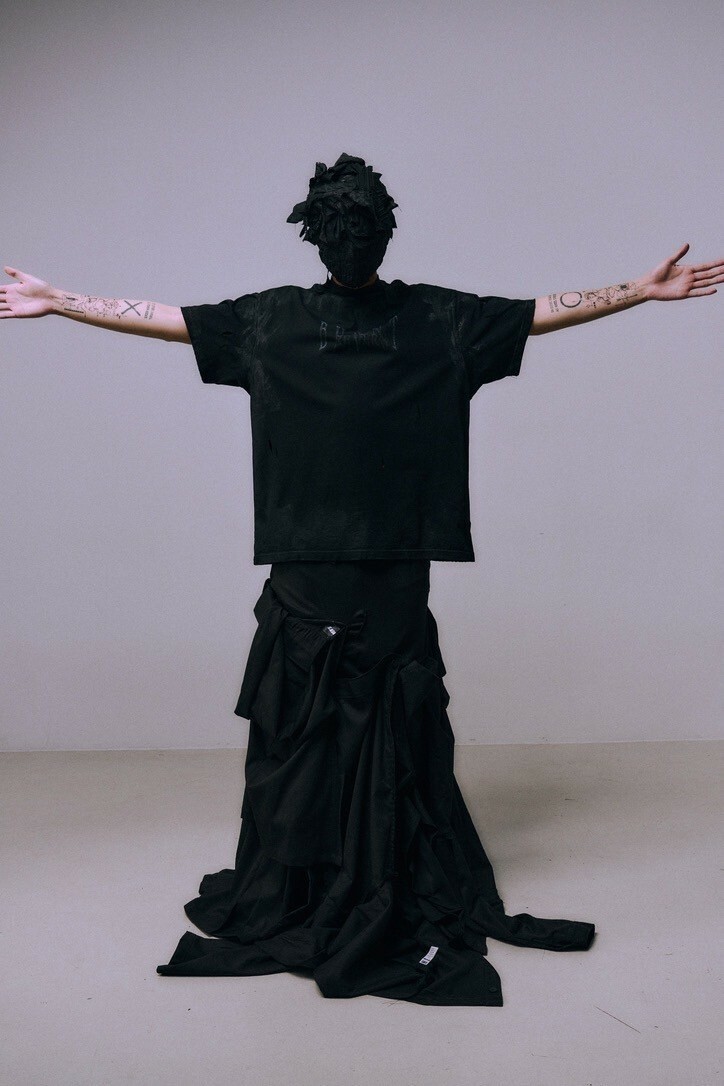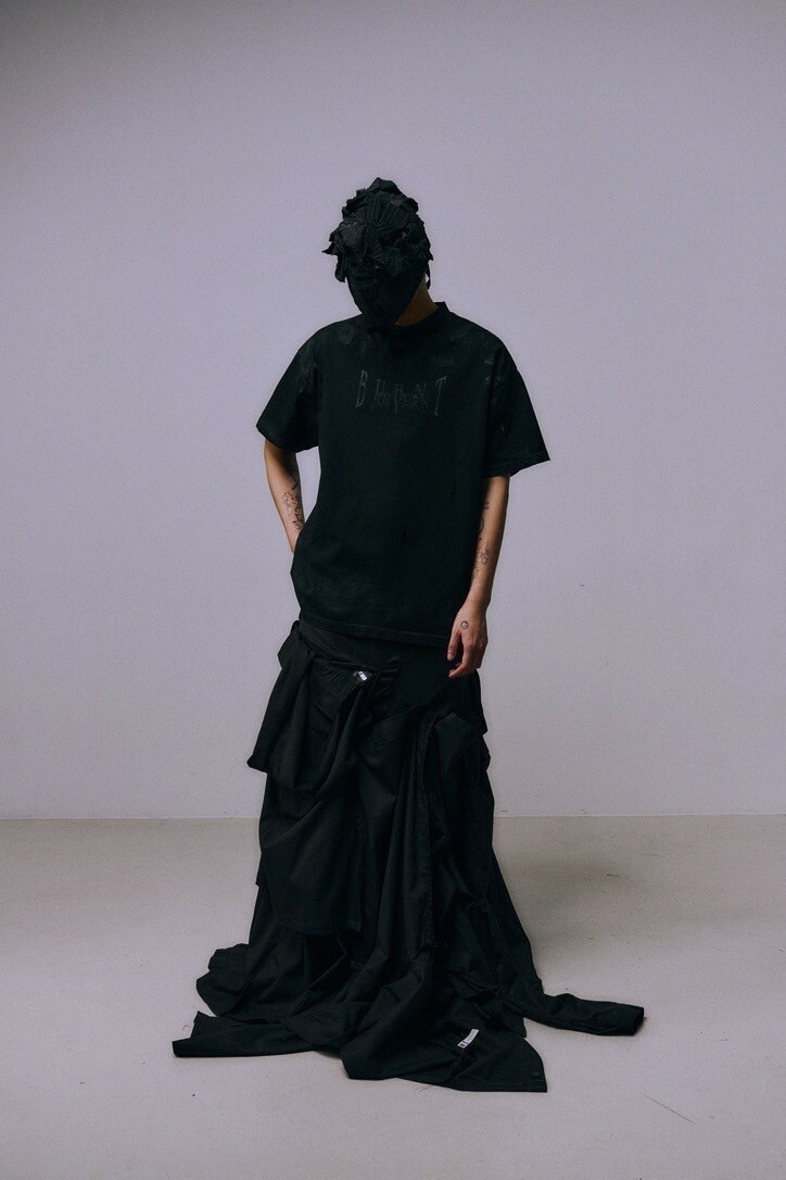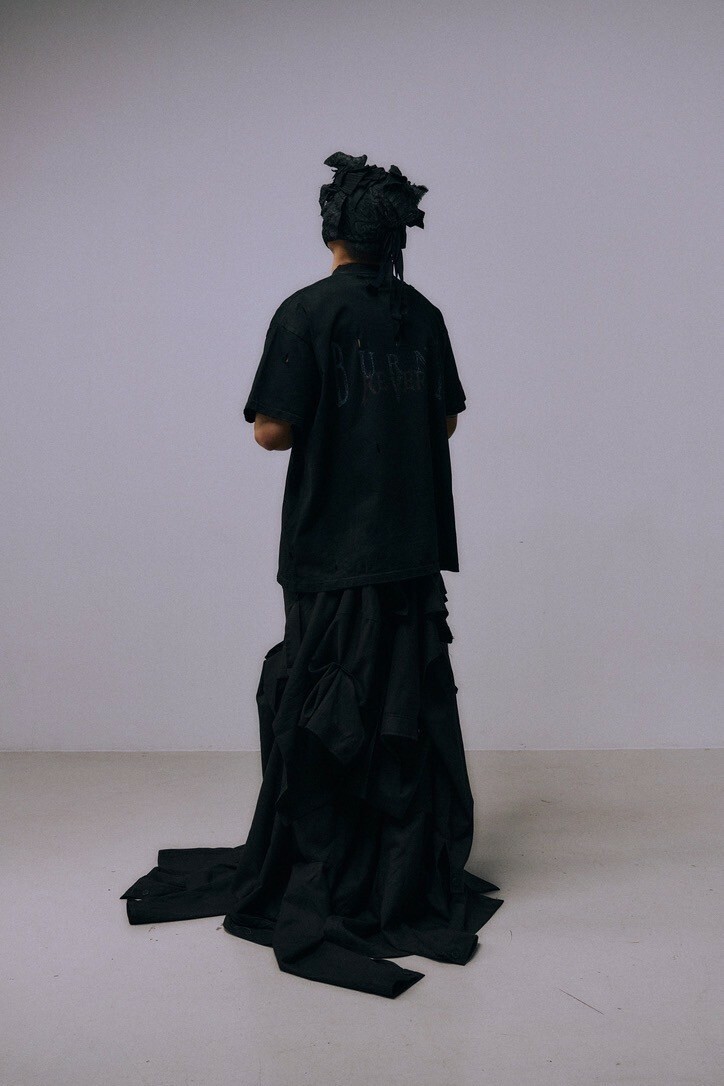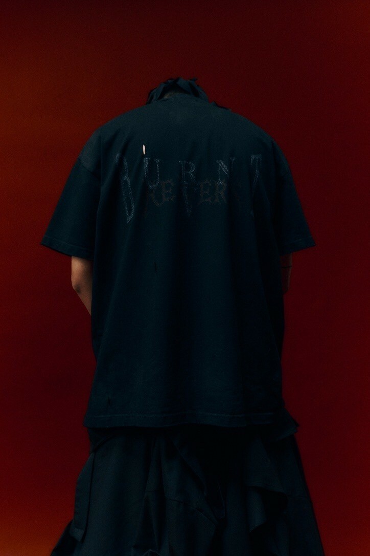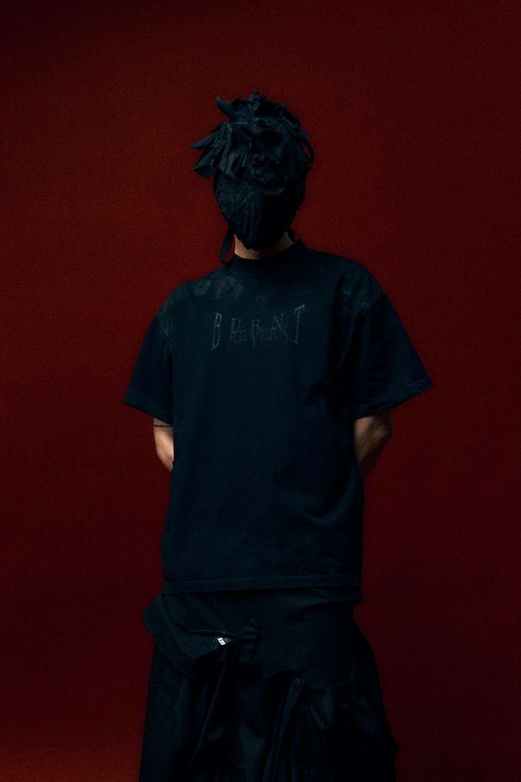 RE VER'S - BURNT- Limited black, hand-damaged, double-sided mottled logo short-sleeved T