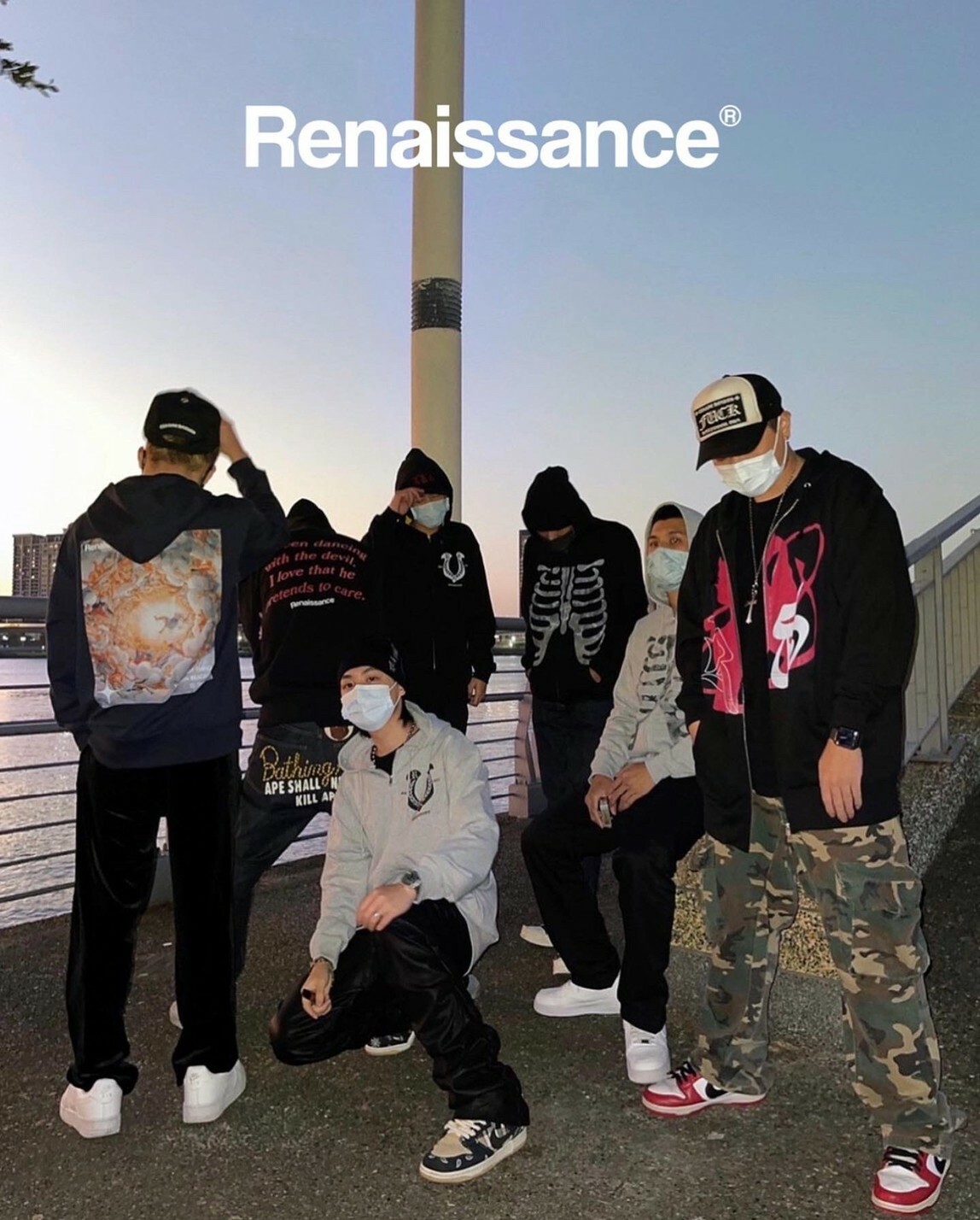 RENAISSANCE 新款 宗教油畫 歌德字體Logo 深藍連帽外套 浪漫主義