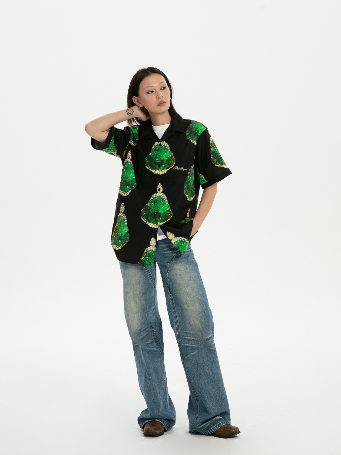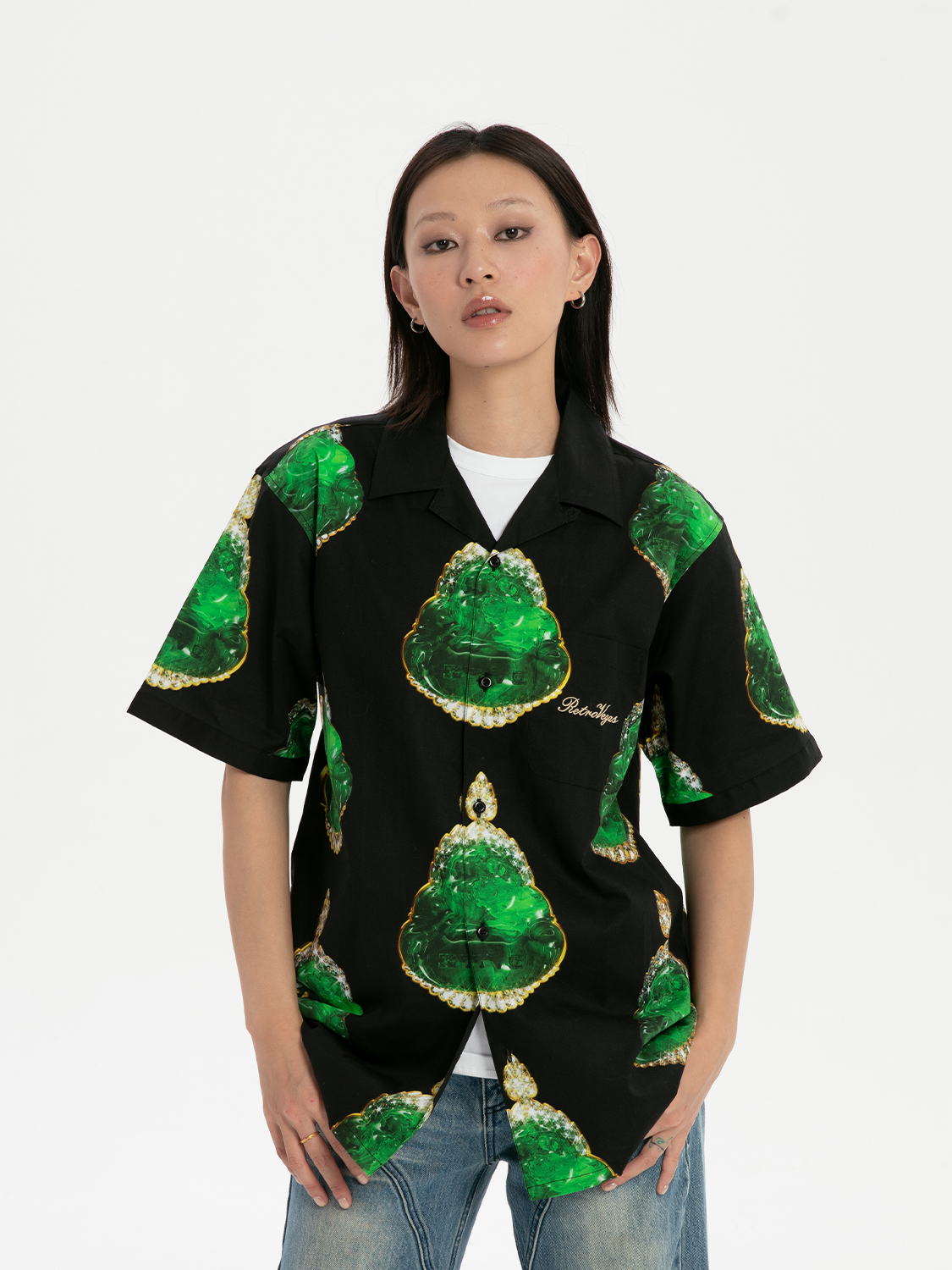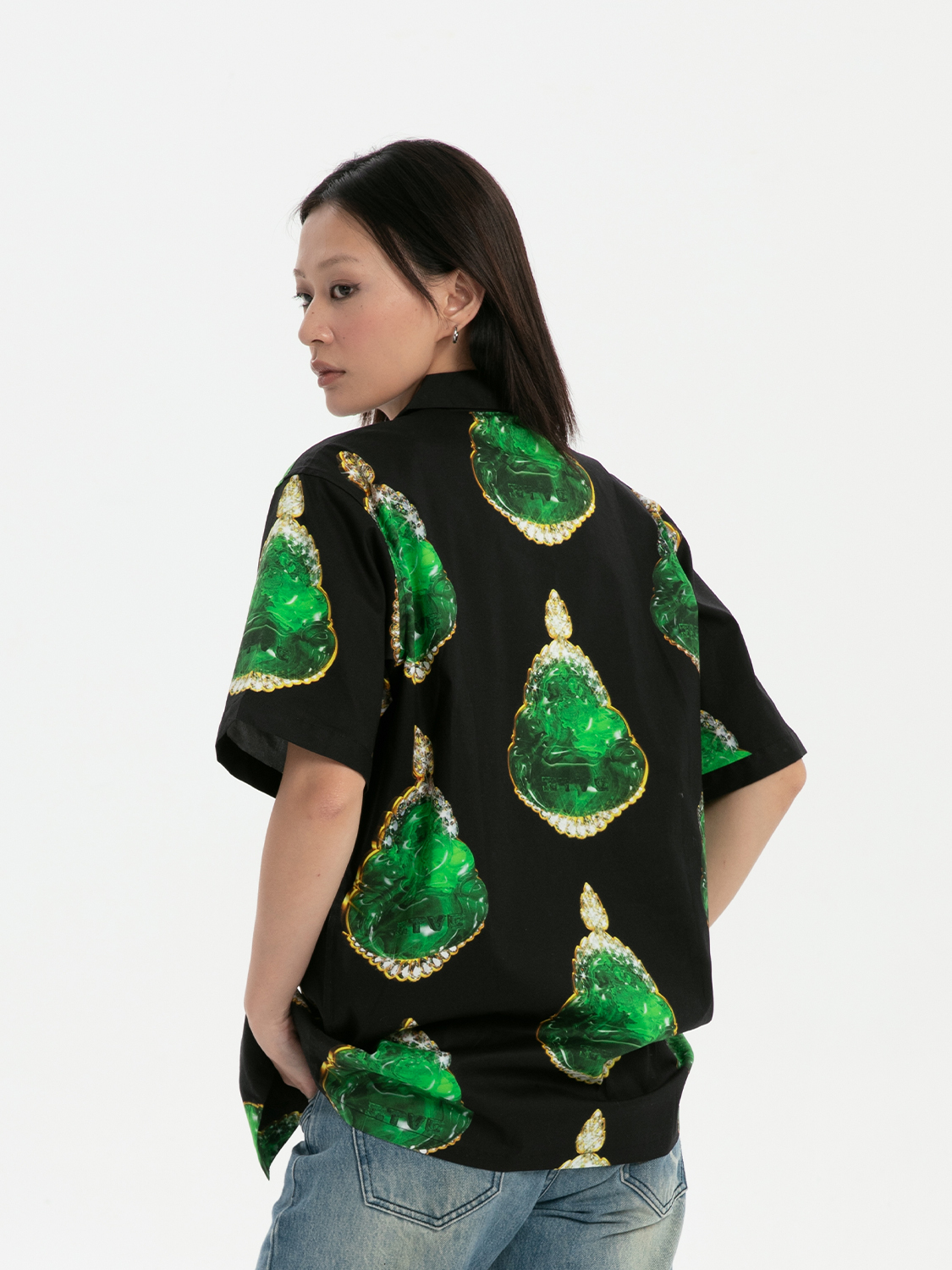 RTVG 中式宗教 彌勒玉珮 翻領短袖 襯衫