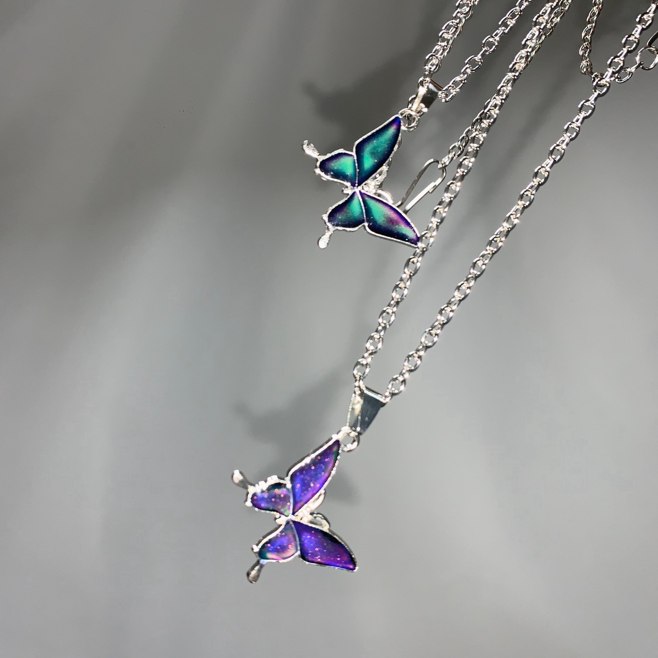 SAZ Colorful Gradient Butterfly Necklace Couples