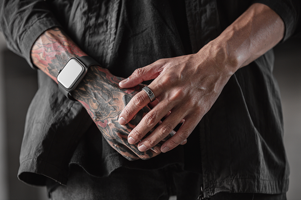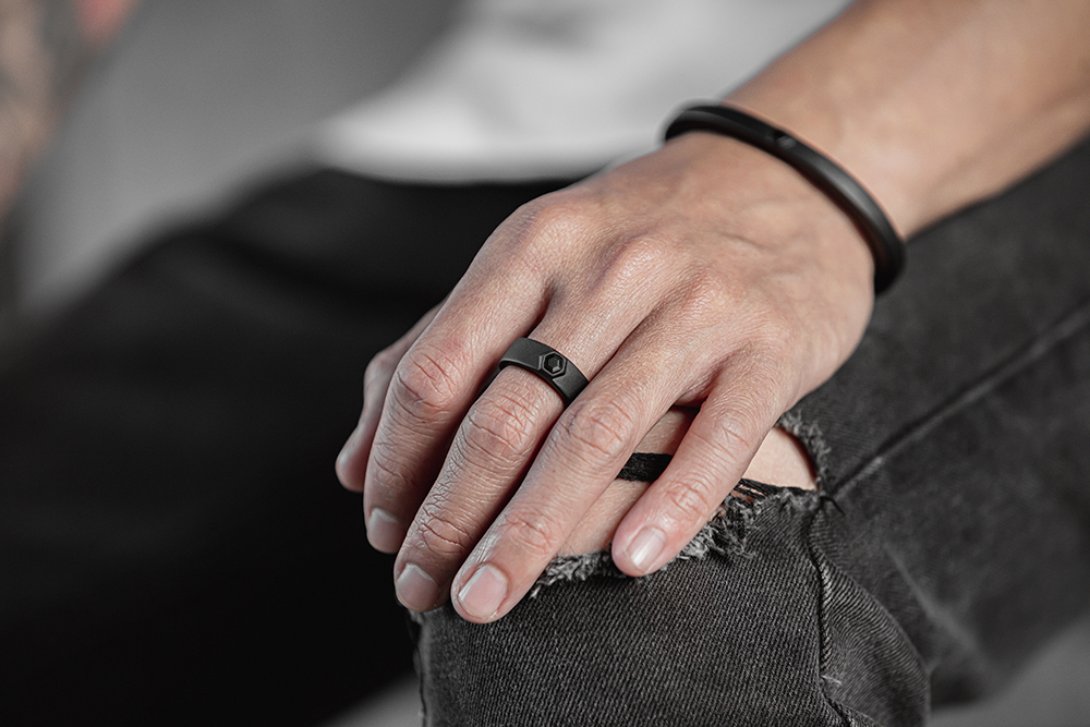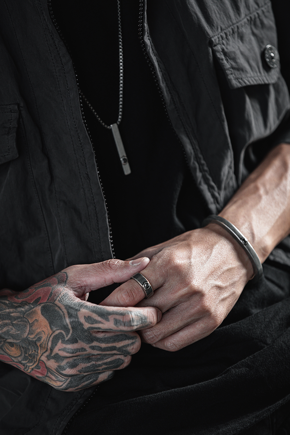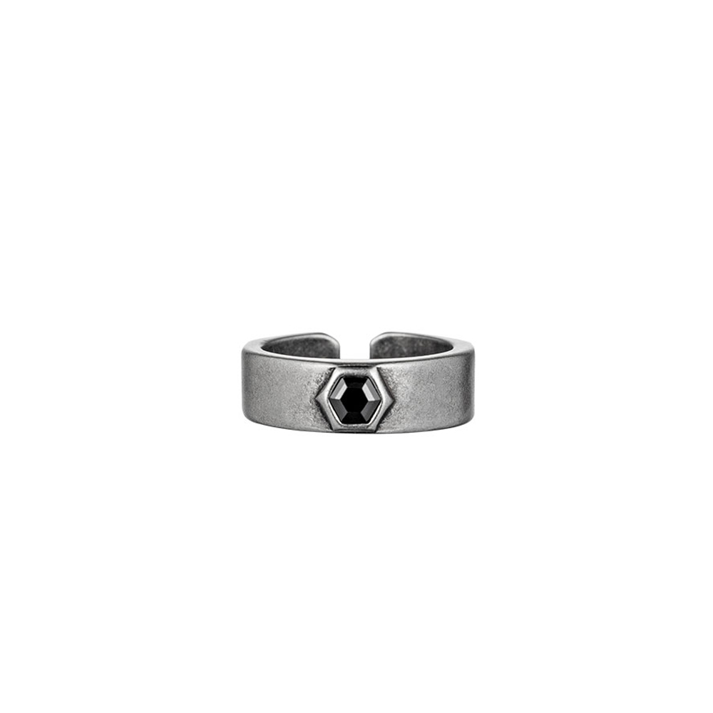 SOLO Simple Square Pillar Ring (Ancient Silver / Matte Black)