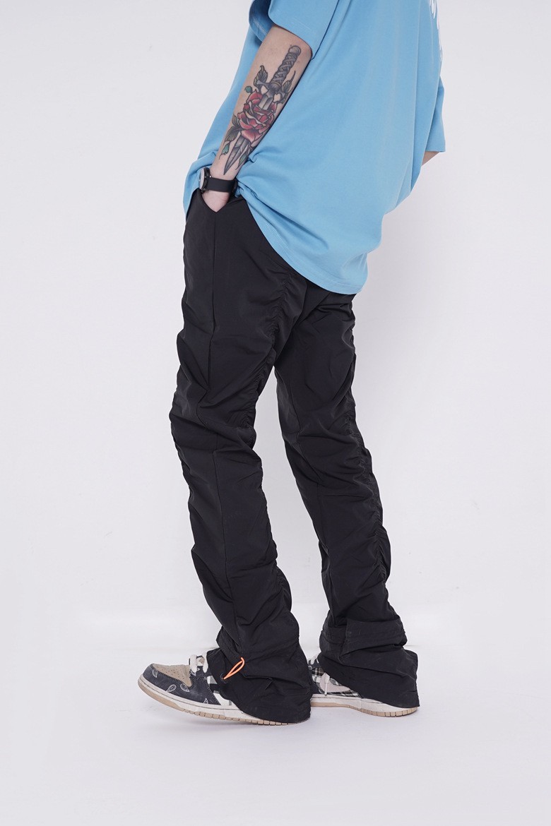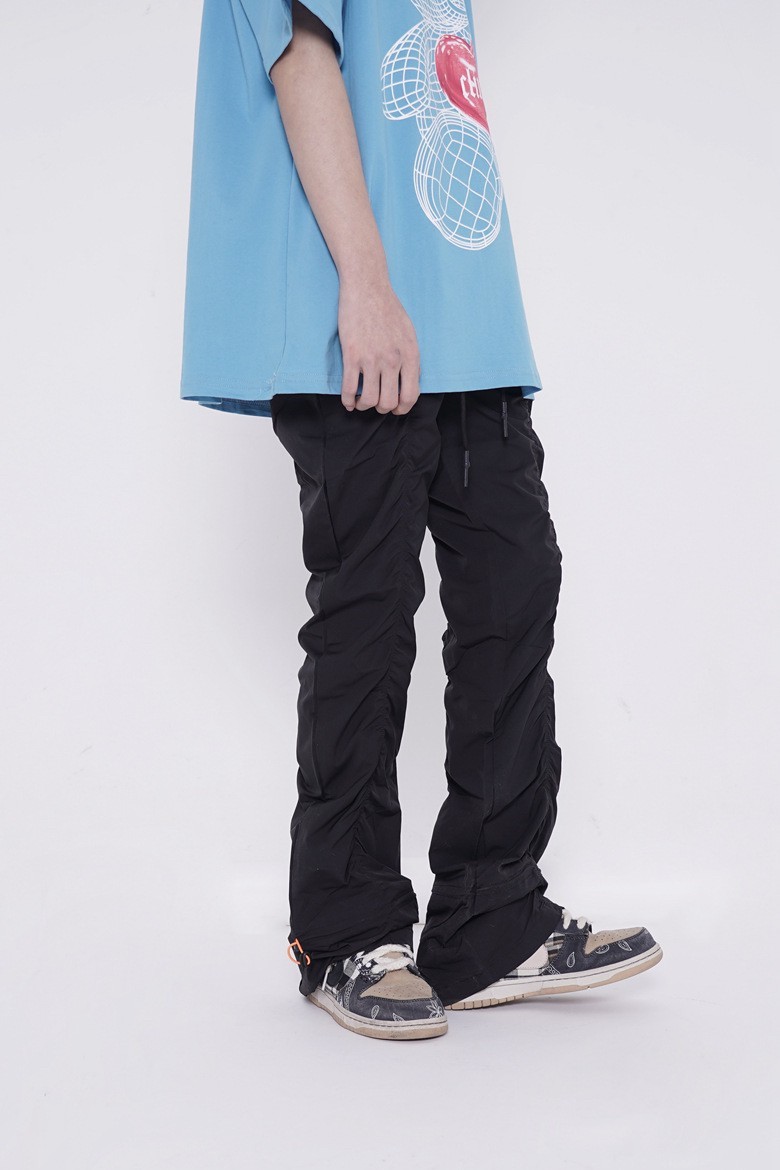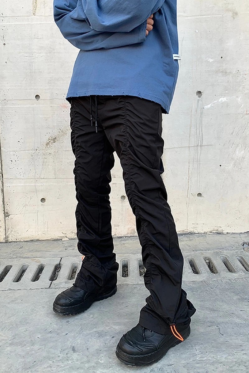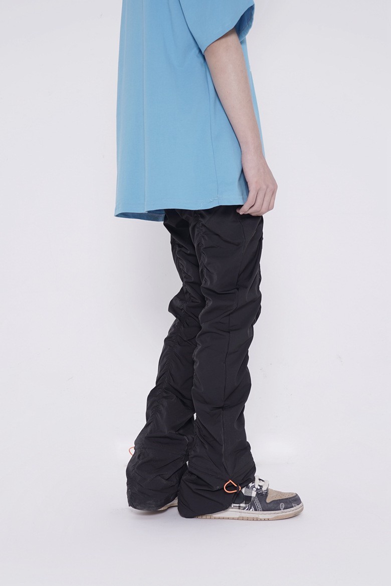 Vibe Metallic Nylon Snake Pants Micro-flared Pleated Pile-up Drawstring Pants Wide Leg Pants