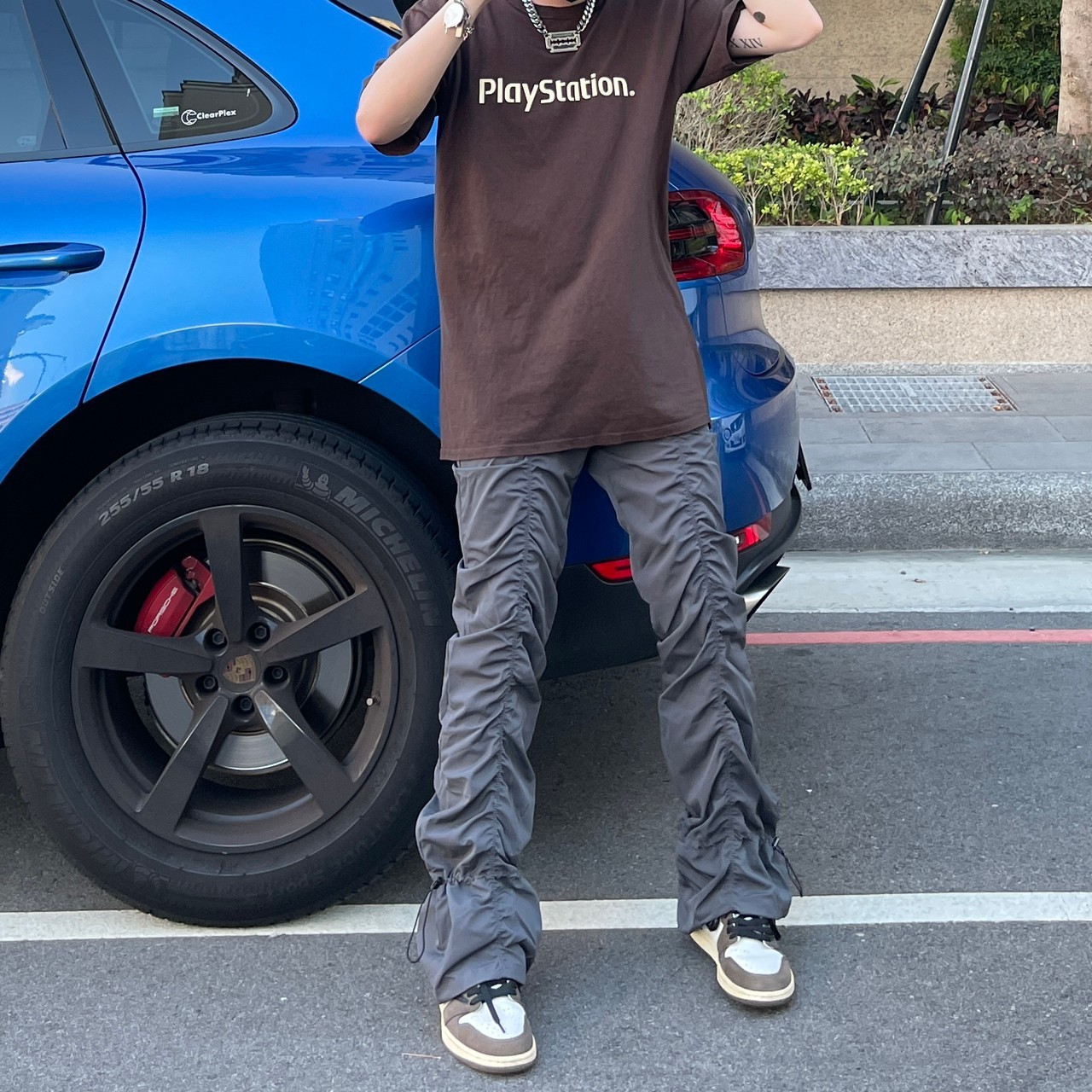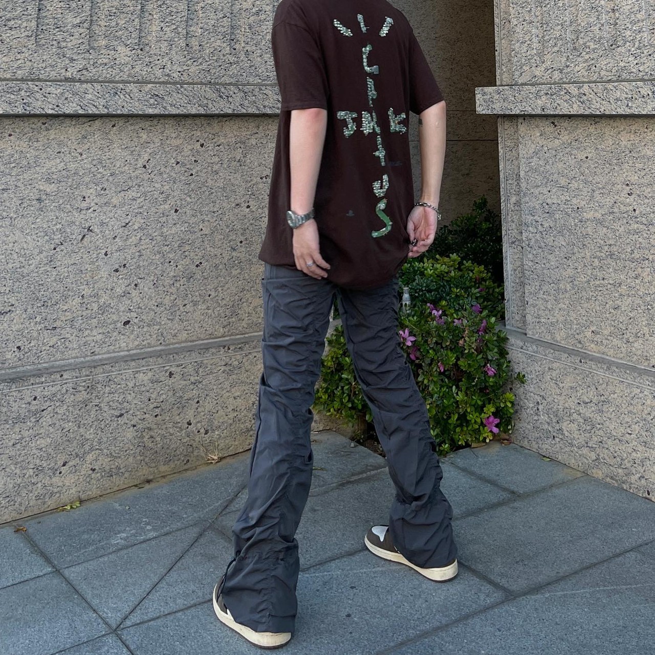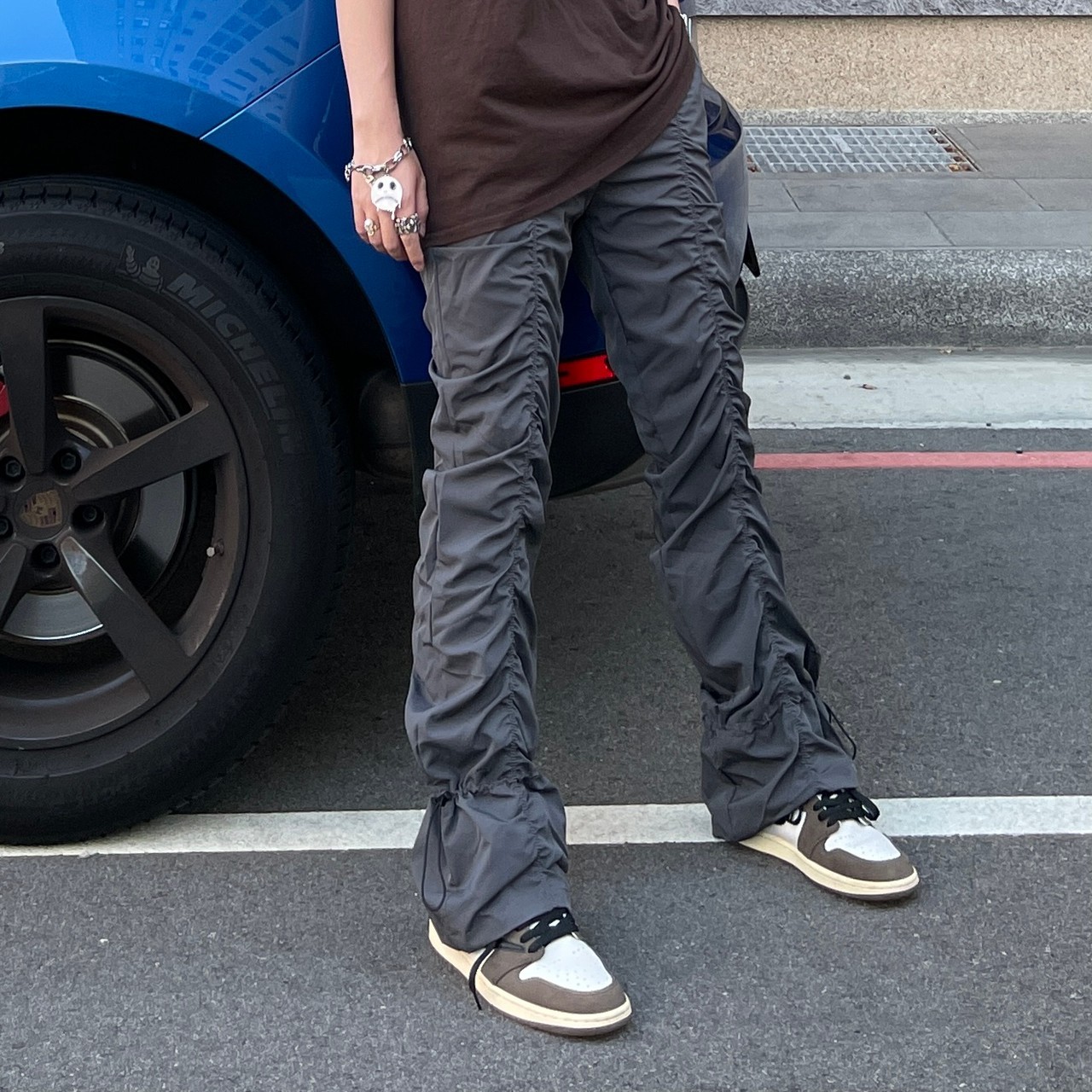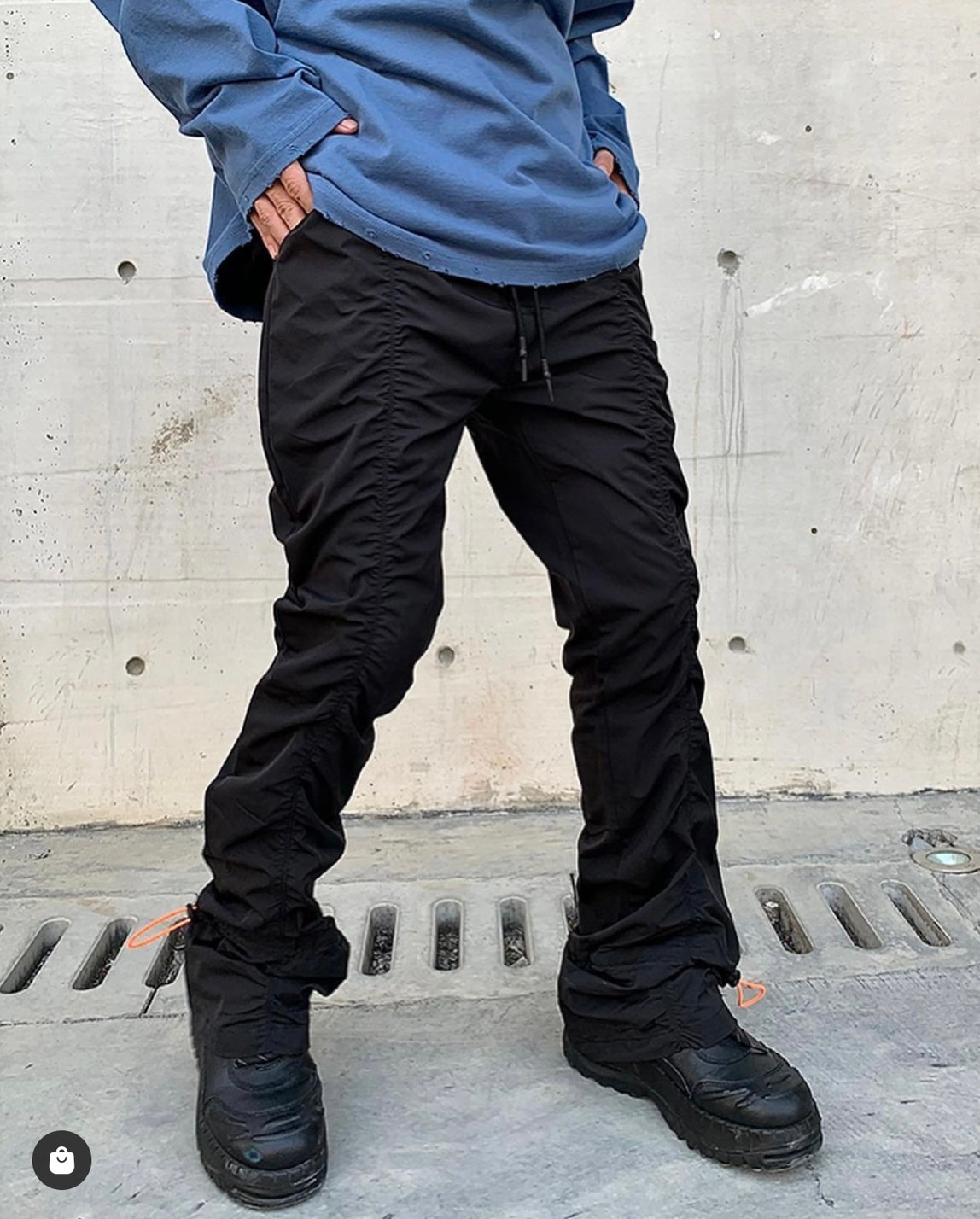 Vibe Metallic Nylon Snake Pants Micro-flared Pleated Pile-up Drawstring Pants Wide Leg Pants