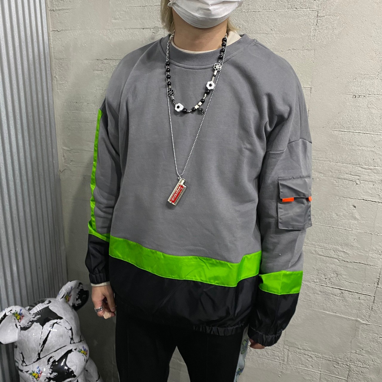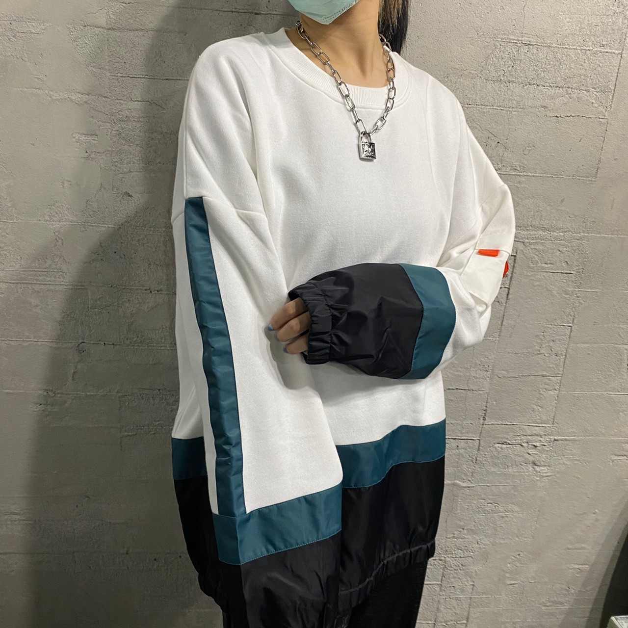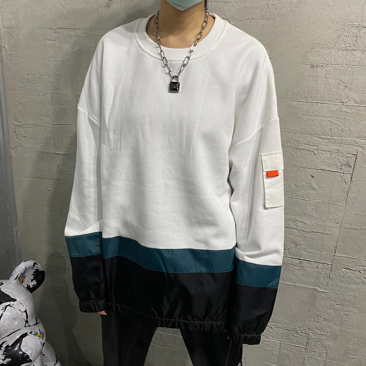 [現貨]韓國 質感 韓國 異材質 拼接 撞色 機能 衛衣