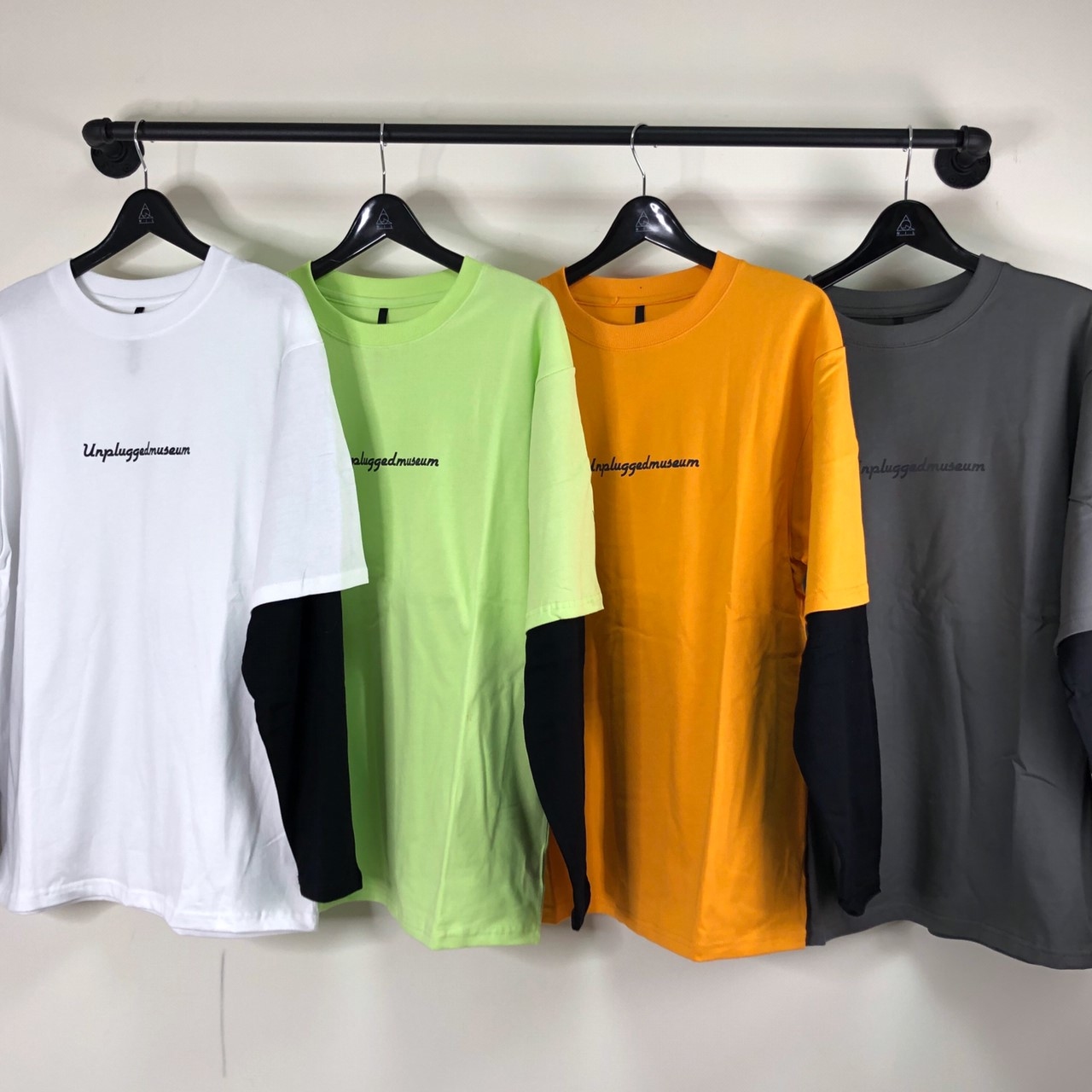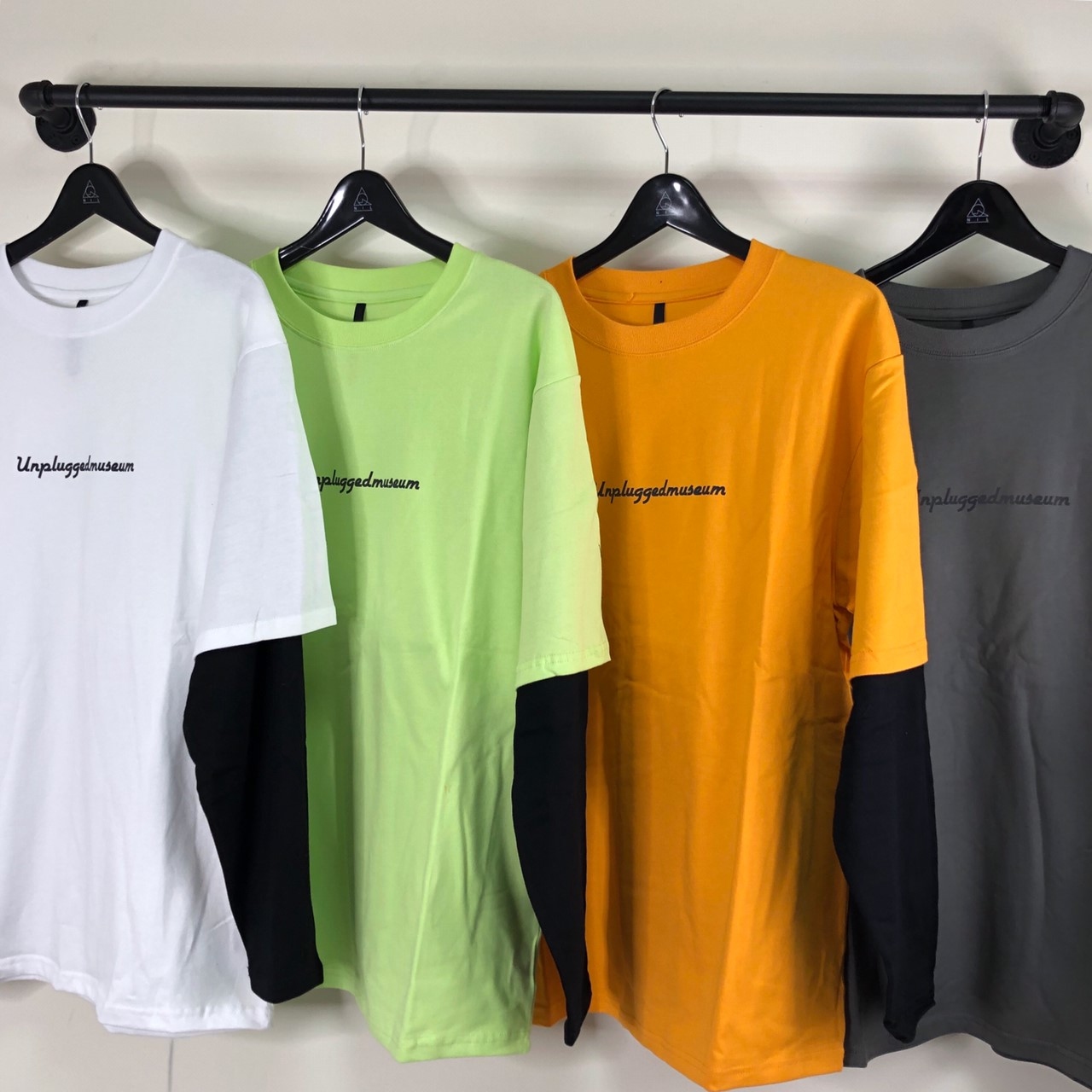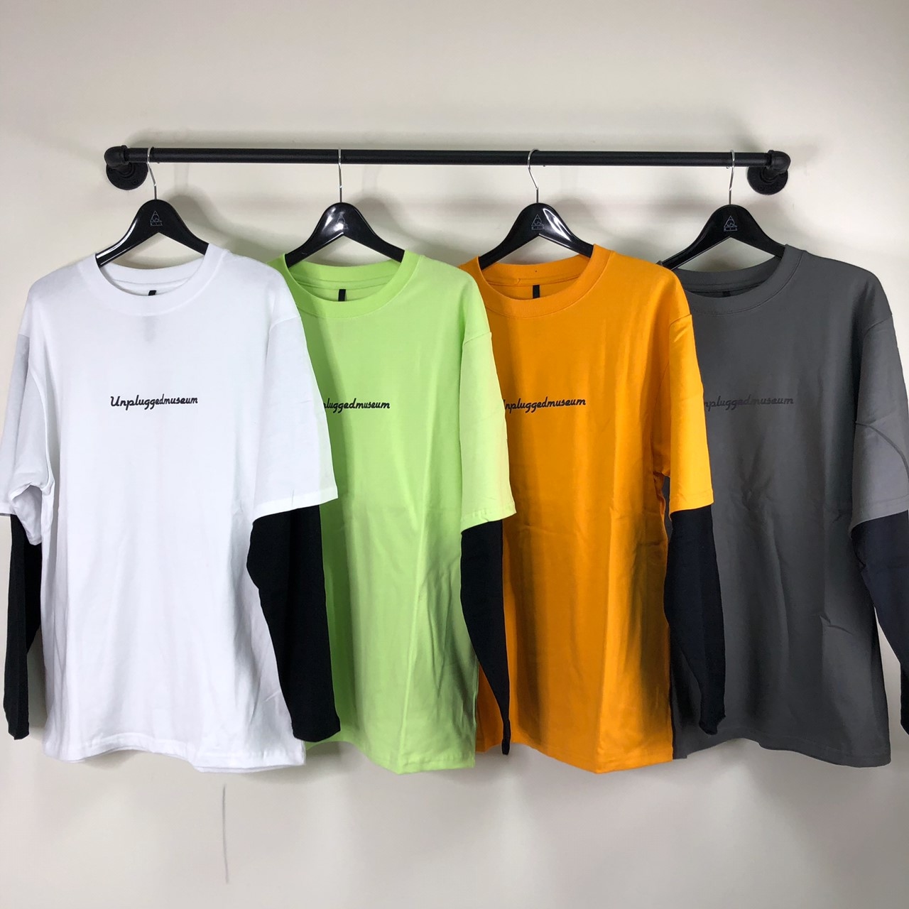 韓國 反光炫彩假兩件長袖單一尺寸 肩寬52 胸寬60 衣長76 白/綠/灰/橘