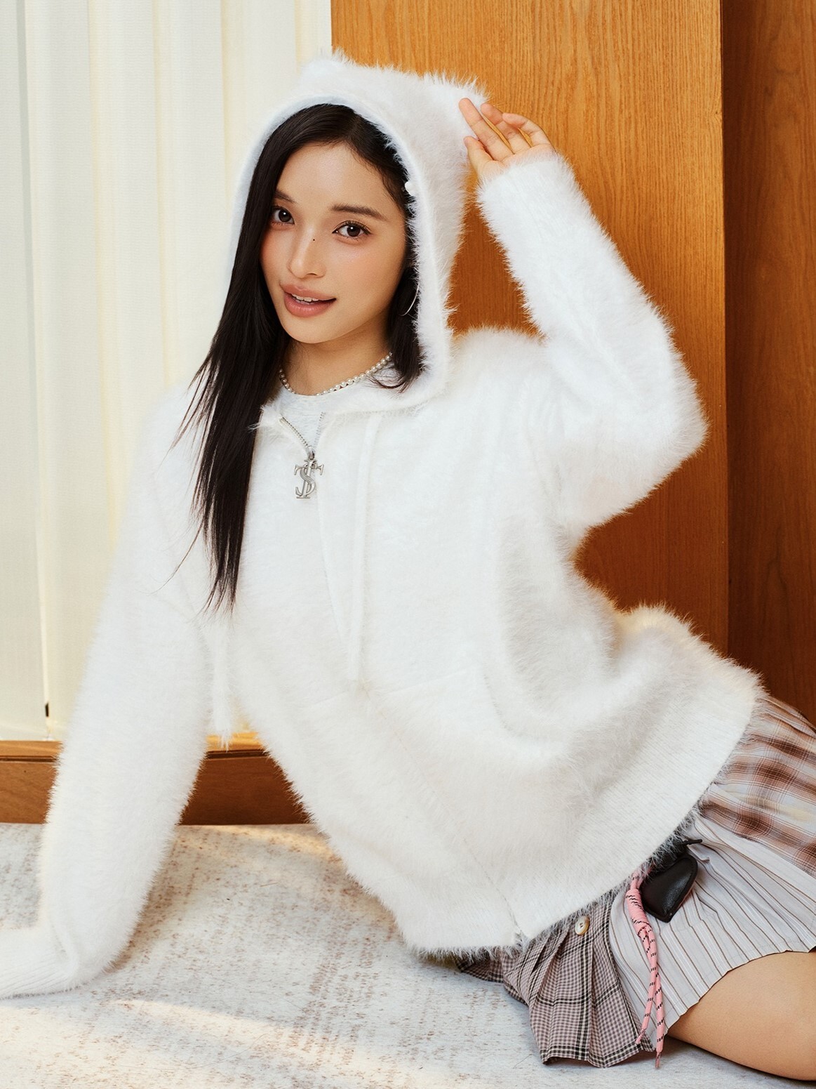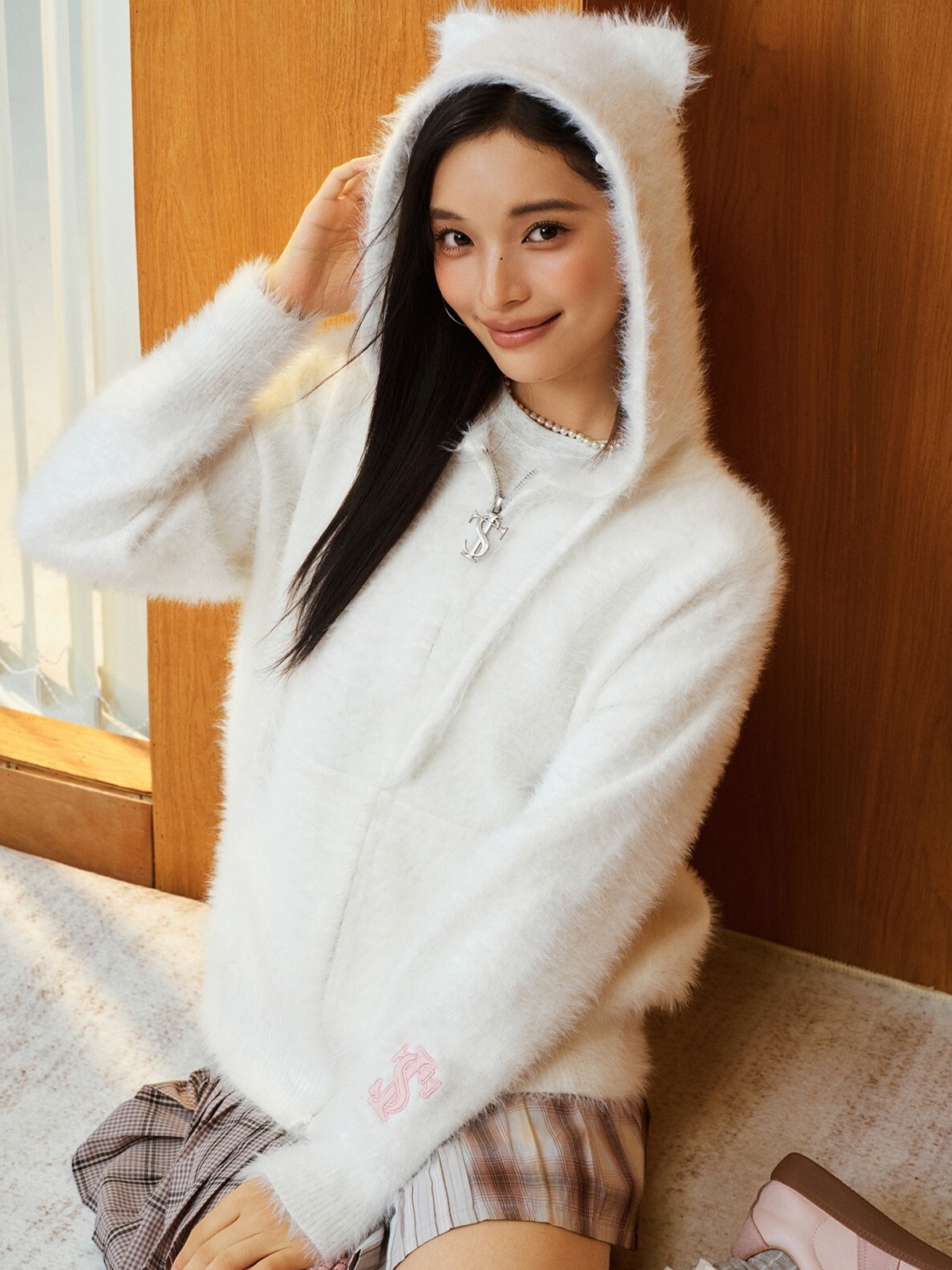 STK SmallTownKid Cat Ear Plush Hooded Jacket