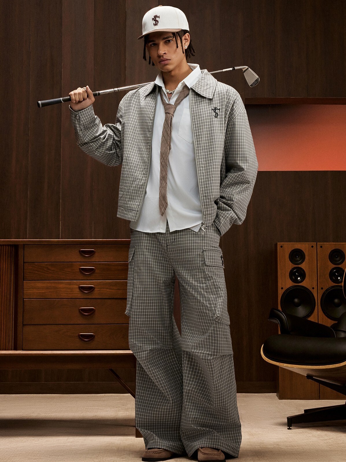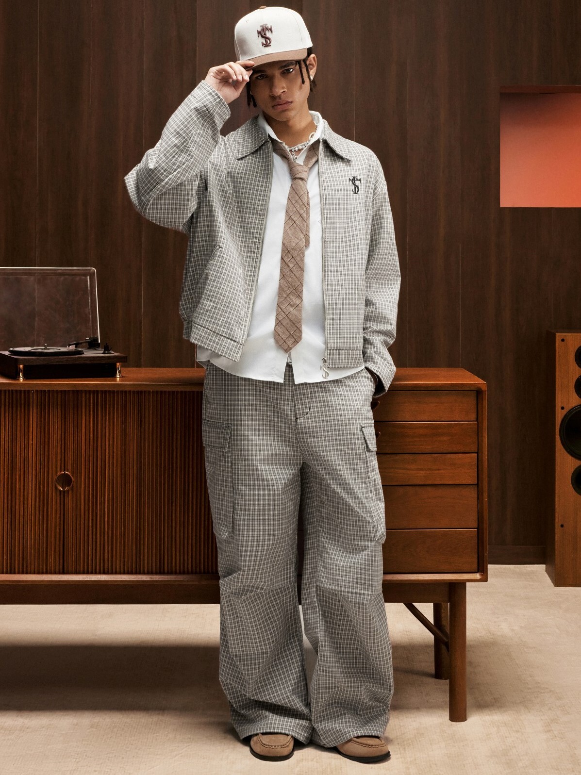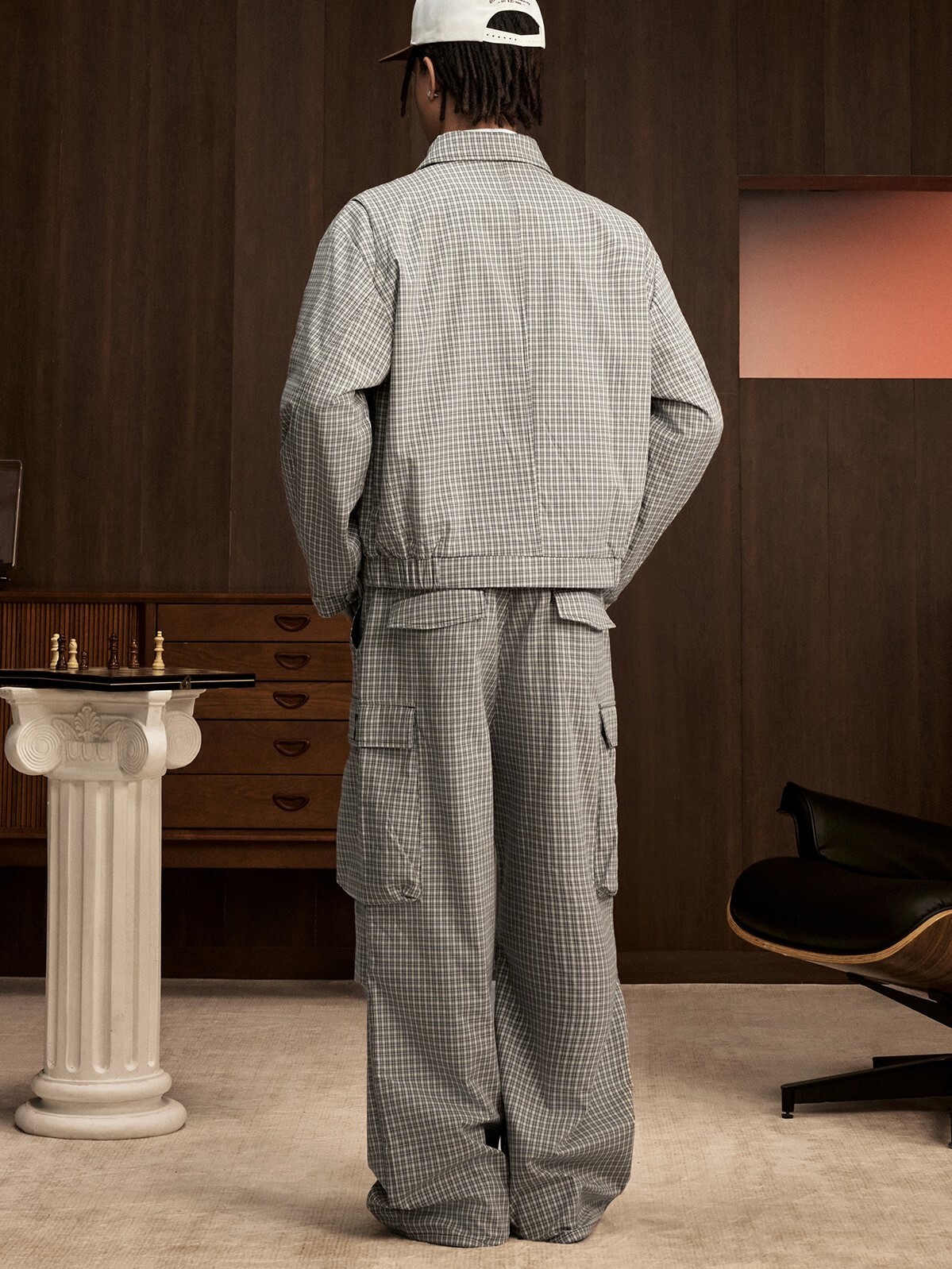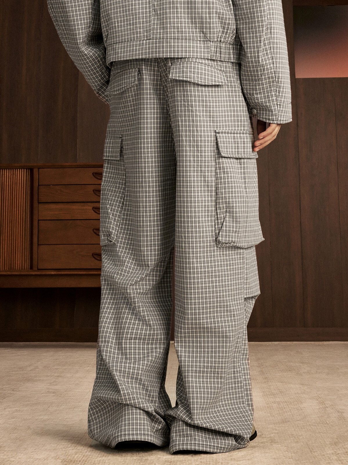 STK SmallTownKid 刺繡Logo 大口袋 格紋工裝長褲
