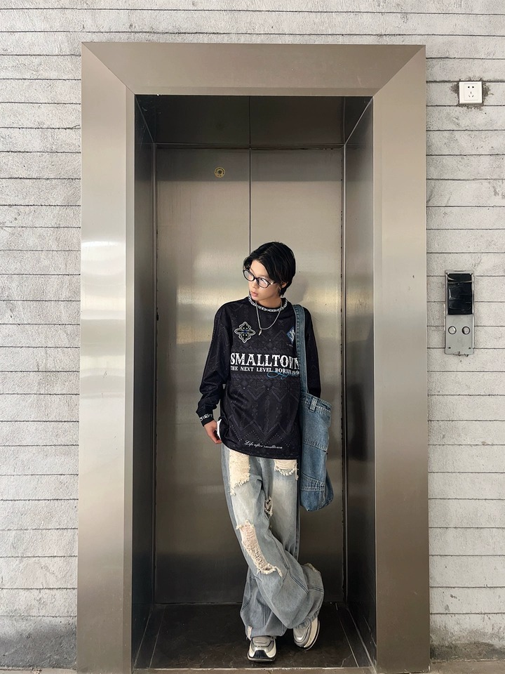 STK SmallTownKid ethnic style patch LOGO mesh breathable long sleeves