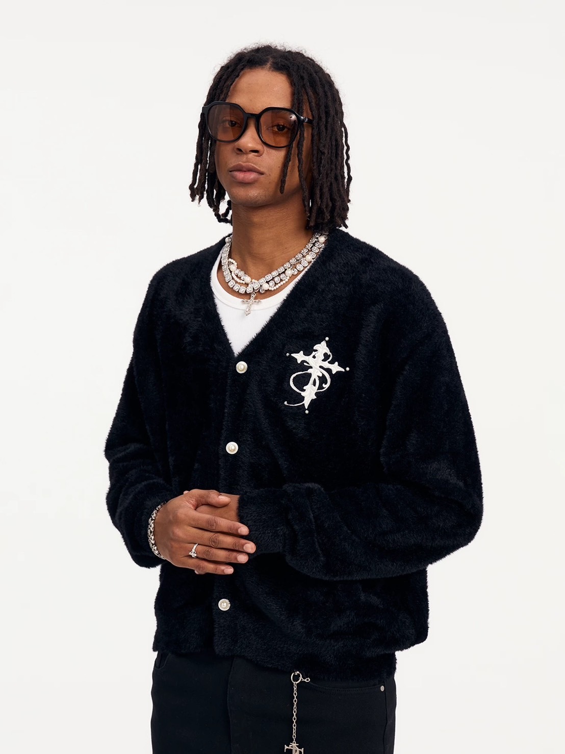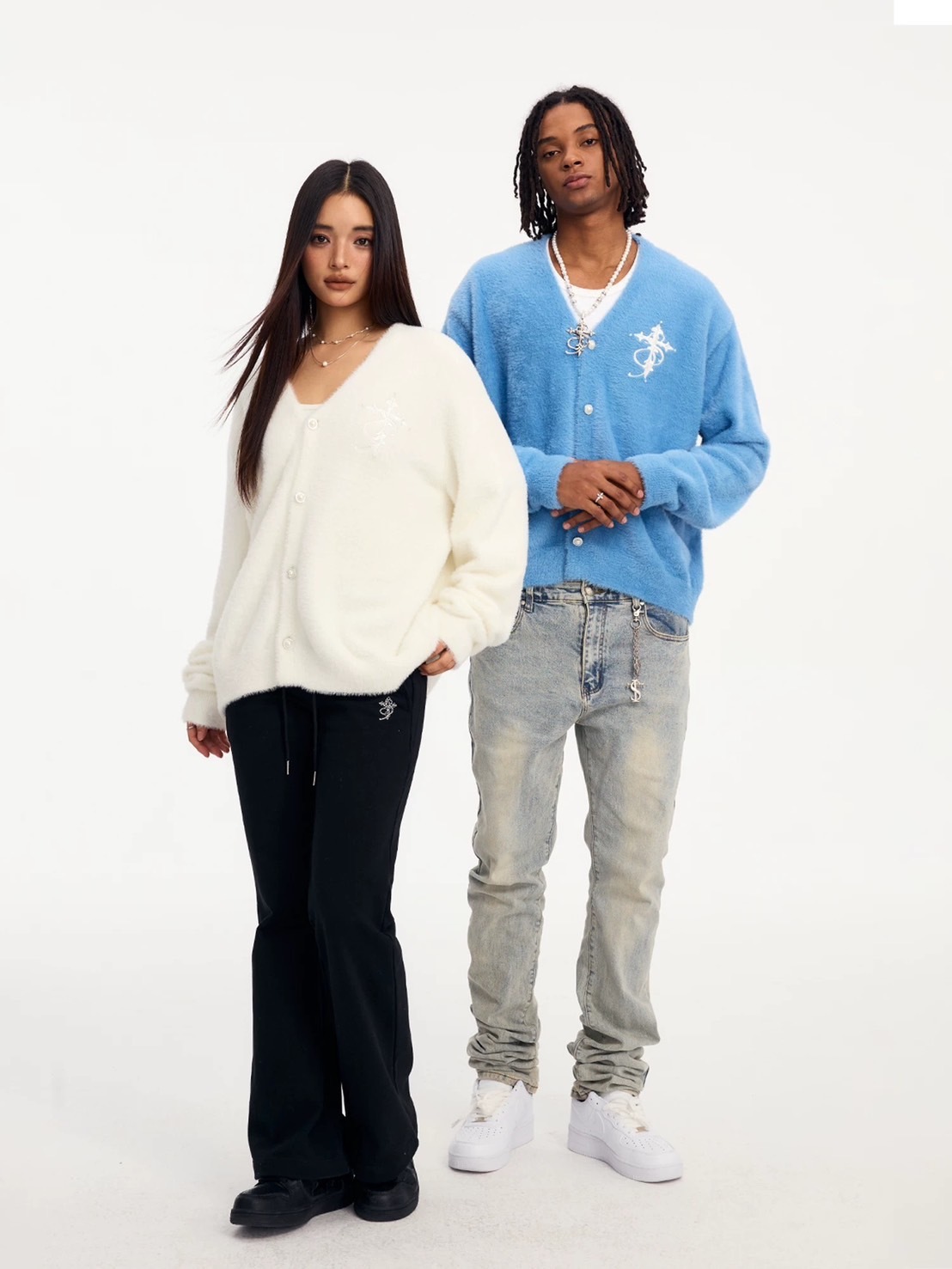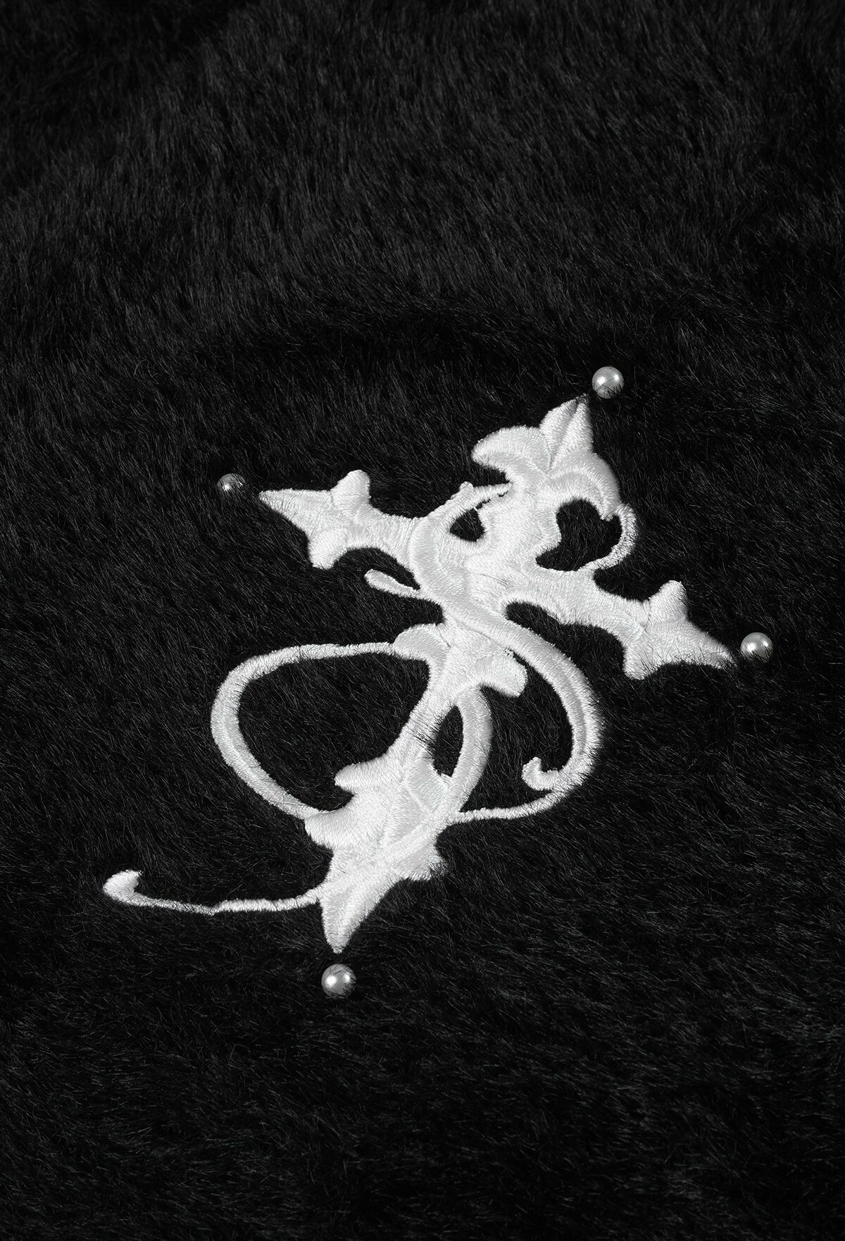 STK SmallTownKid 仿貂毛 珍珠刺繡Logo 針織開襟衫外套