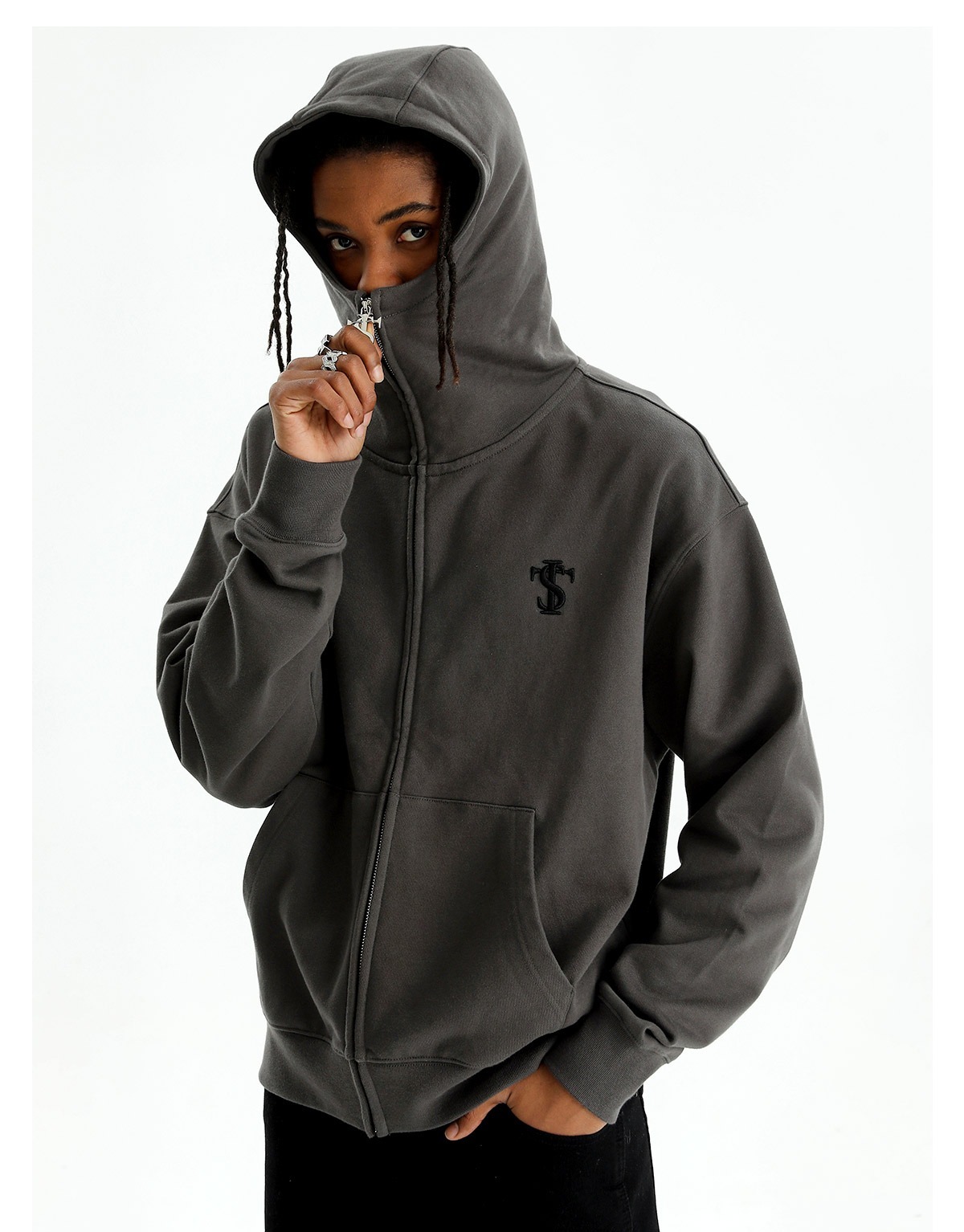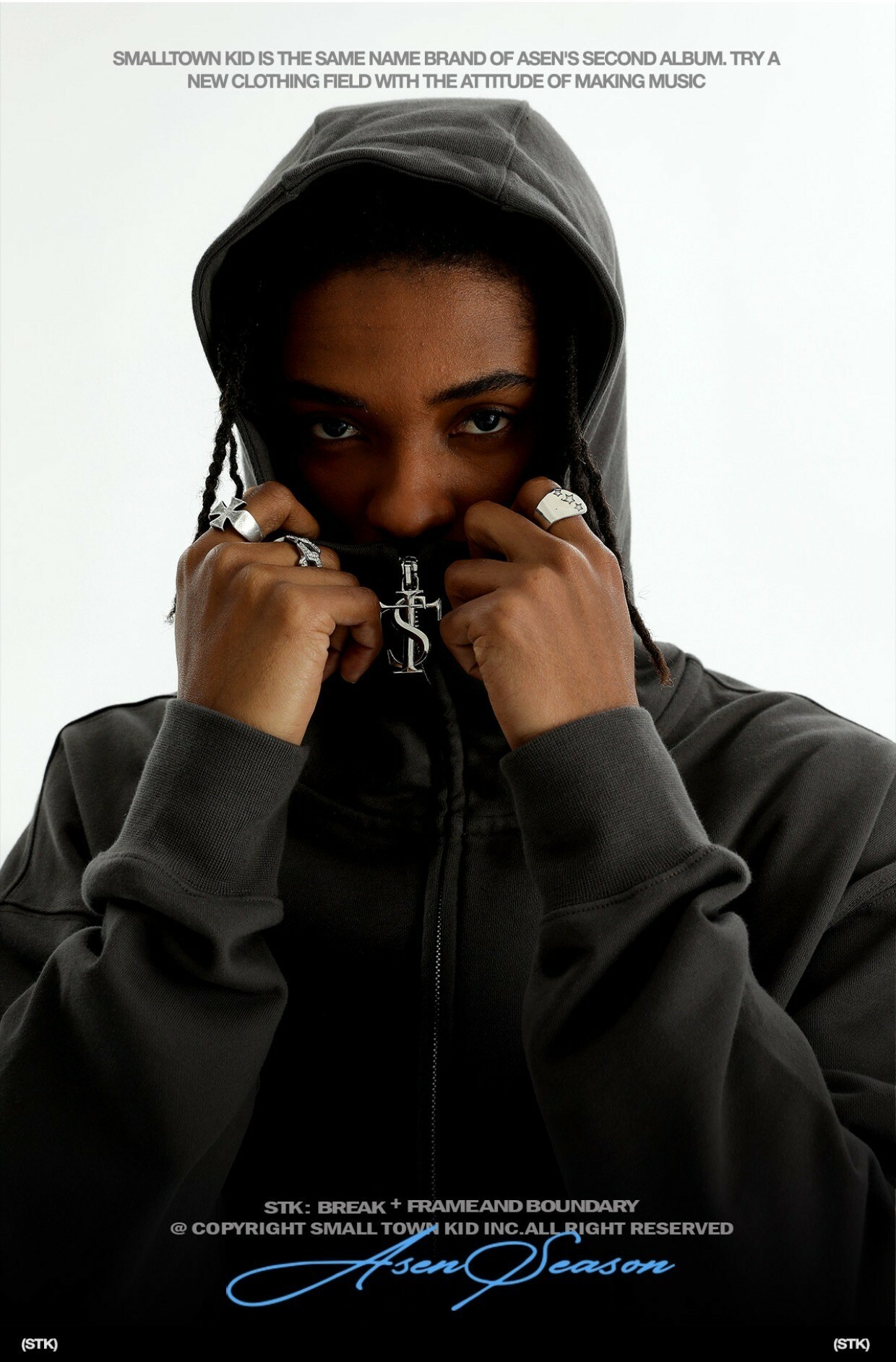 STK SmallTownKid LOGO拉鍊 遮面高領 連帽外套