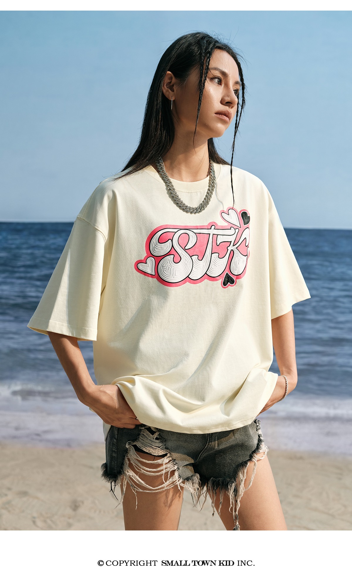 STK SmallTownKid 愛心紋理 發泡LOGO 短袖 T恤