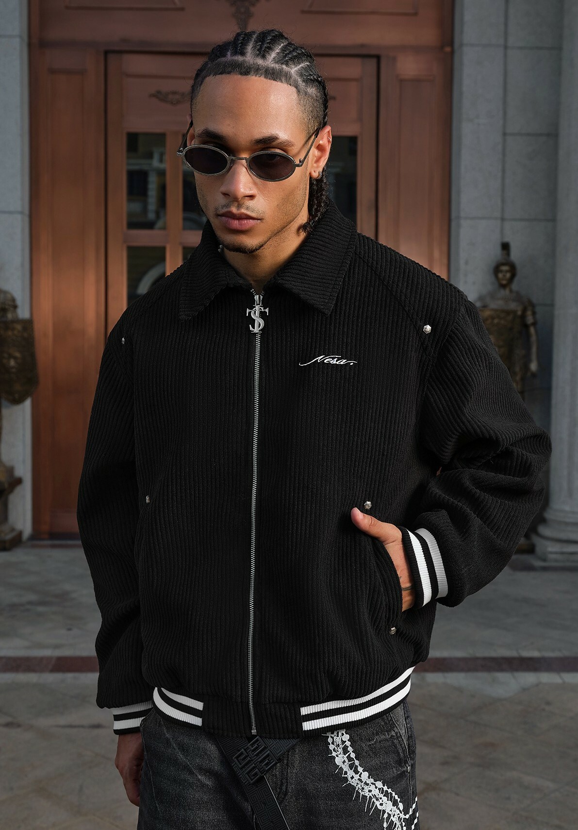 STK SmallTownKid 鉚釘十字 燈芯絨外套