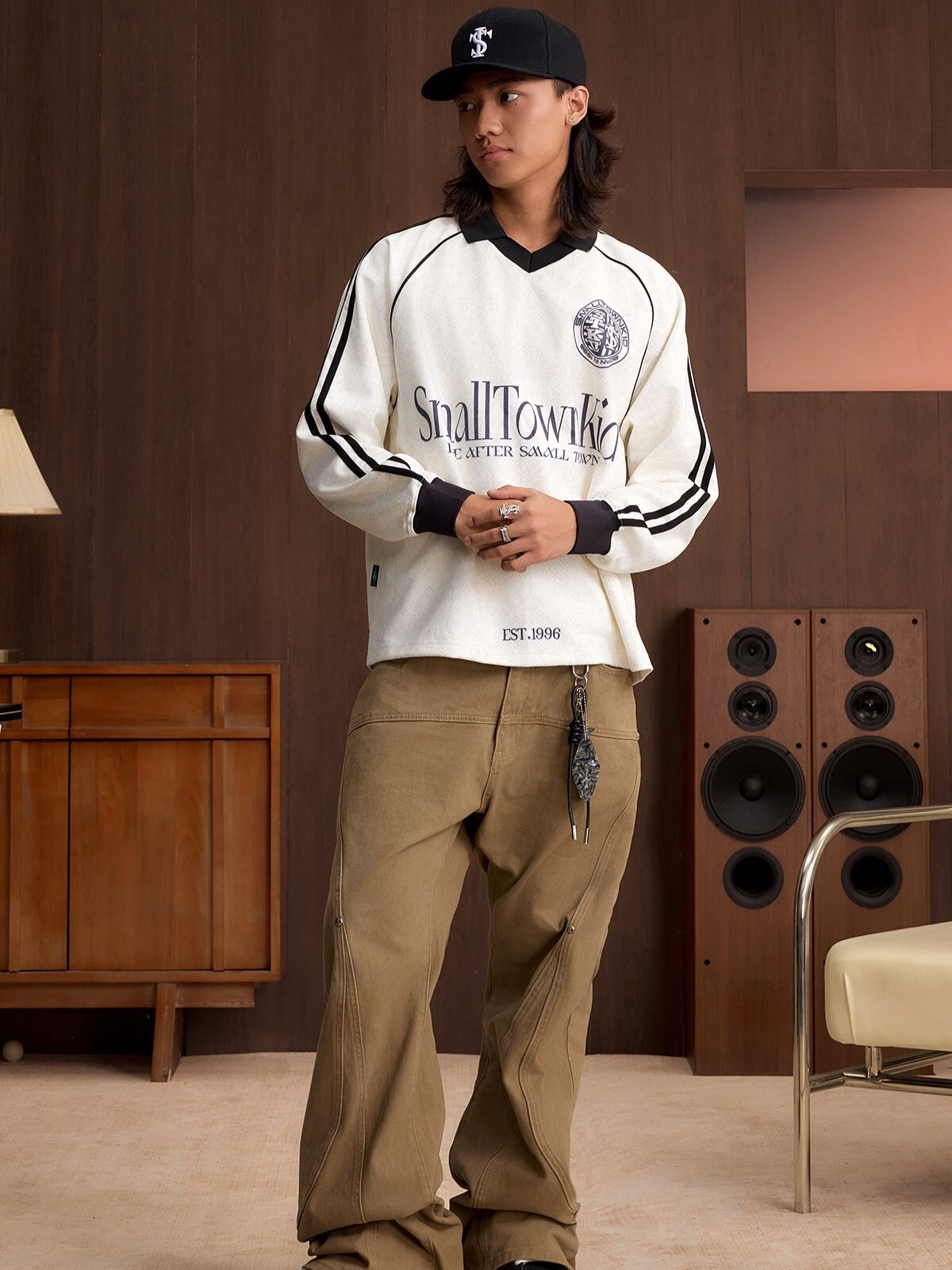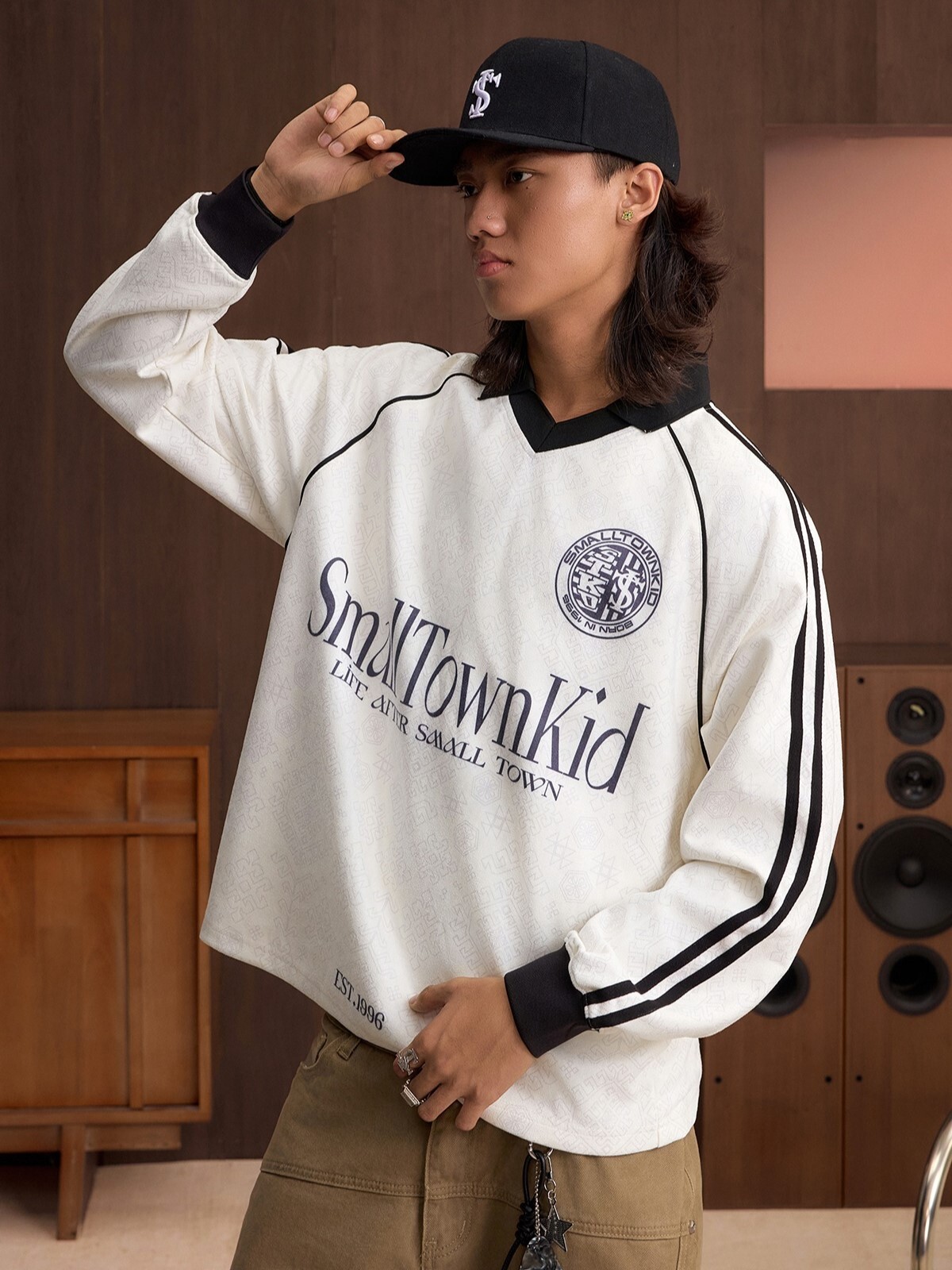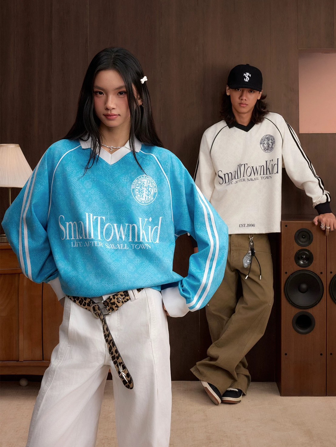 STK SmallTownKid 西蘭卡普 麂皮絨 翻領球衣 長袖 T