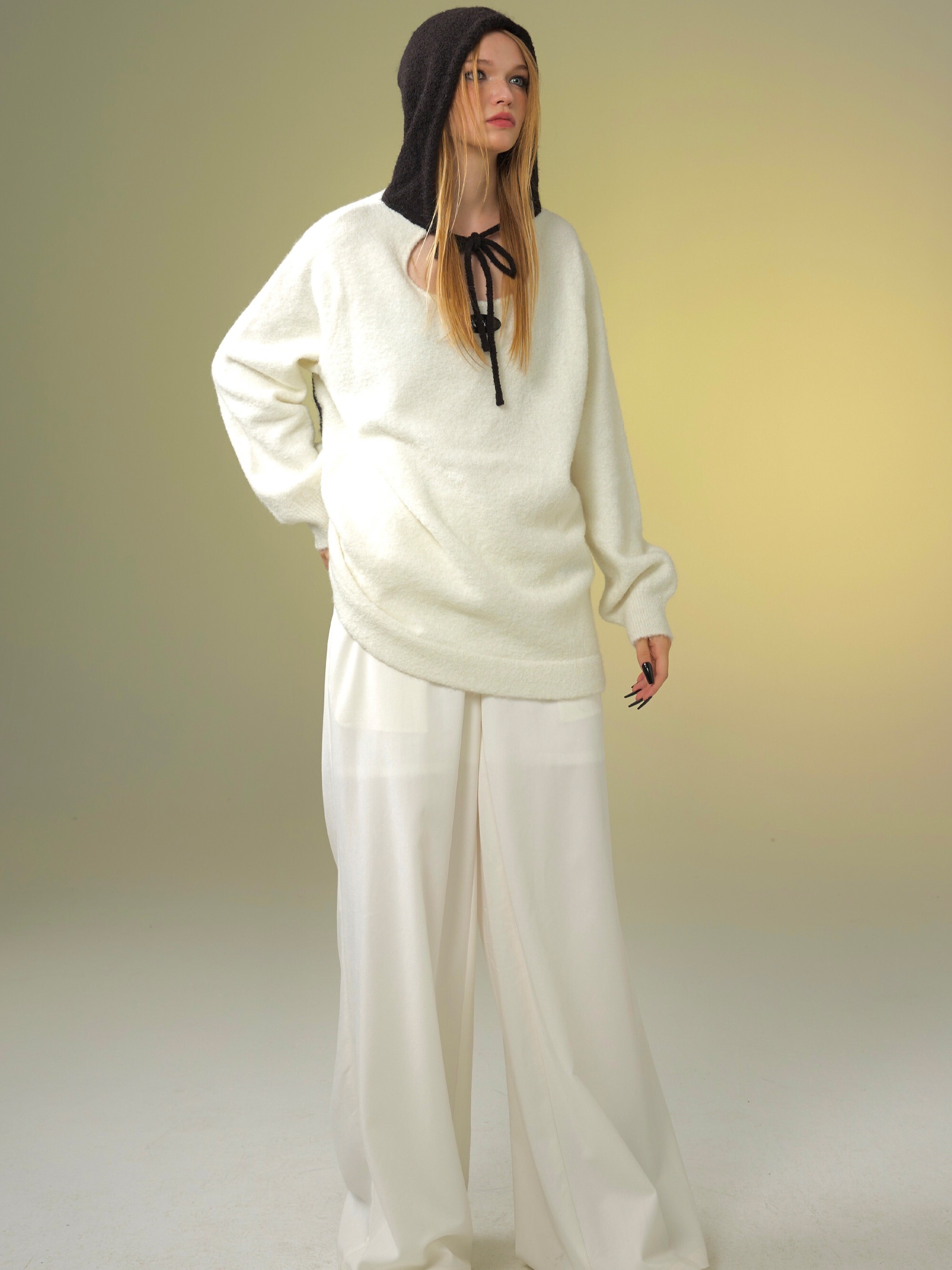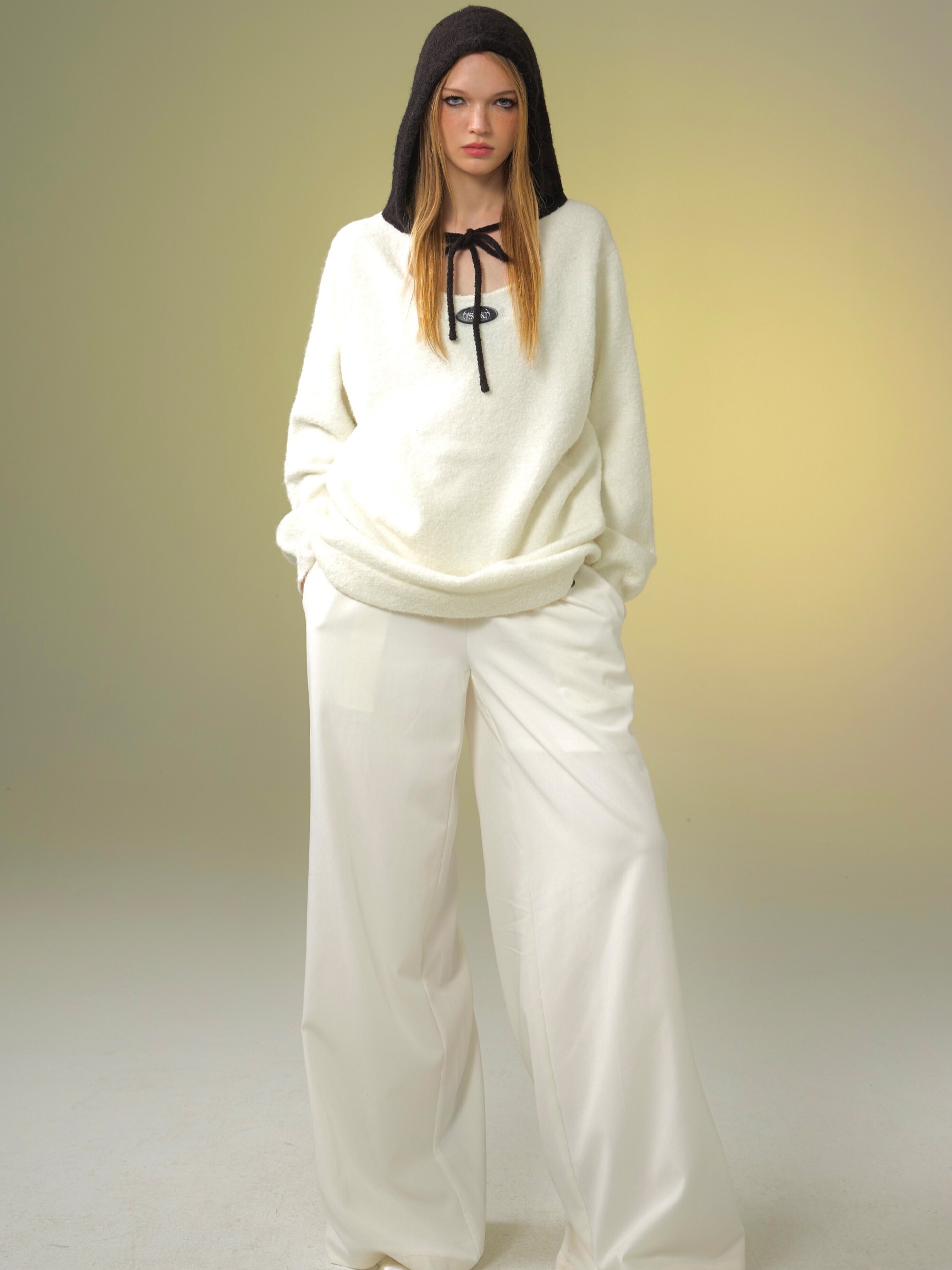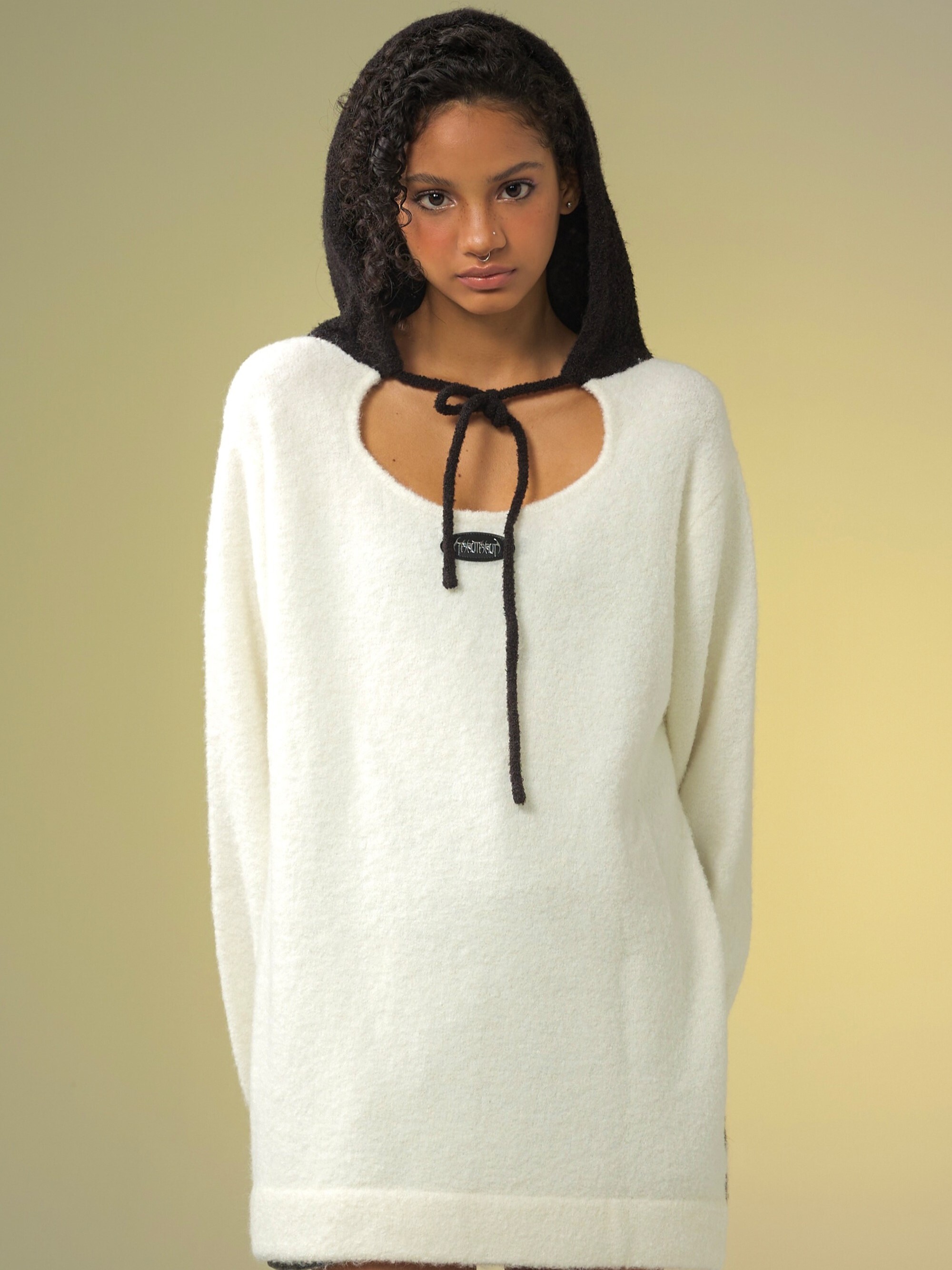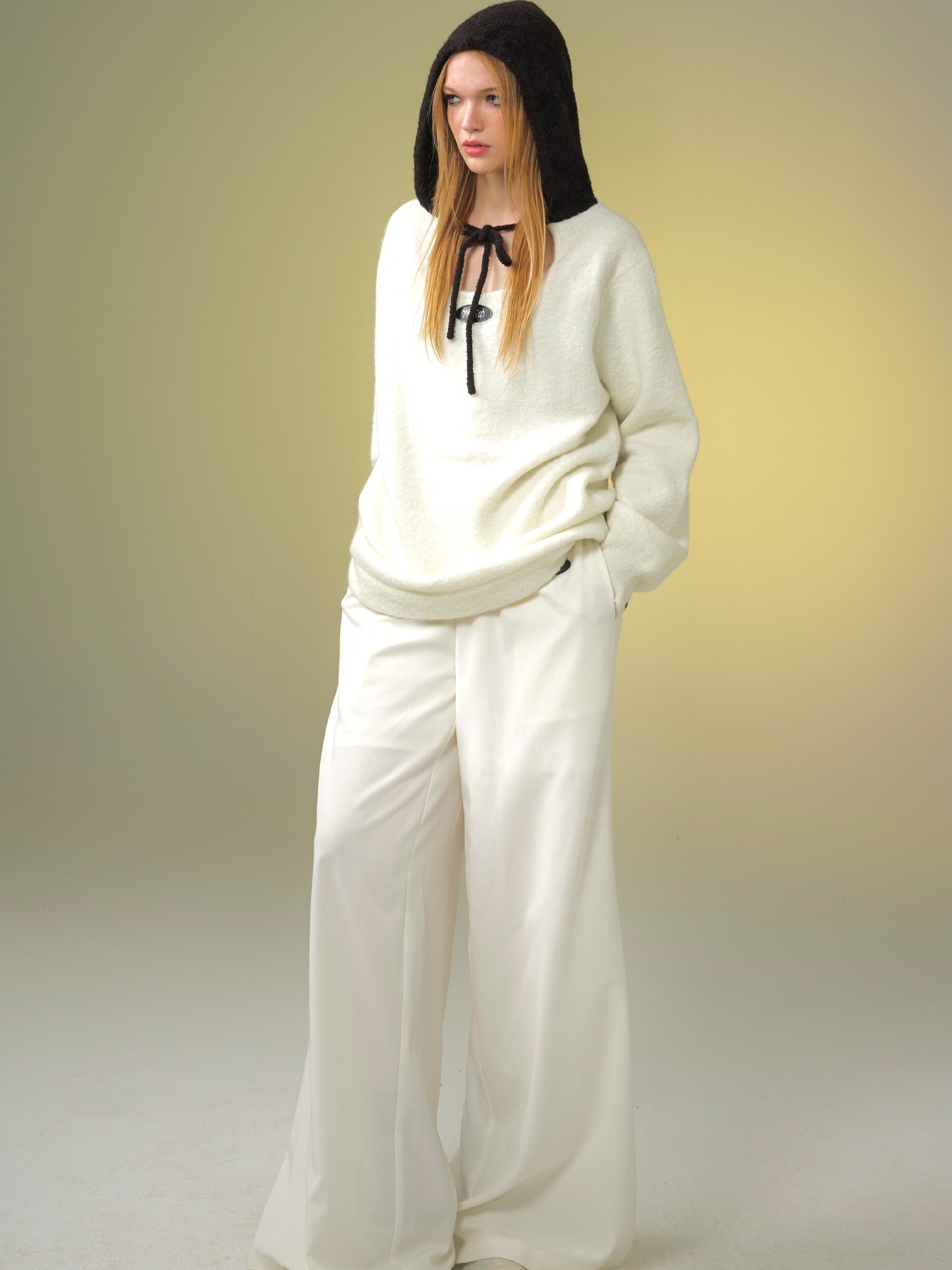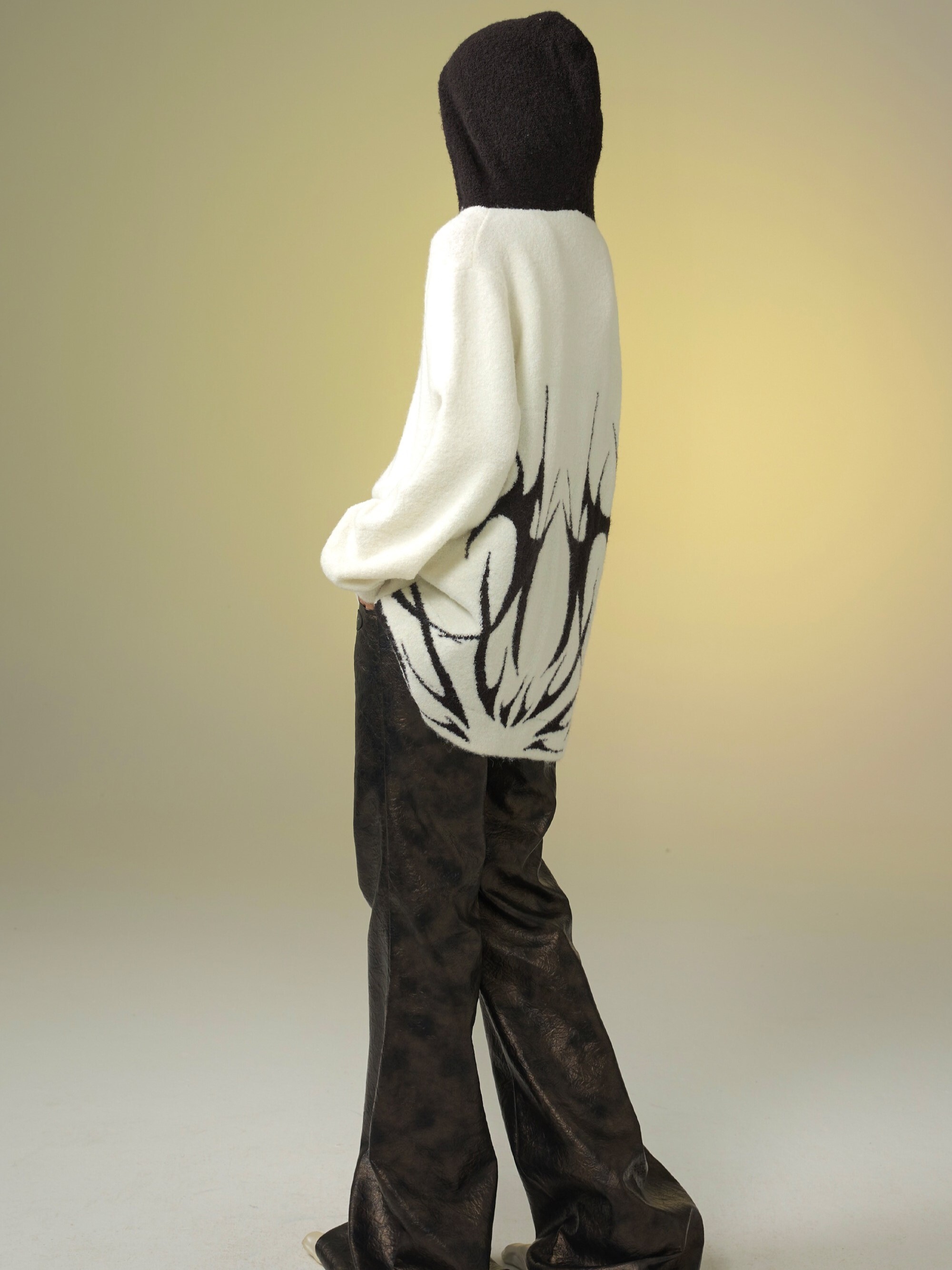 TAROTAROT 寬鬆 黑白撞色 連帽毛衣