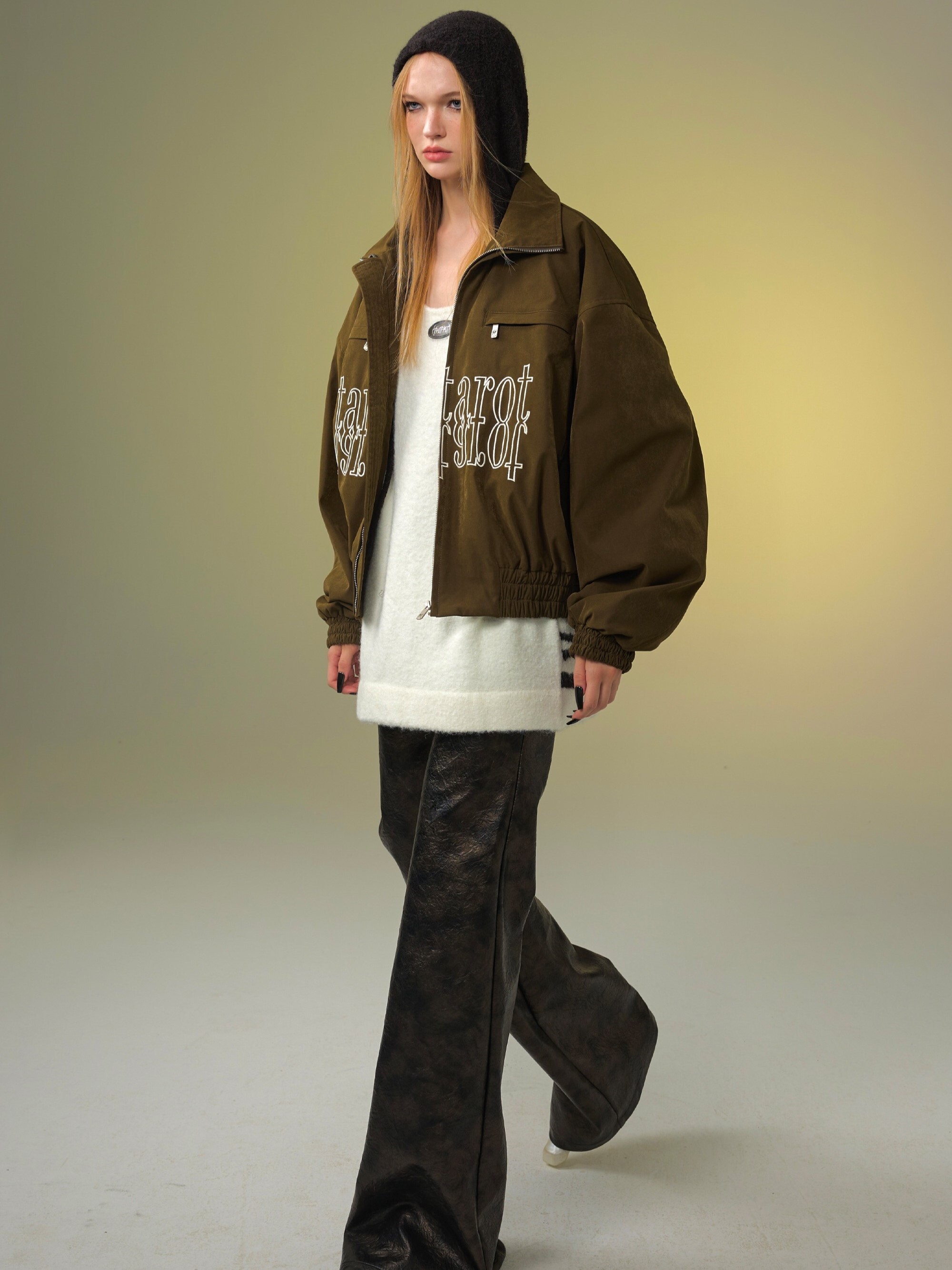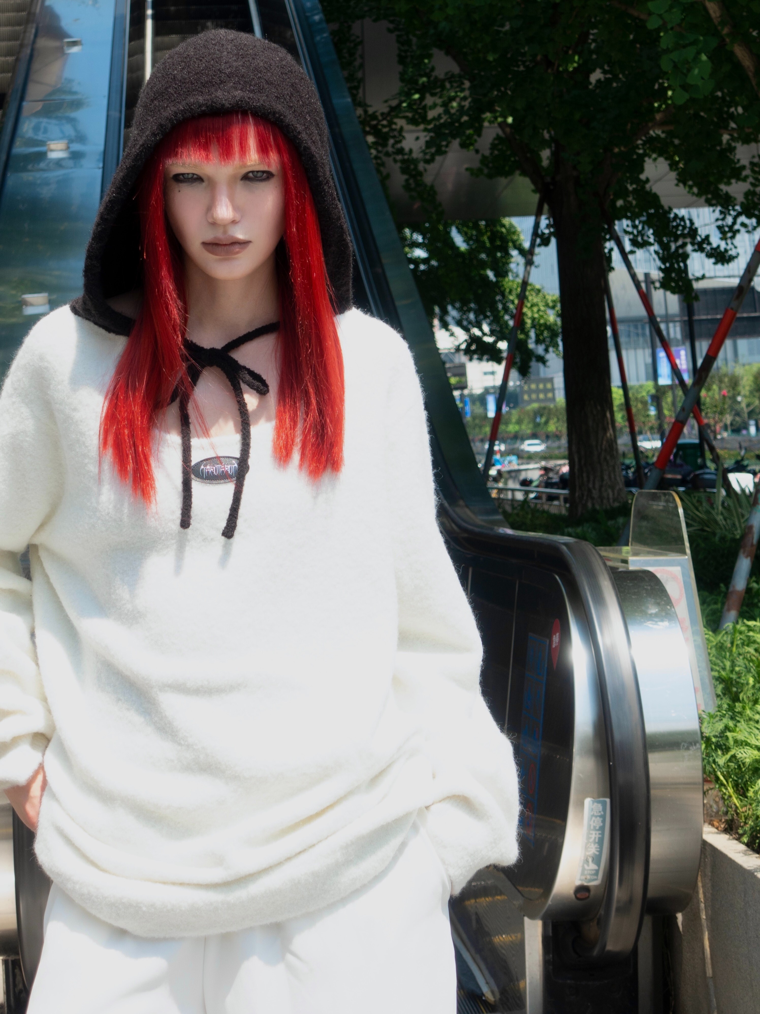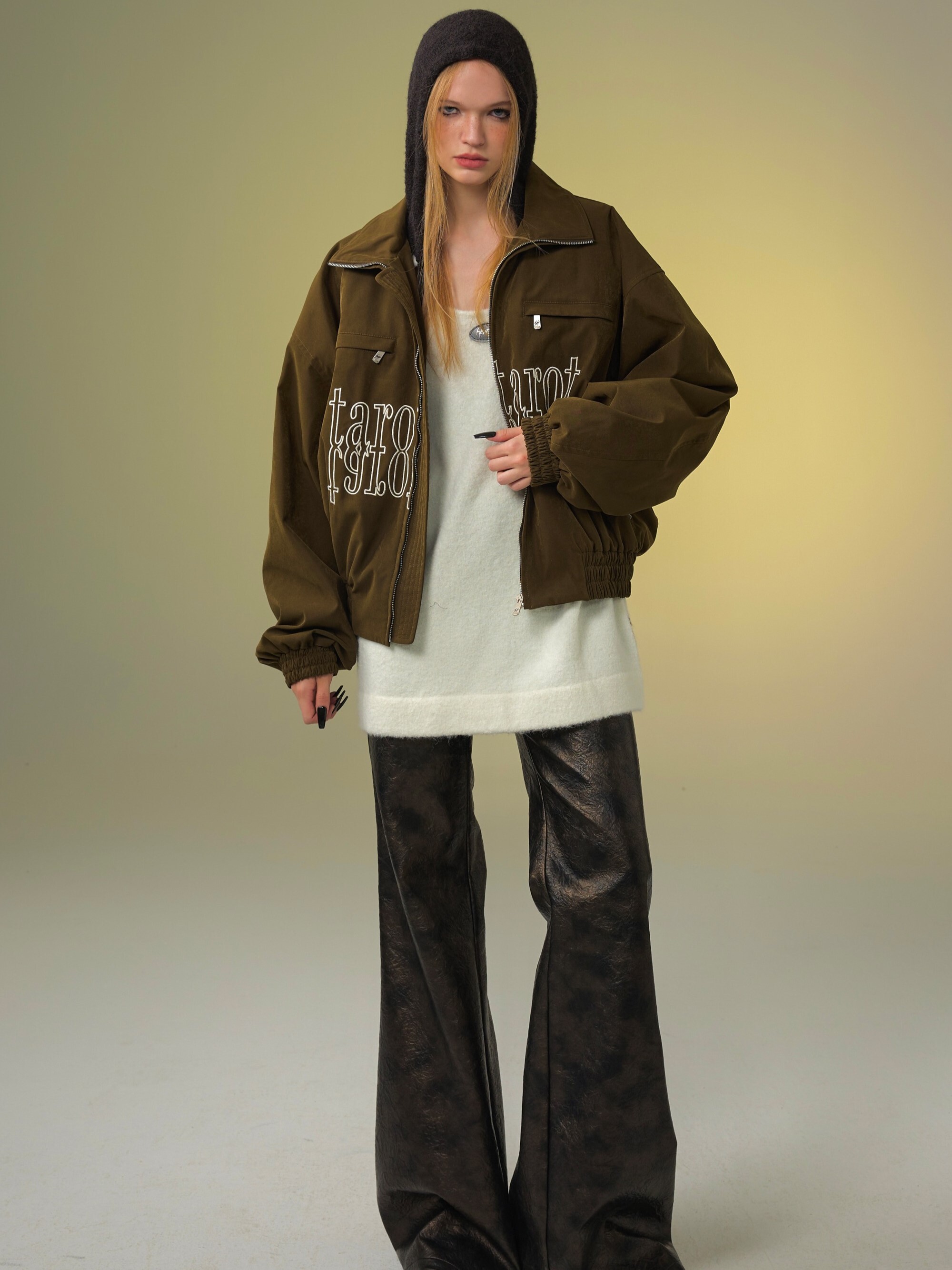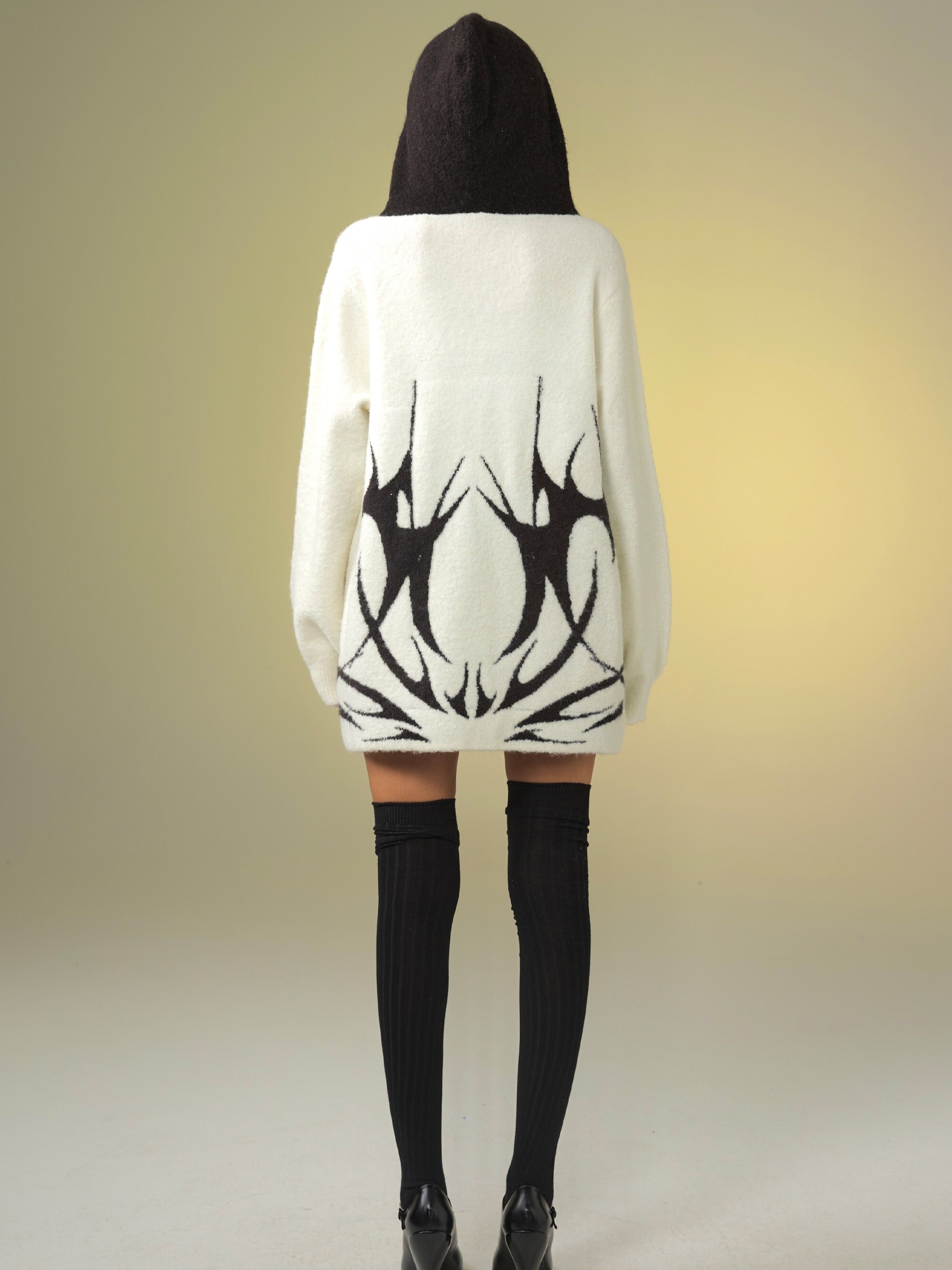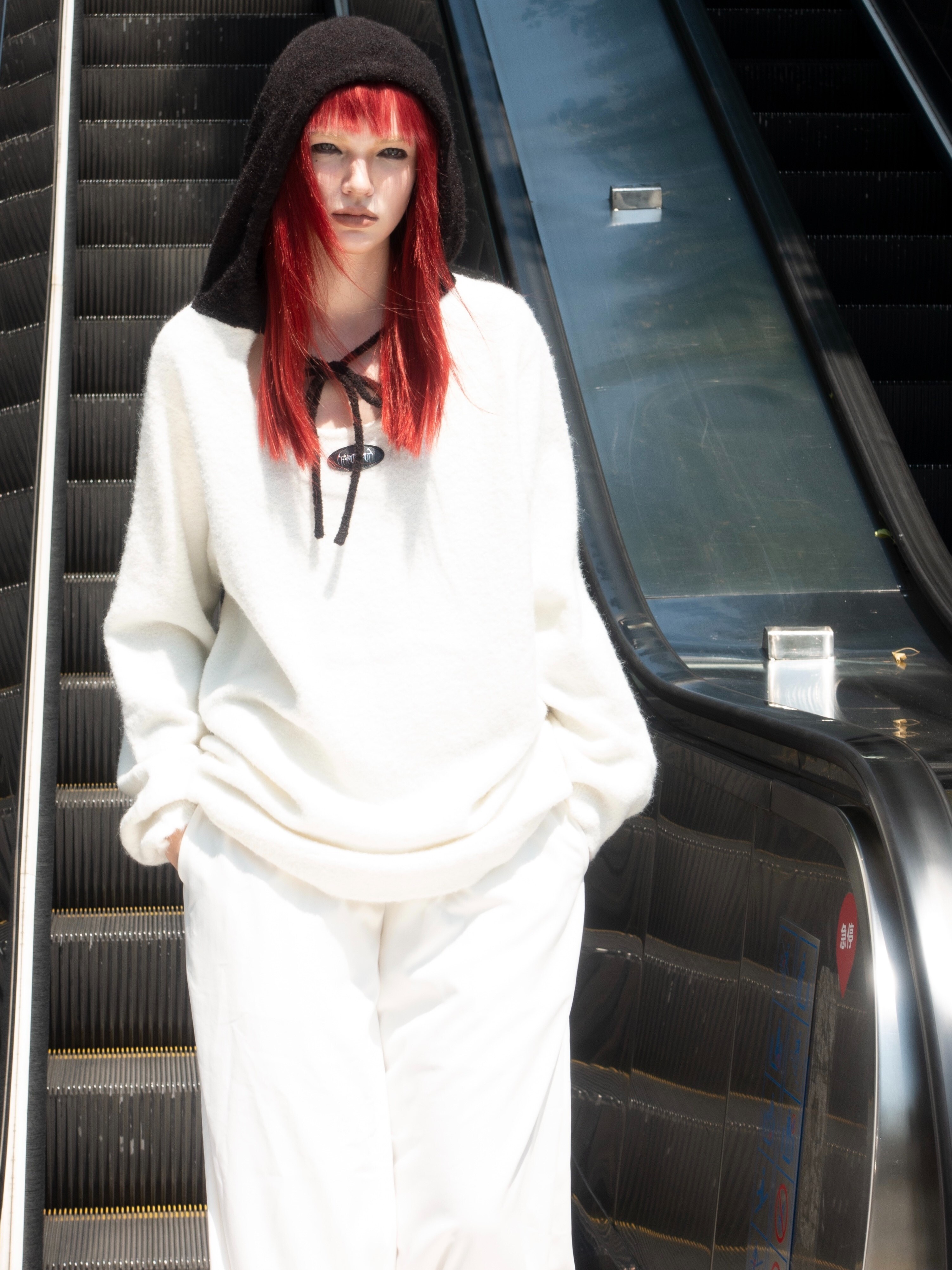 TAROTAROT 寬鬆 黑白撞色 連帽毛衣