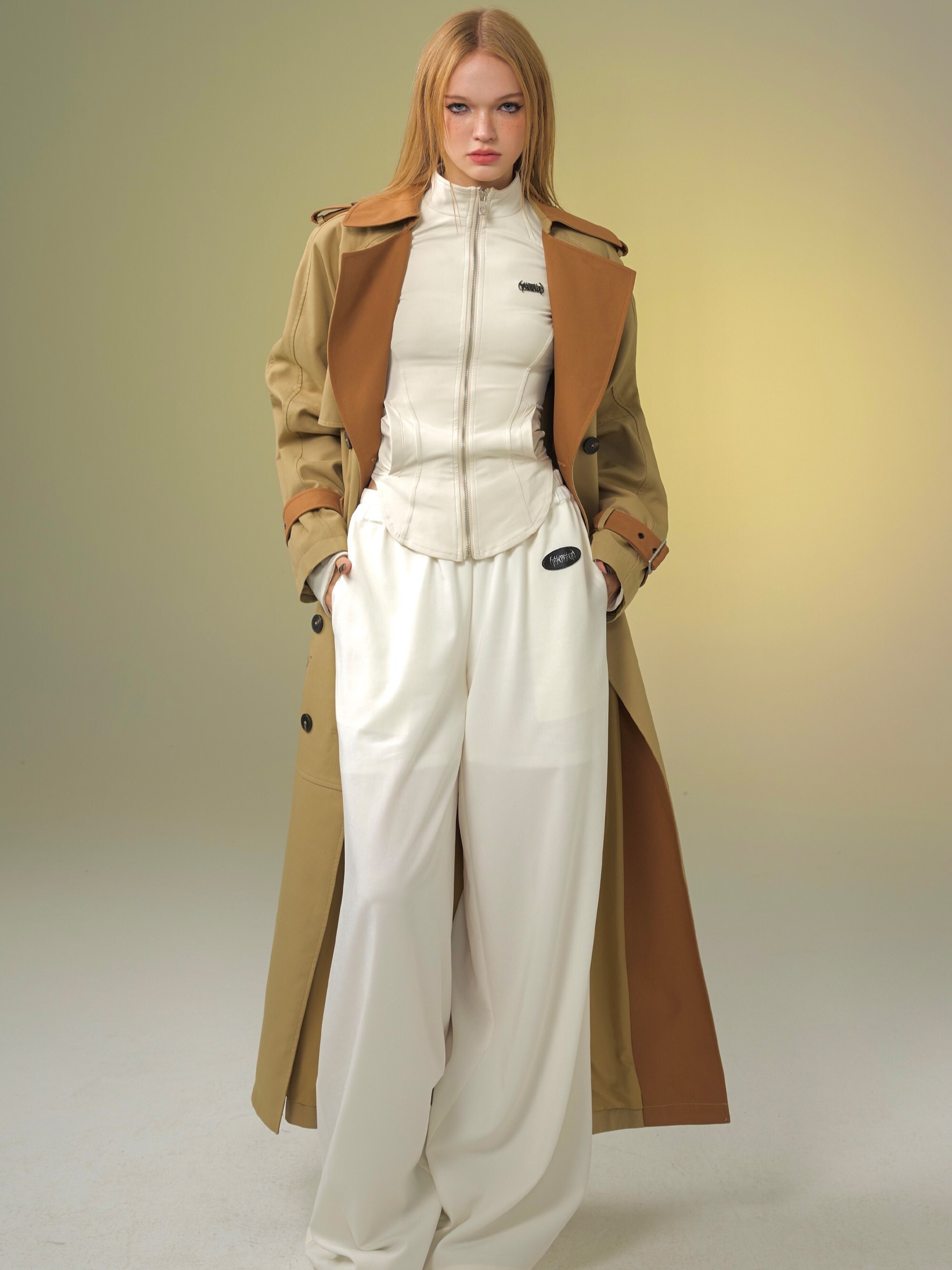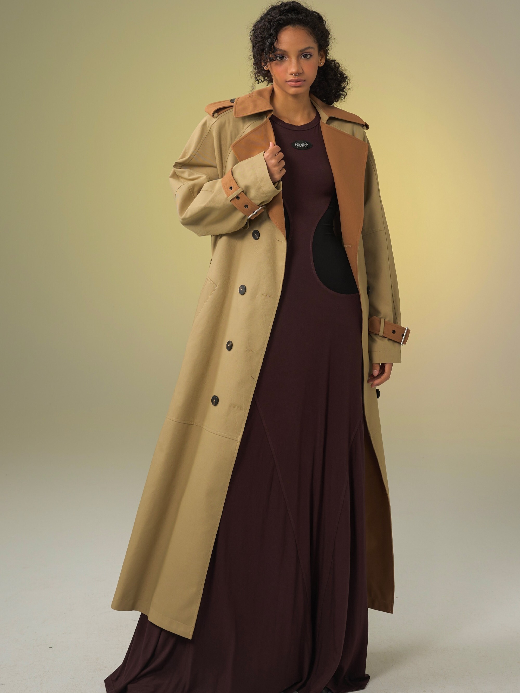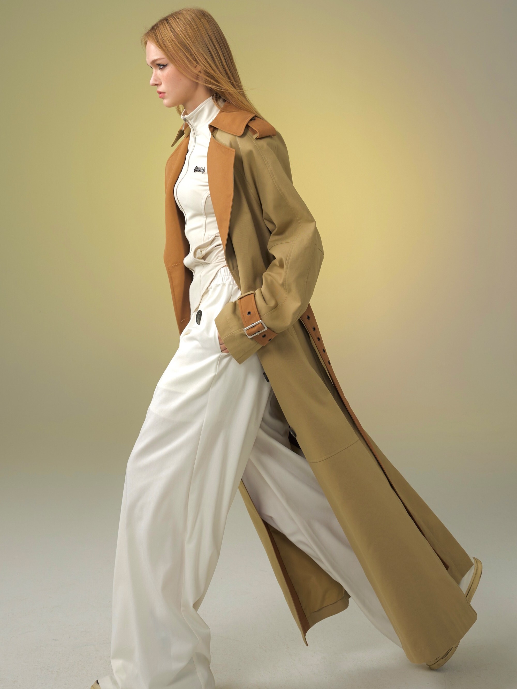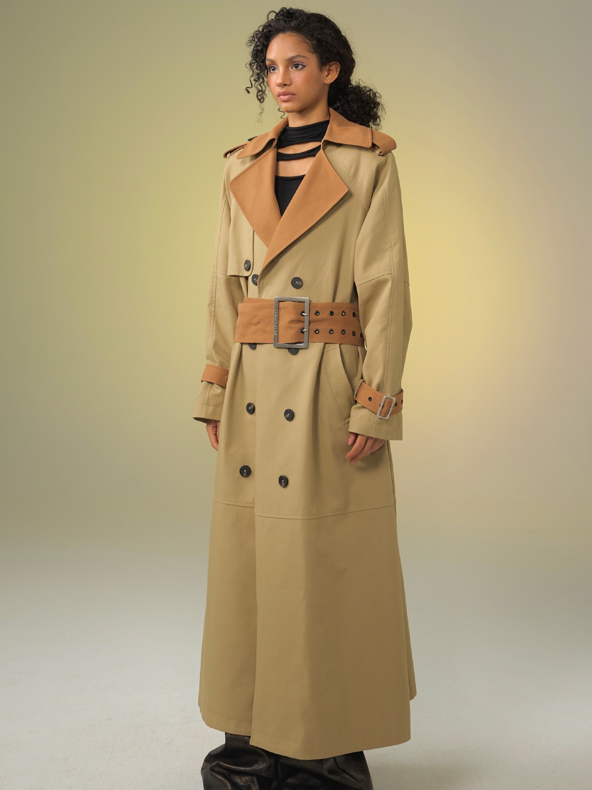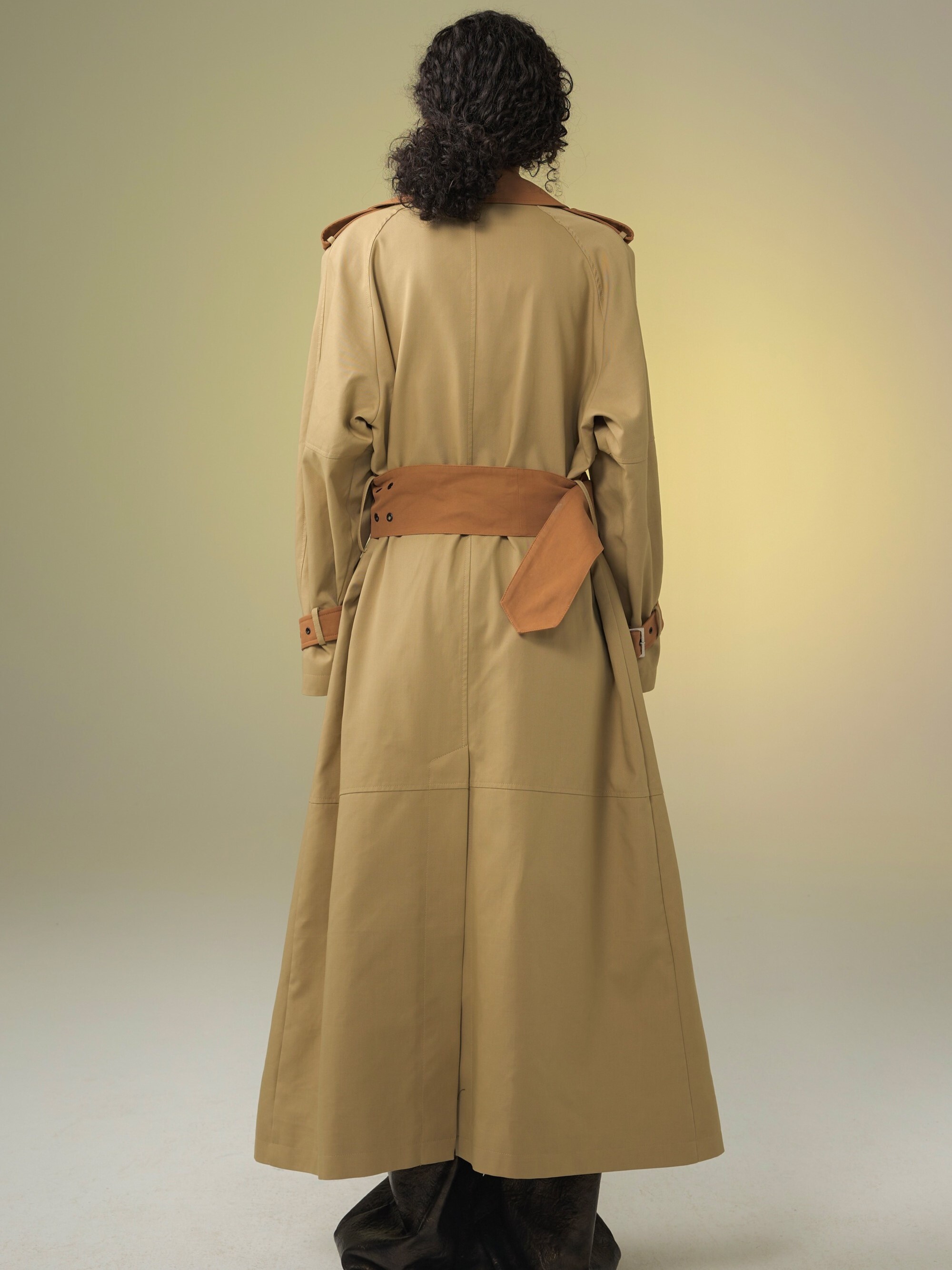 TAROTAROT 腰部綁帶 拼色 長款風衣