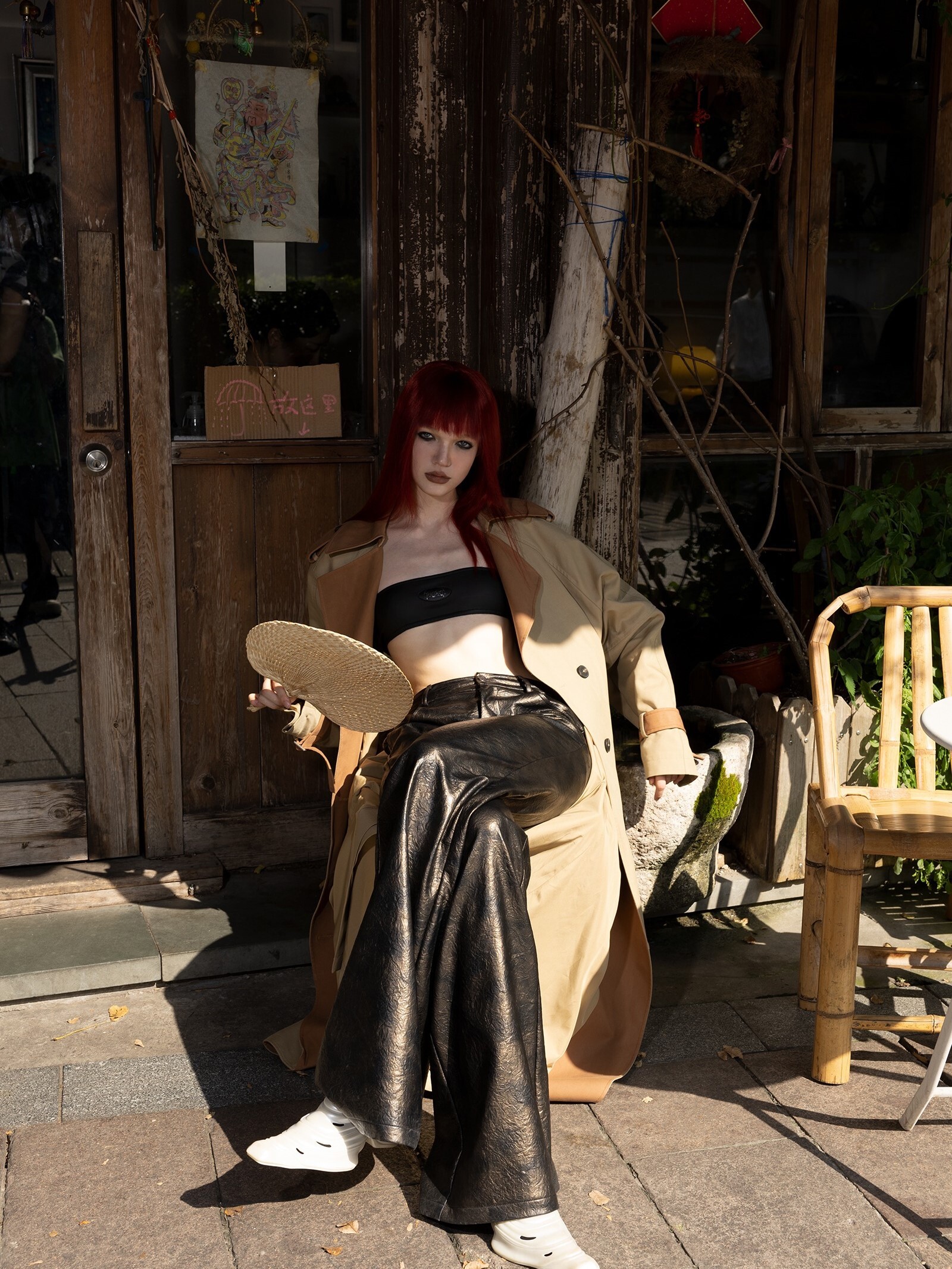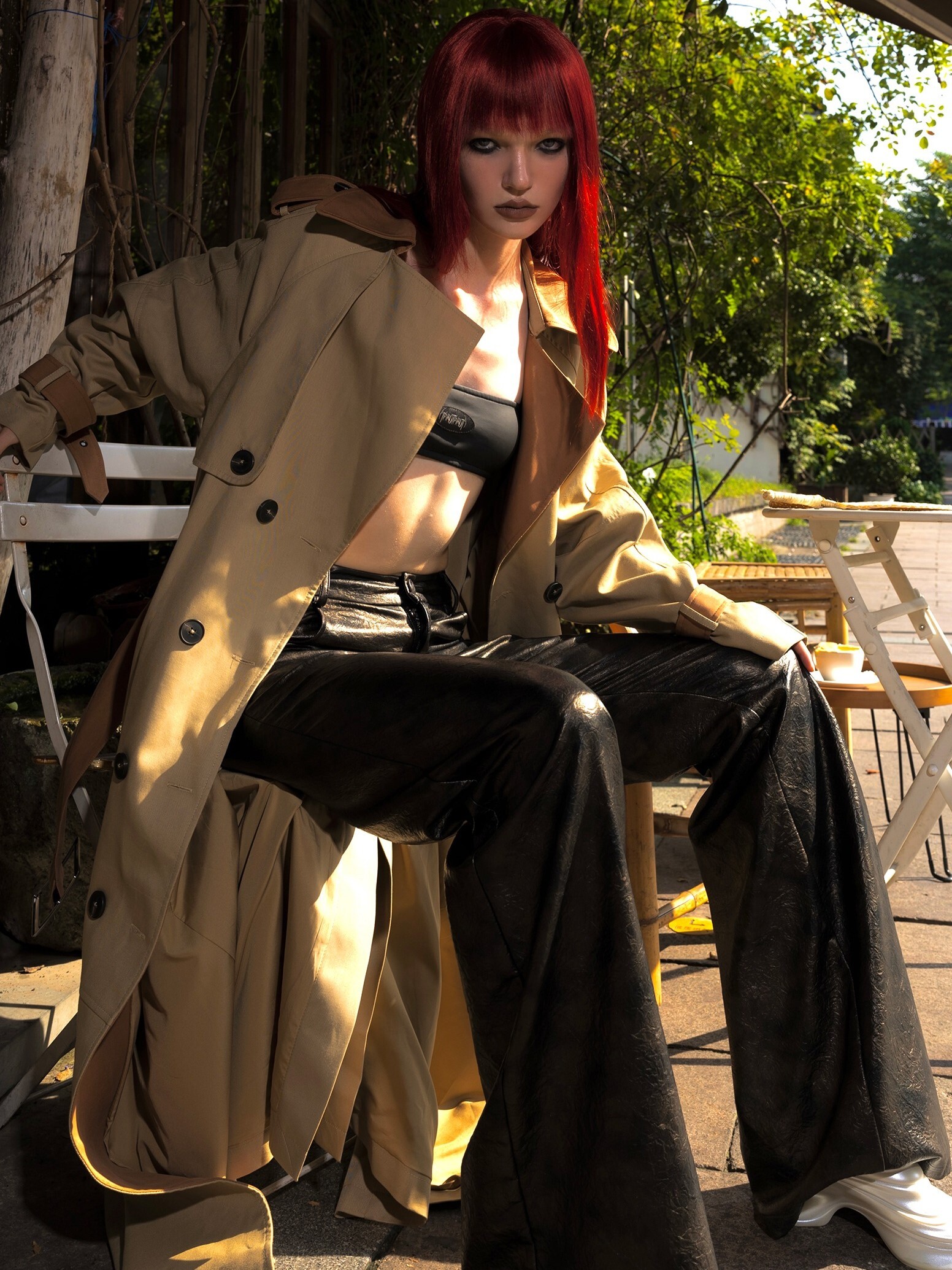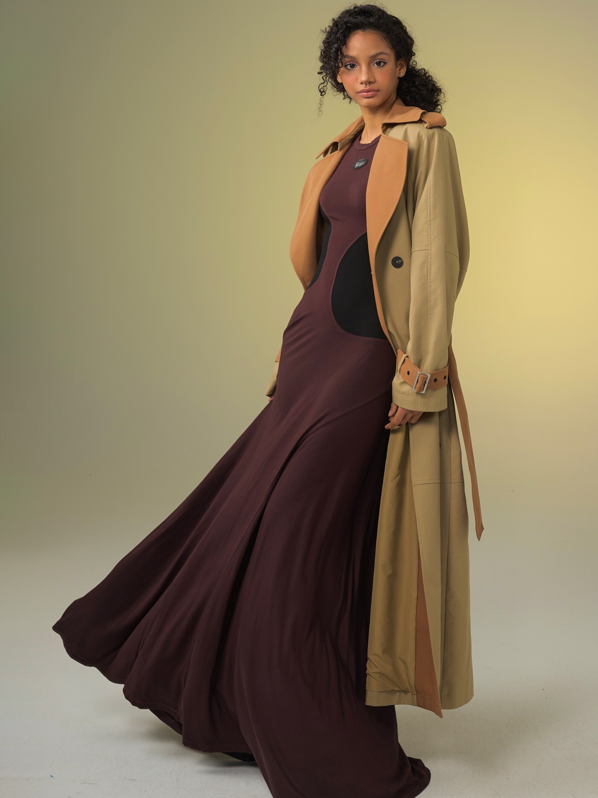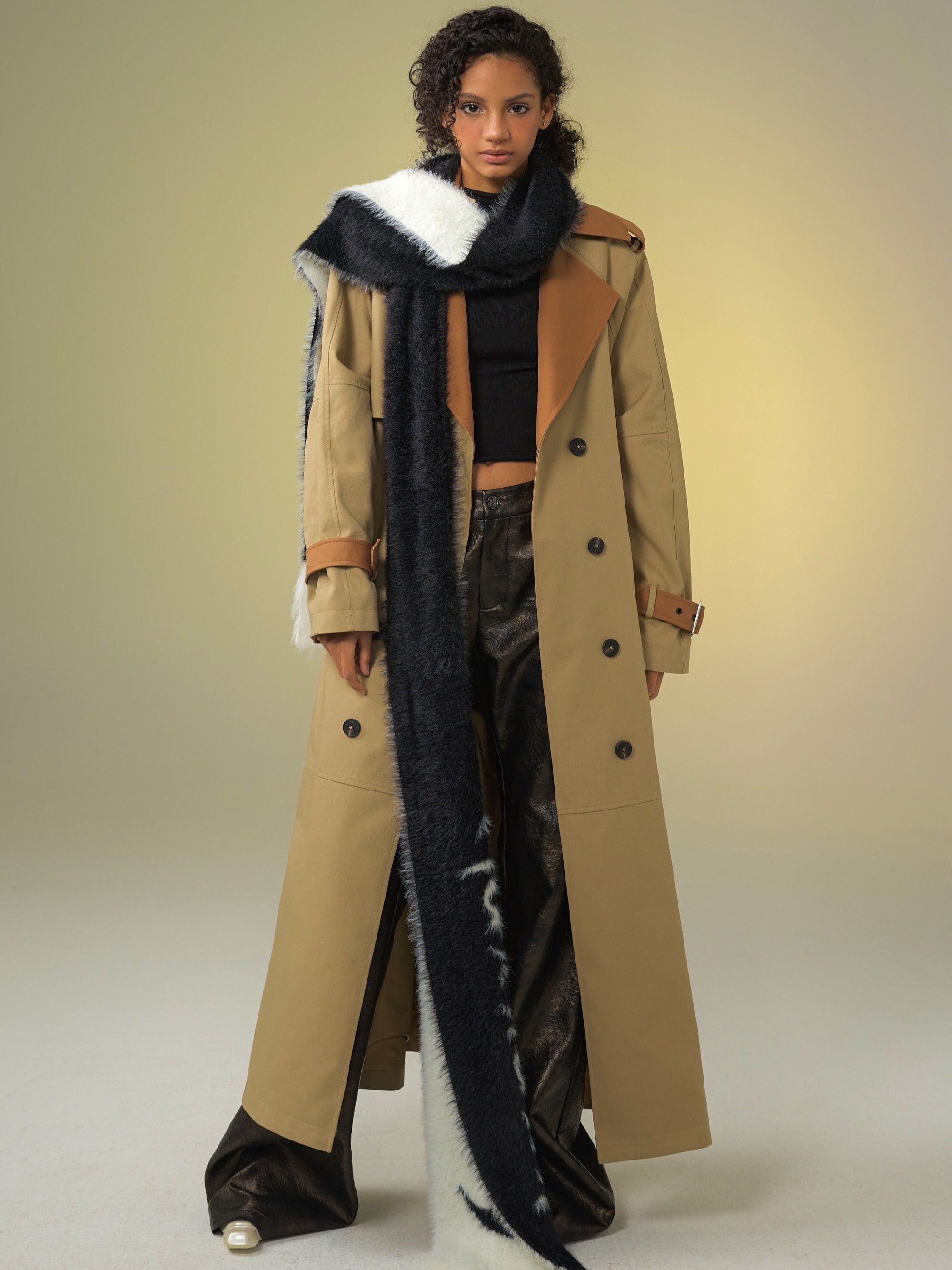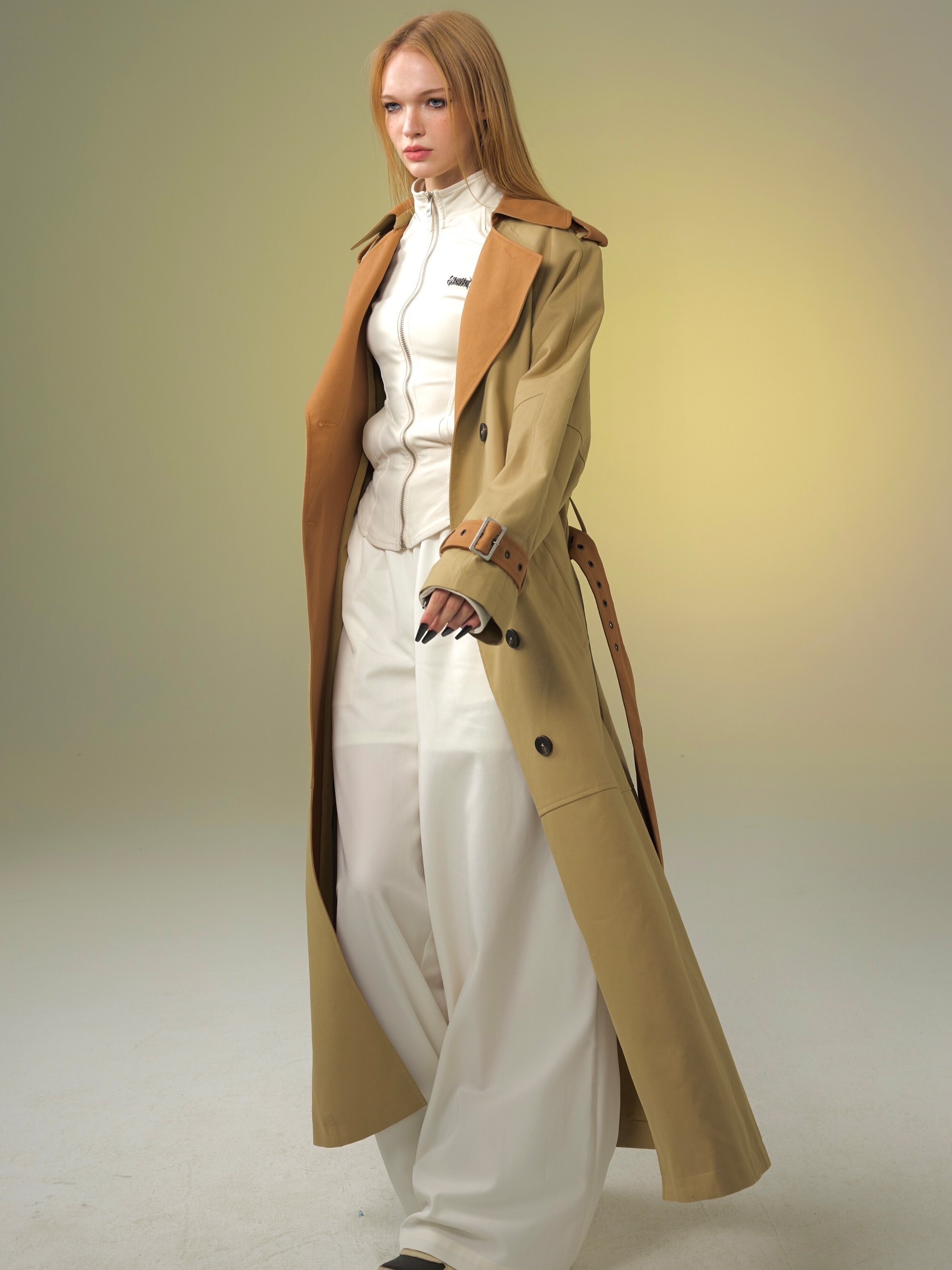 TAROTAROT 腰部綁帶 拼色 長款風衣