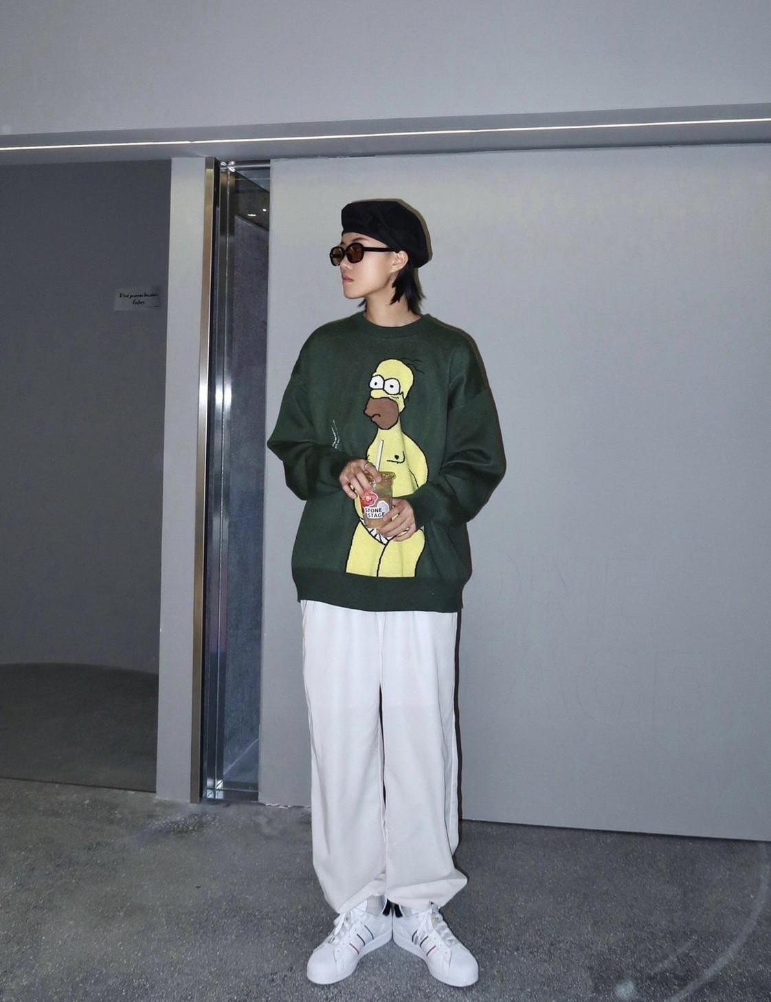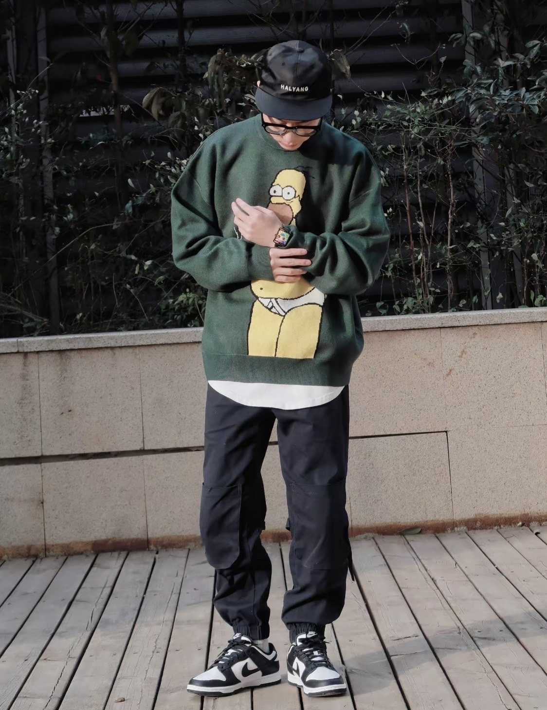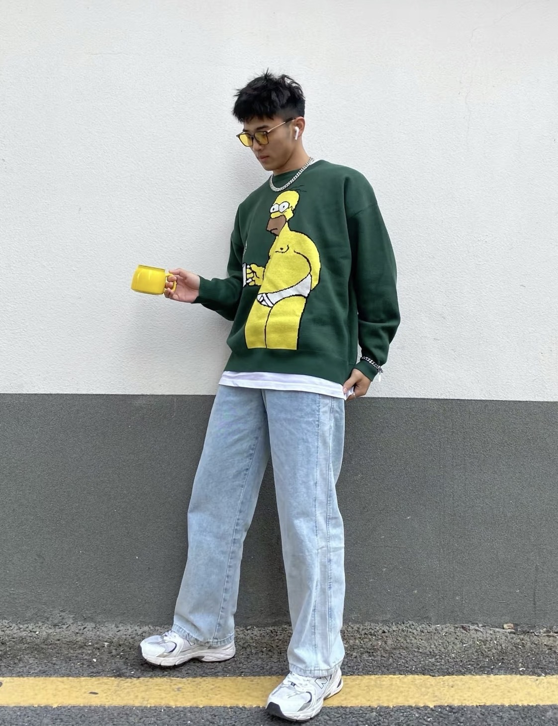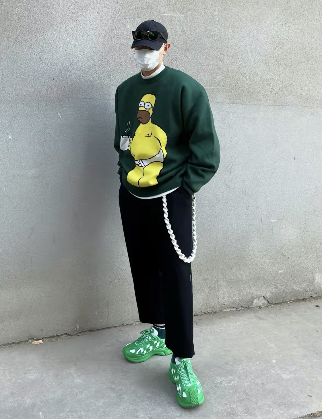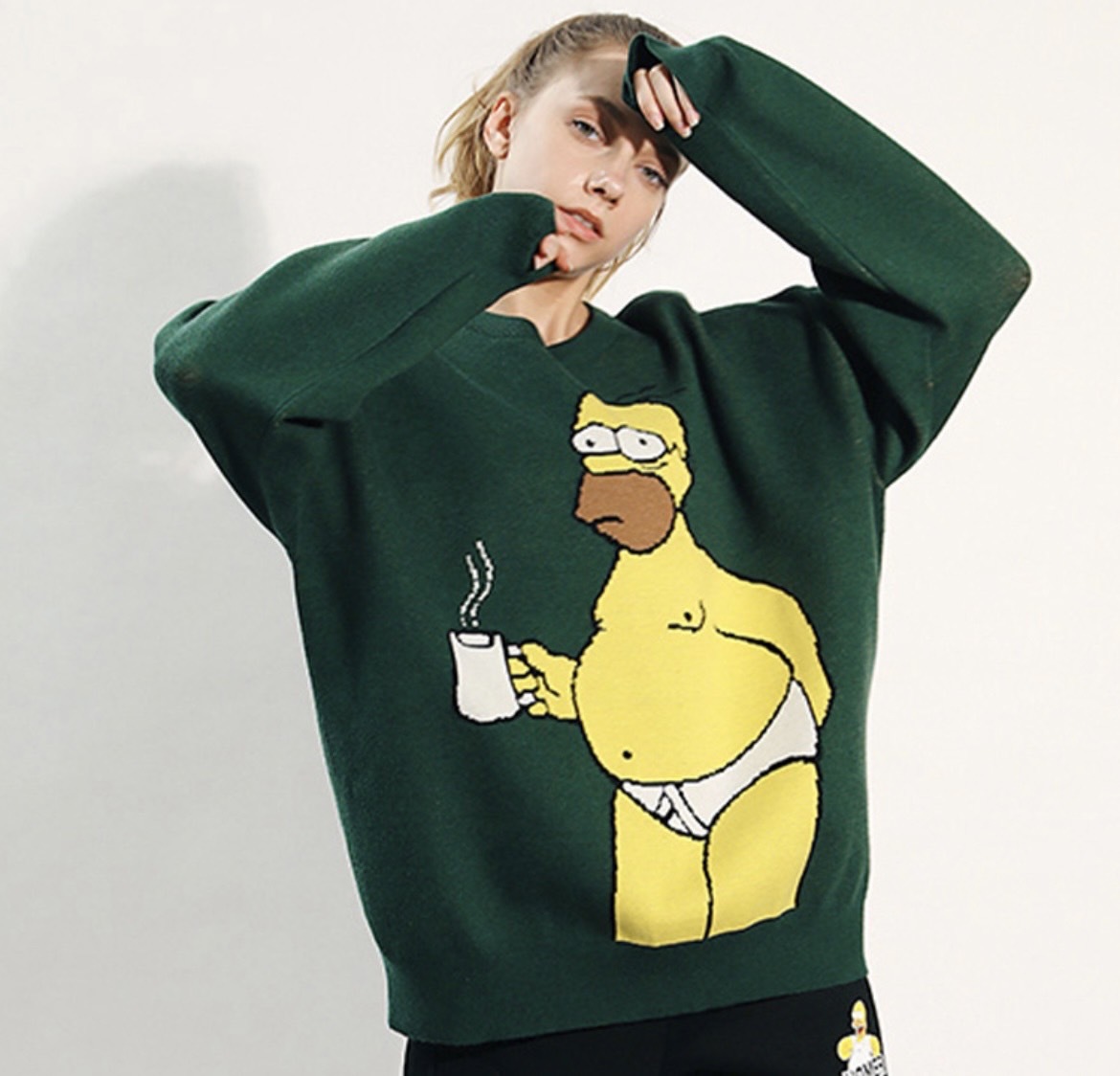 The Simpsons 辛普森一家 圓領 軍綠色 針織毛衣 王嘉爾同款