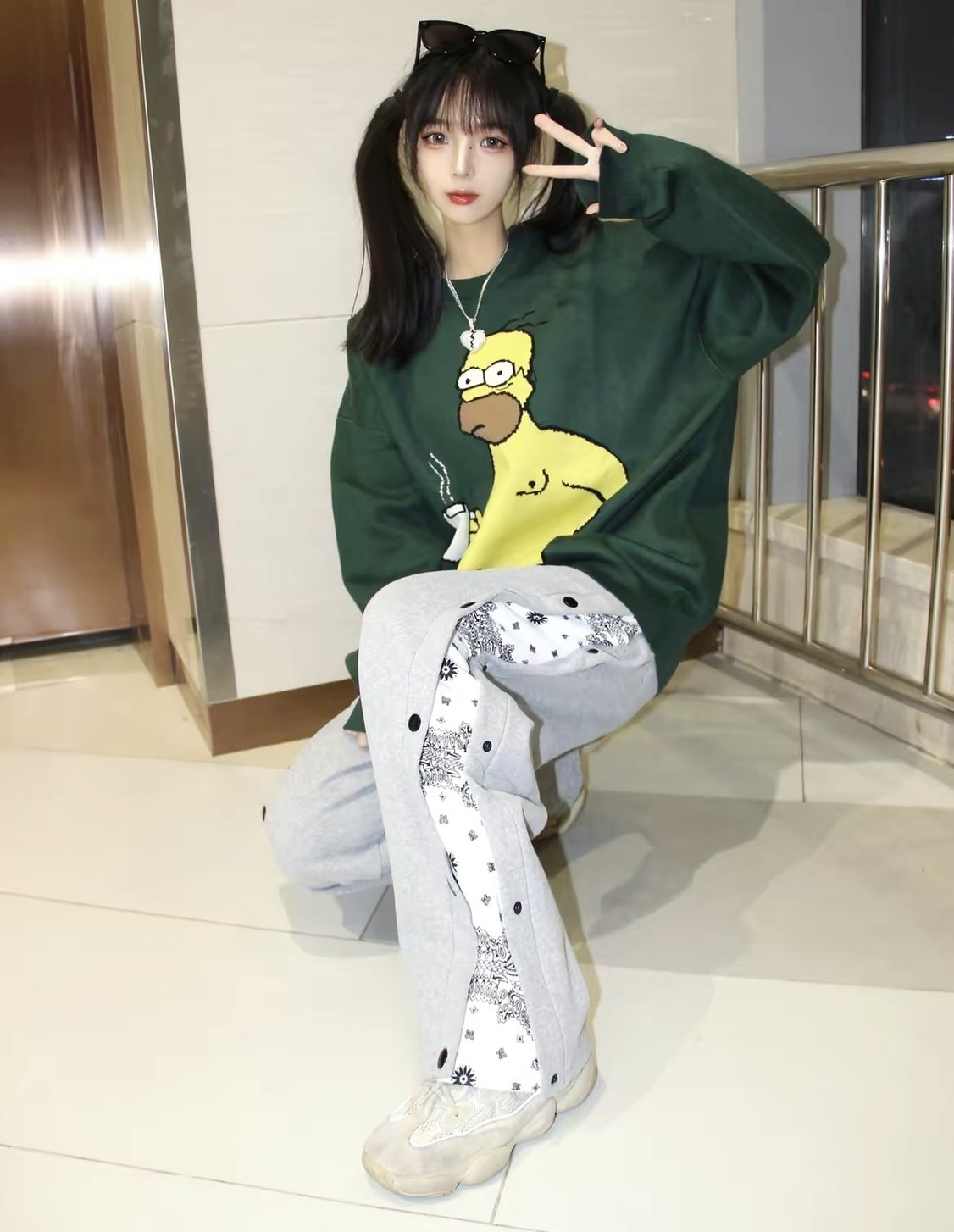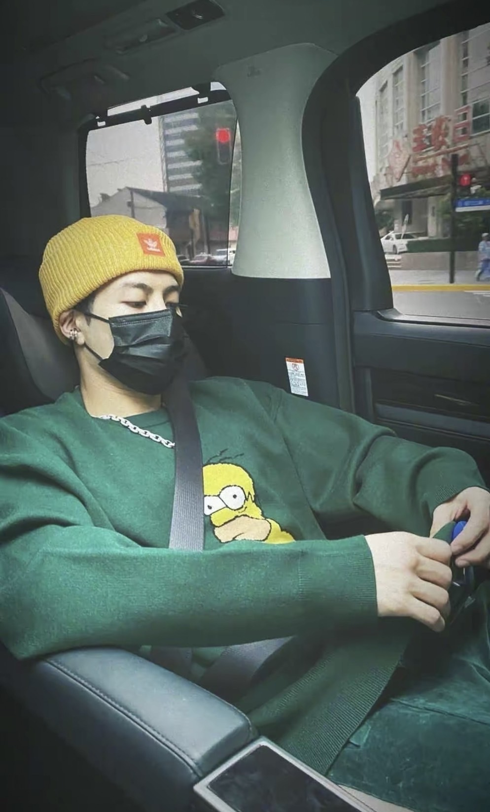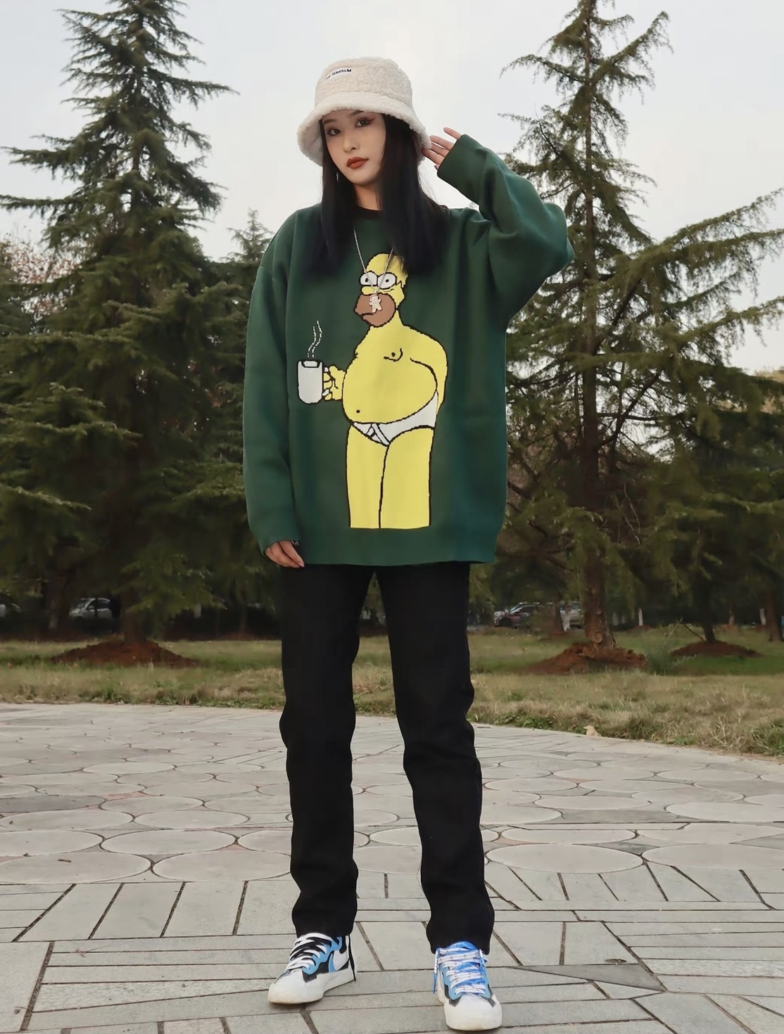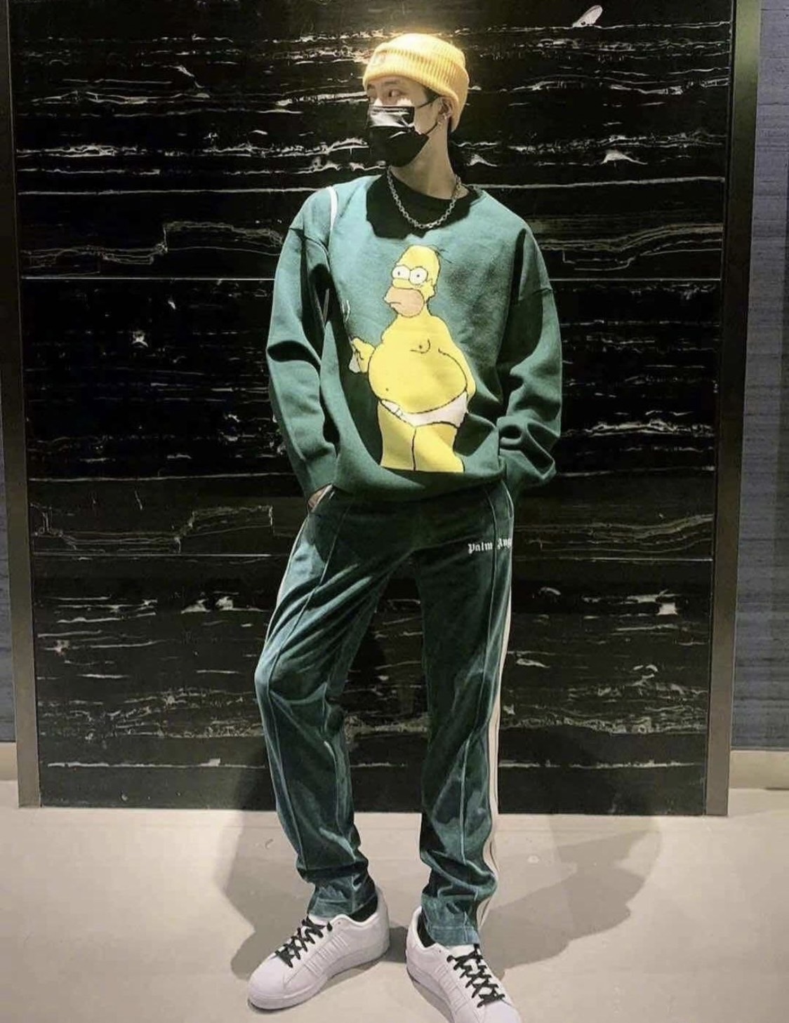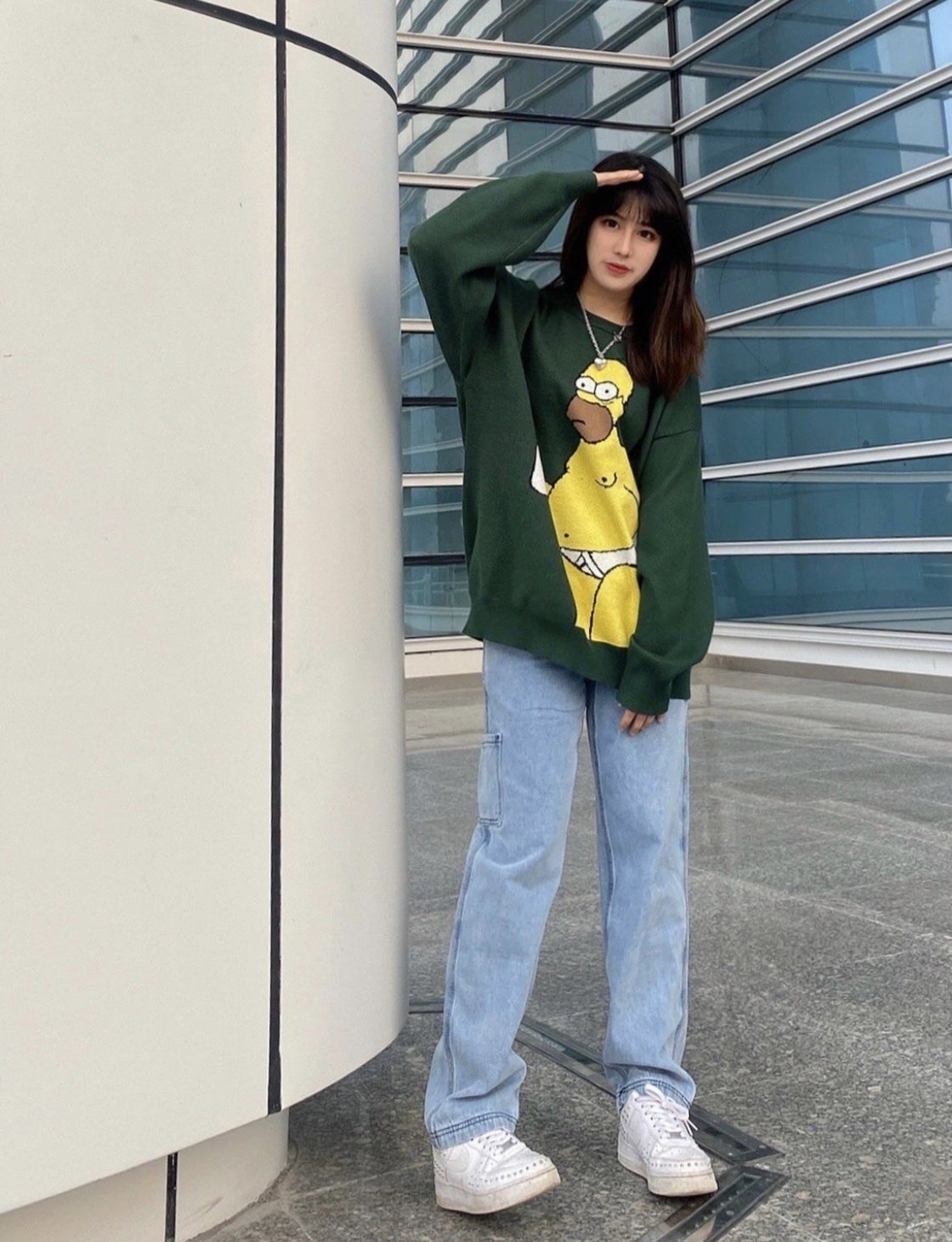 The Simpsons 辛普森一家 圓領 軍綠色 針織毛衣 王嘉爾同款