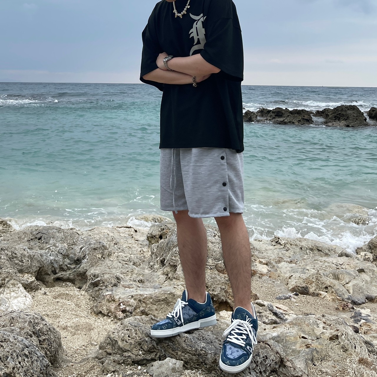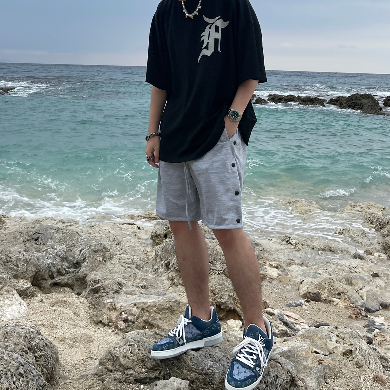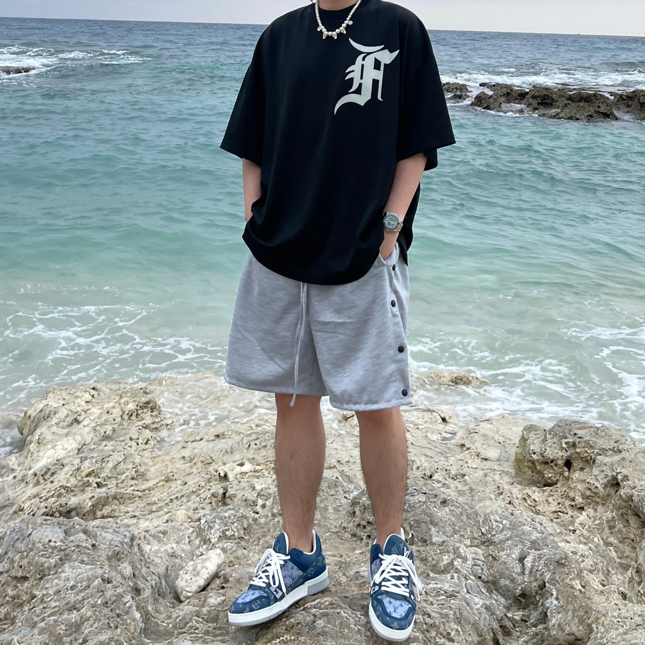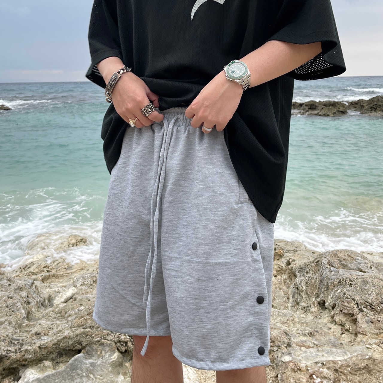 VIBE breasted long drawstring shorts cotton shorts all-match FOG style