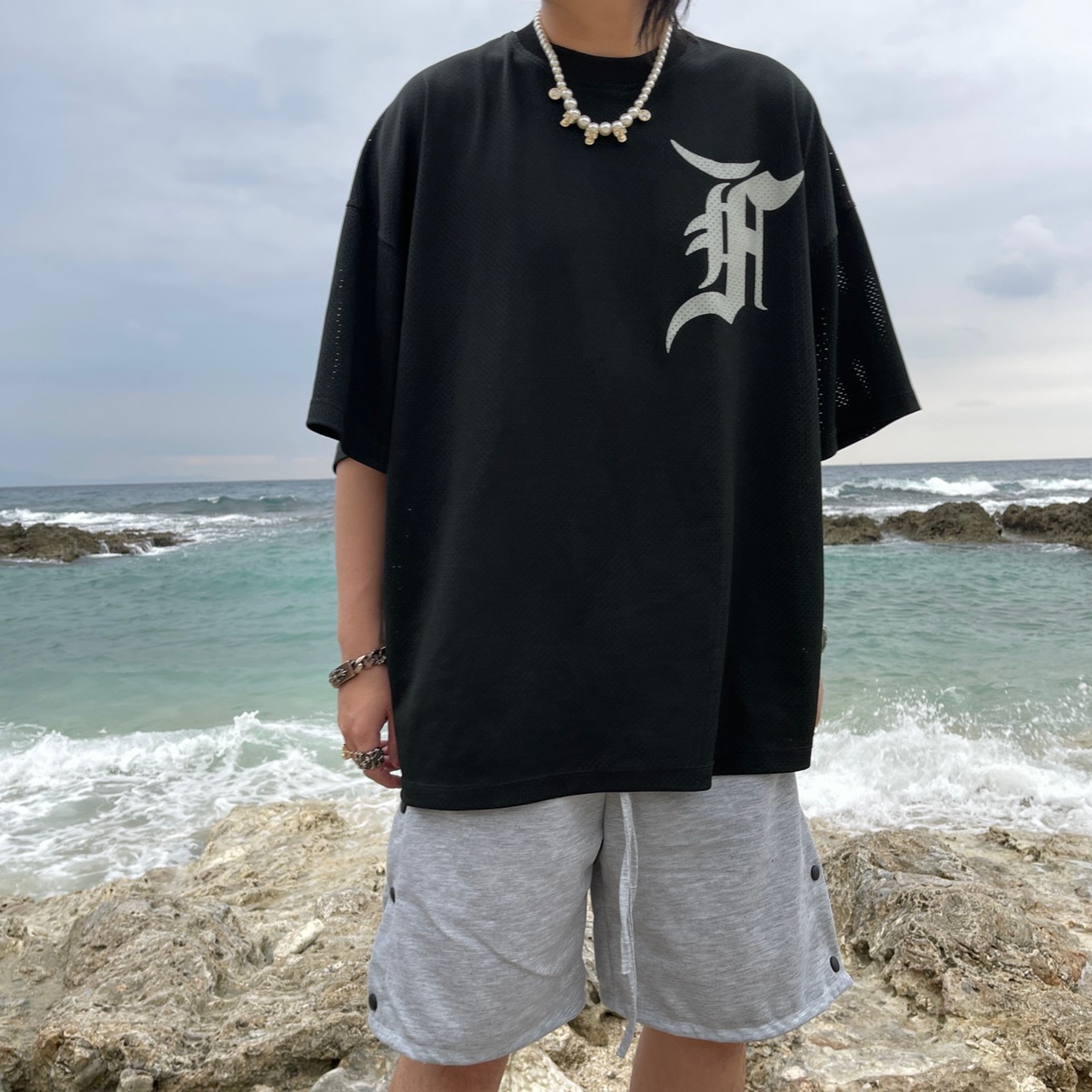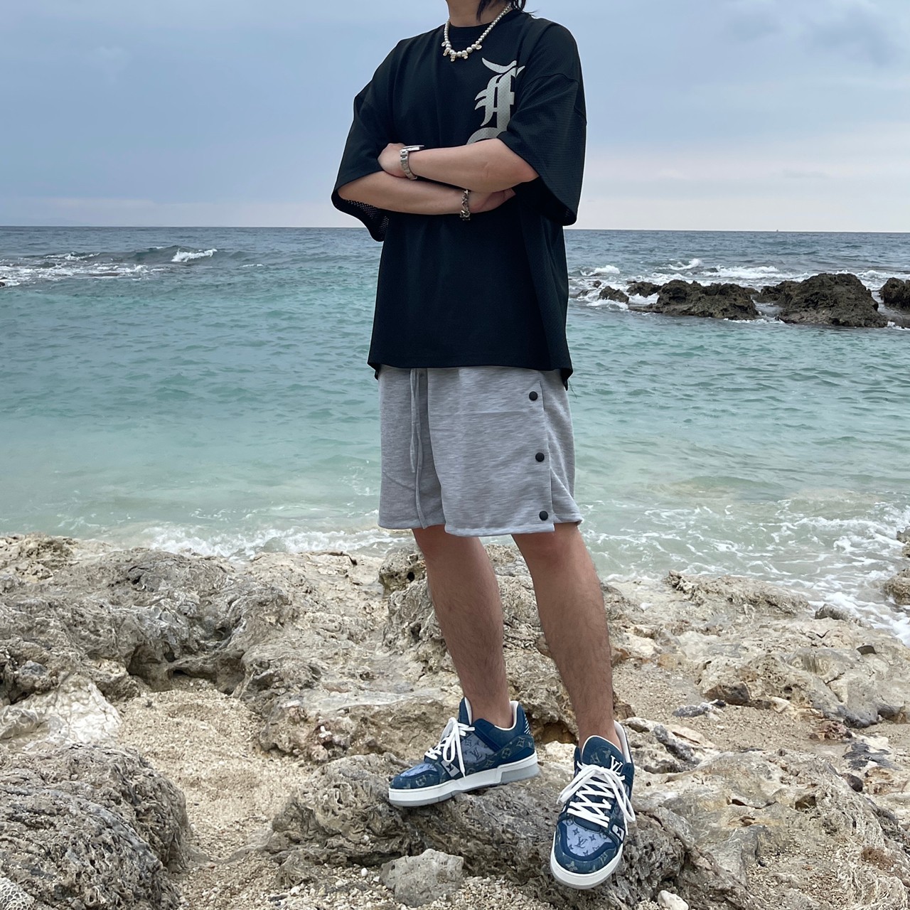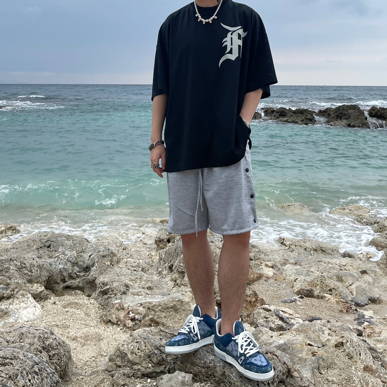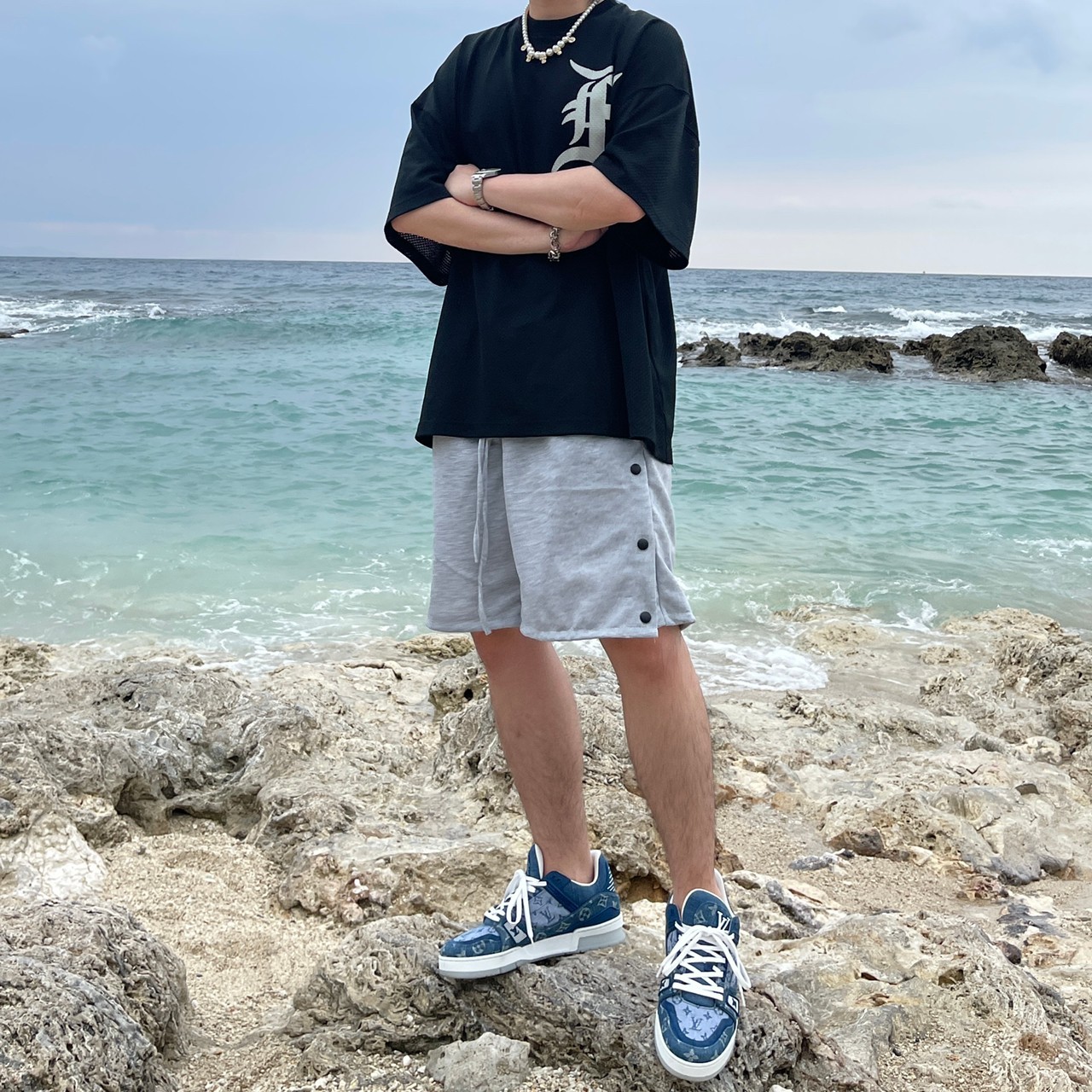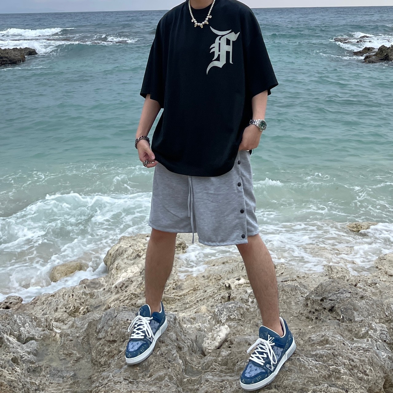 VIBE breasted long drawstring shorts cotton shorts all-match FOG style