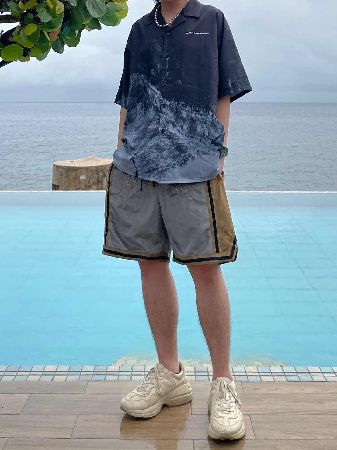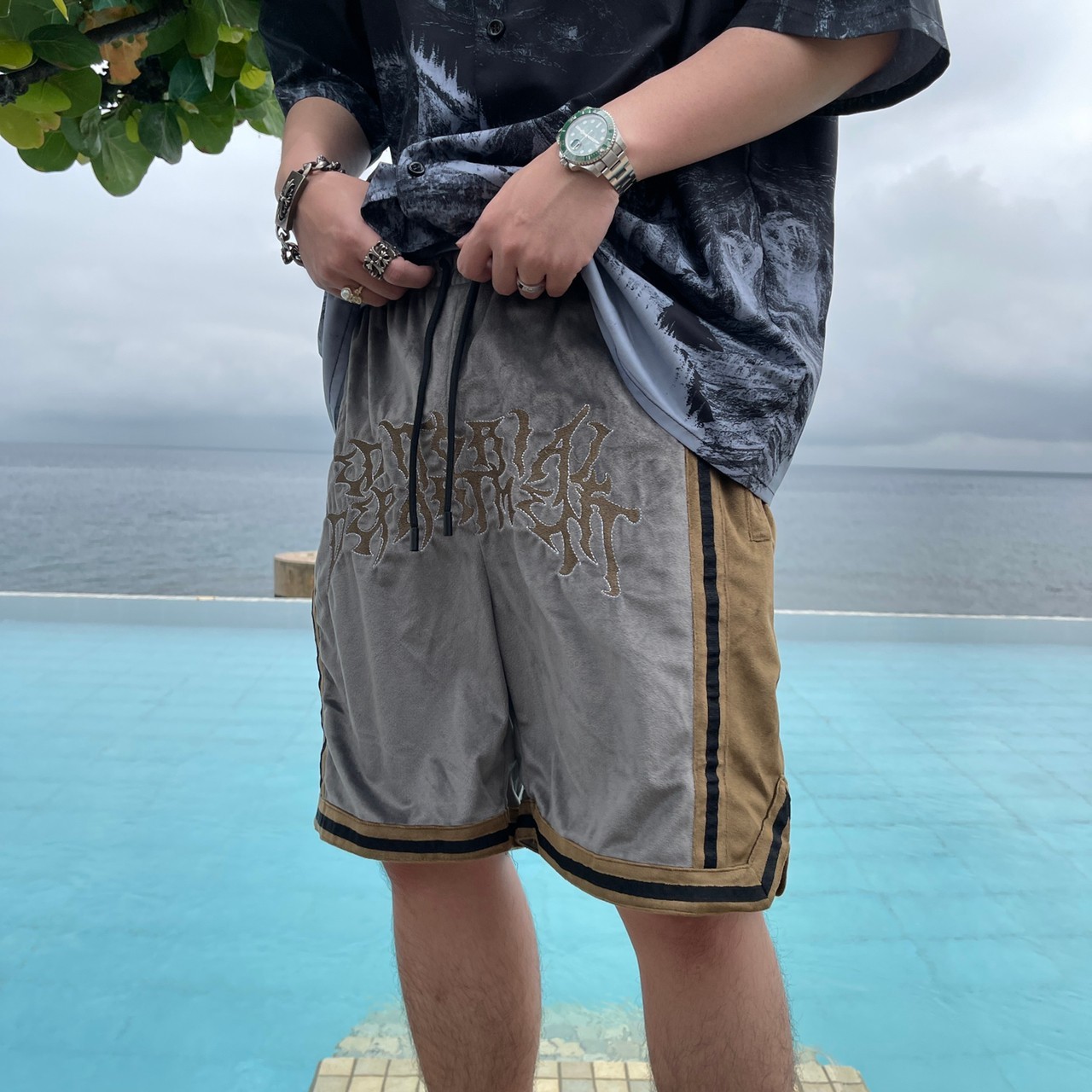 VIBE velvet embroidery stitching side slit shorts FOG style