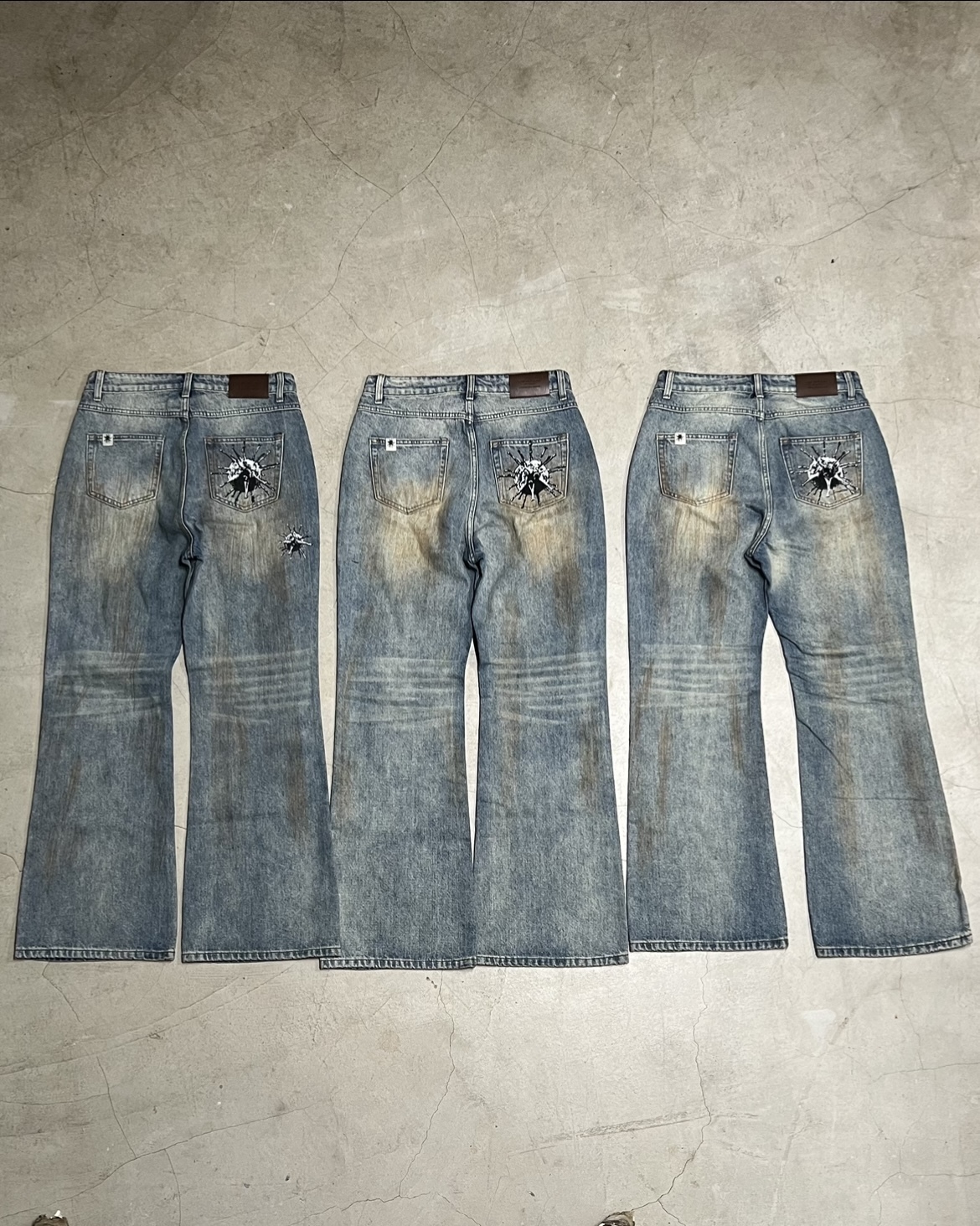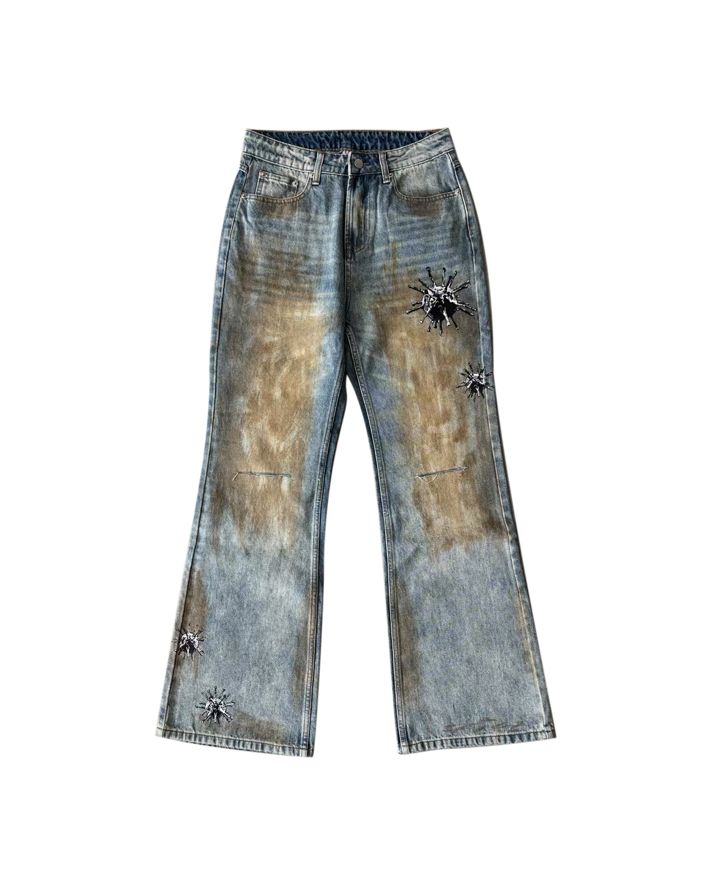 VIRUSWORLD Hand-painted mud-dyed jeans