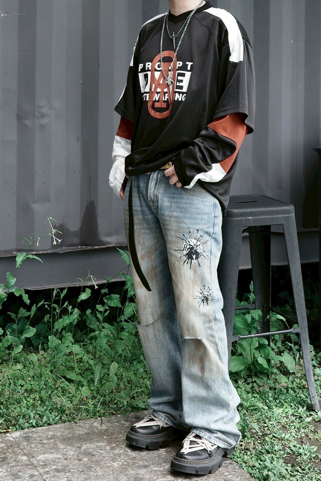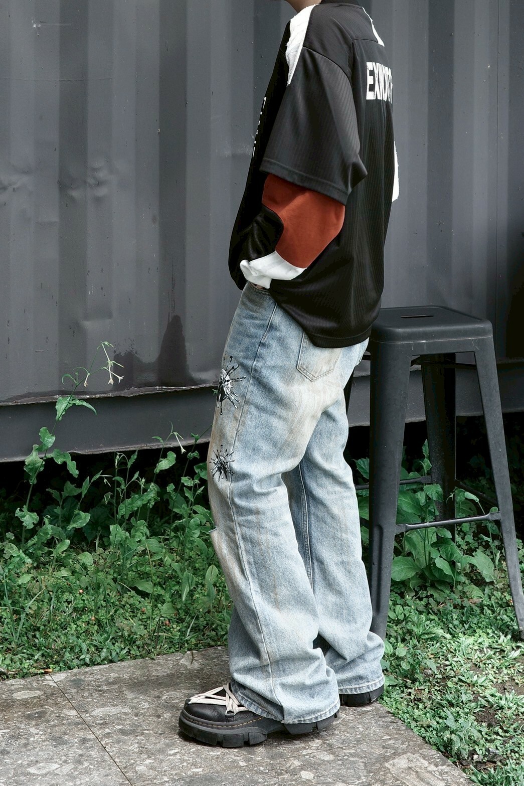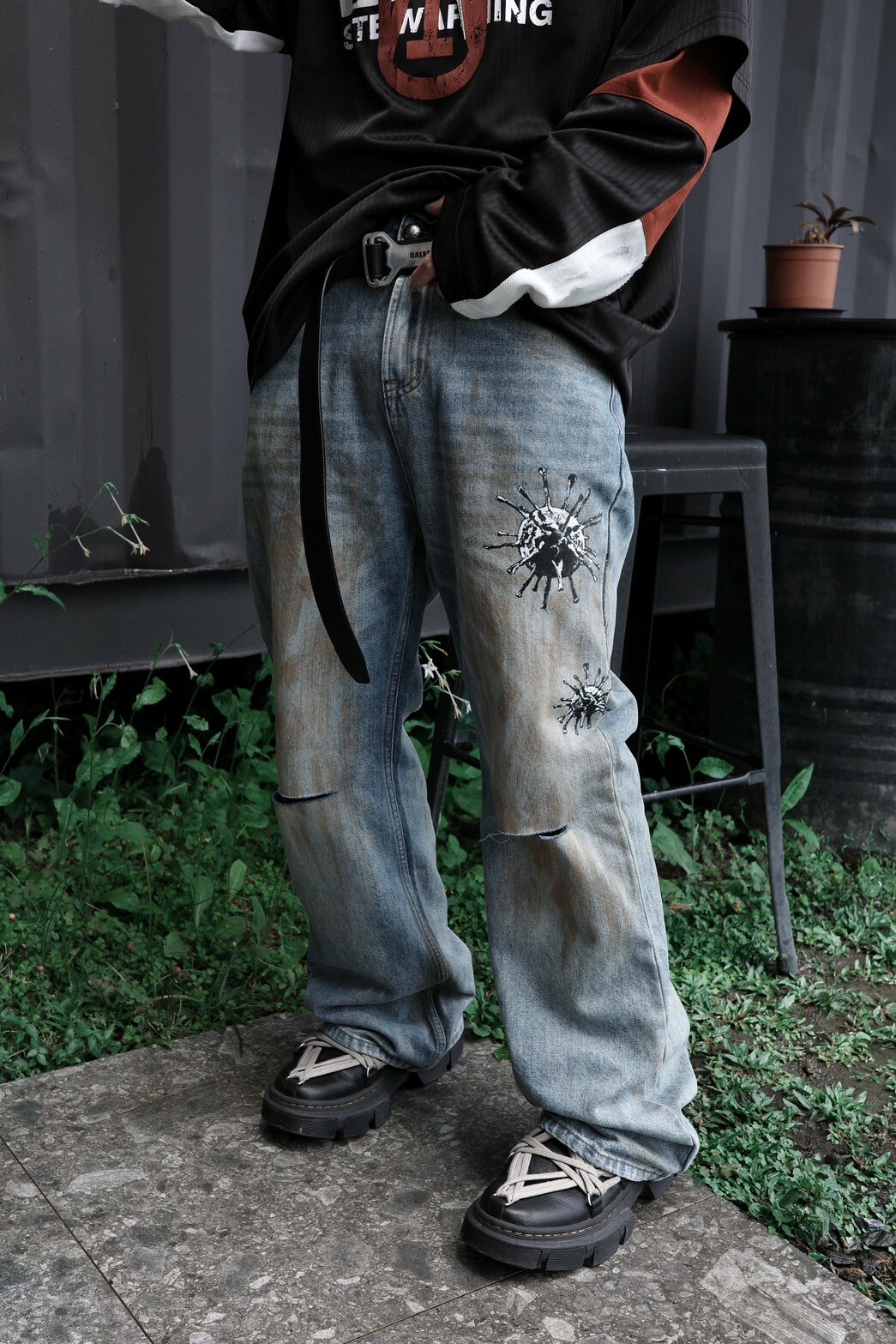 品名:VIRUSWORLD 手繪泥染牛仔褲
