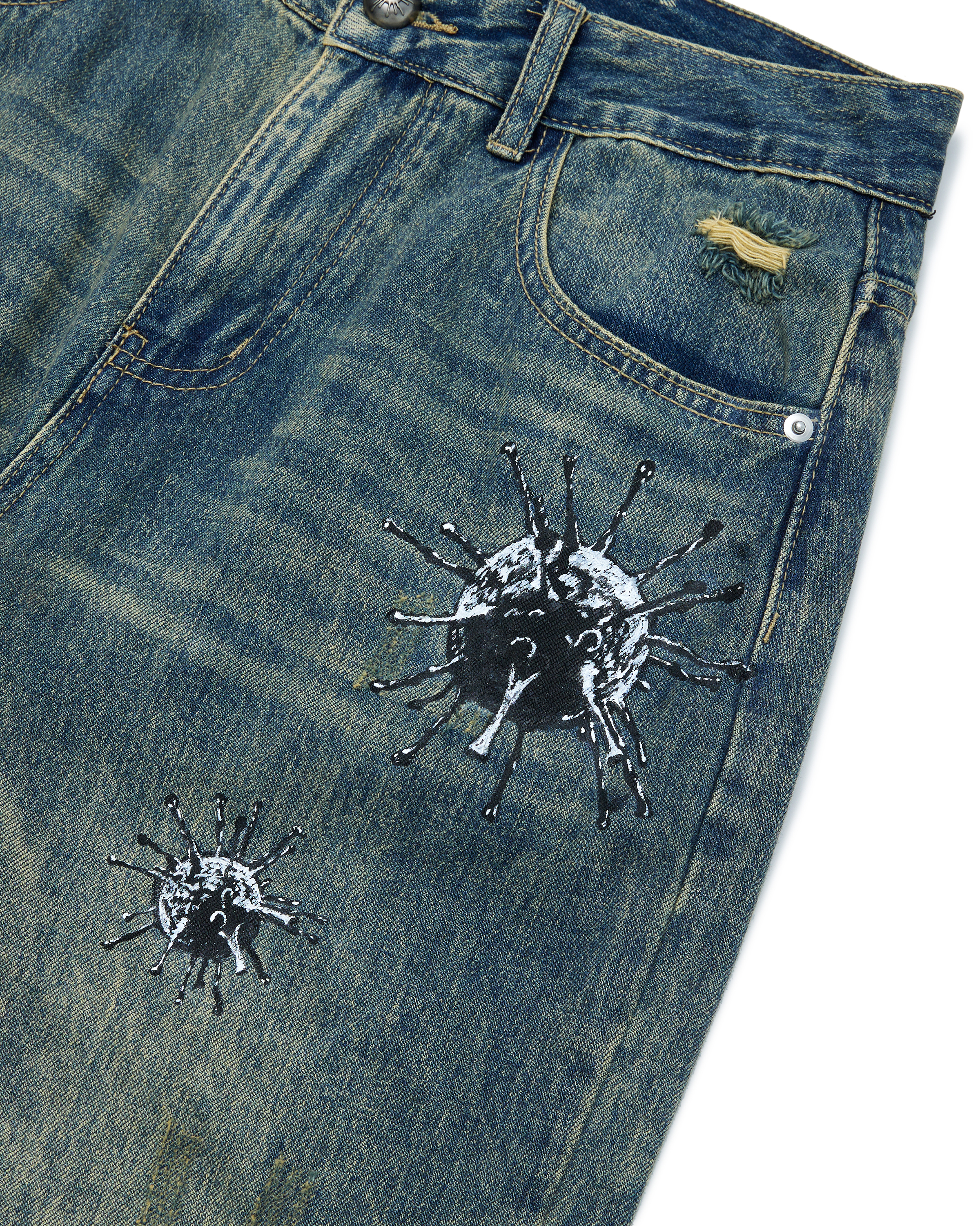 品名:VIRUSWORLD 手繪丹寧褲