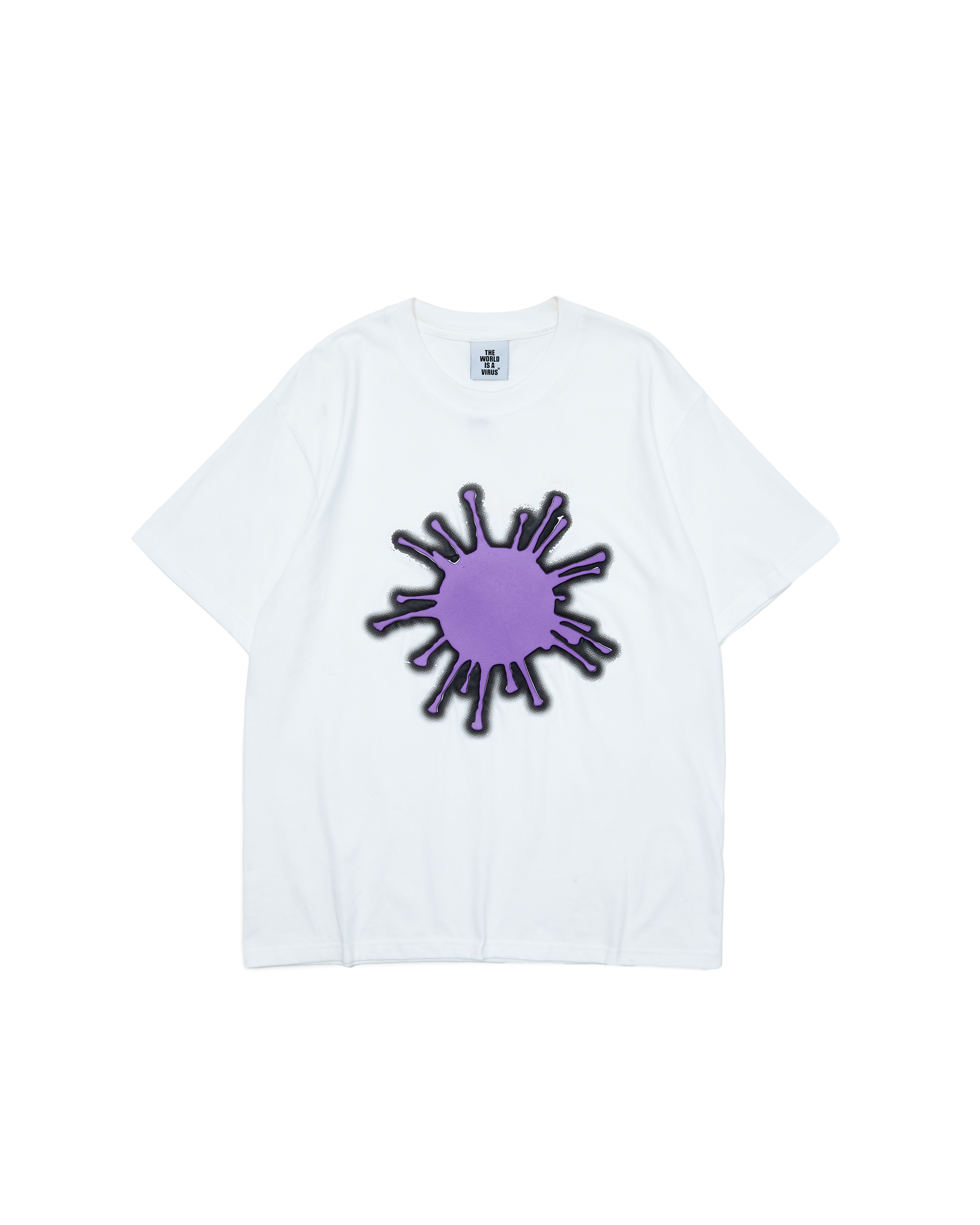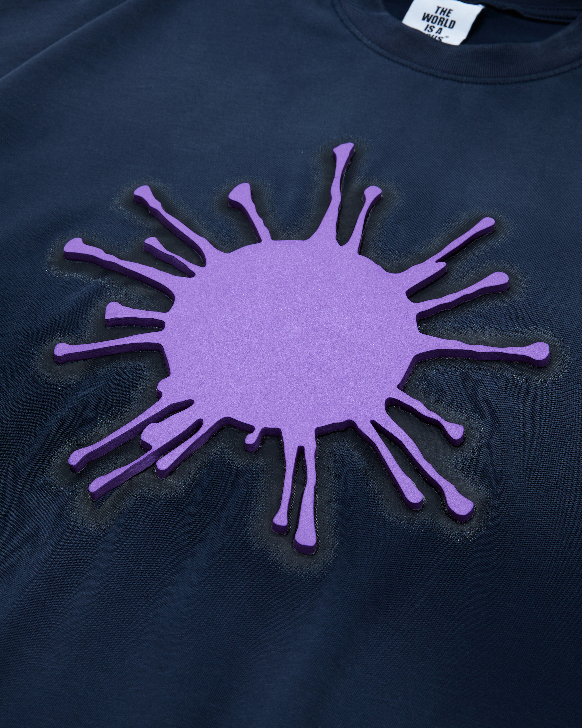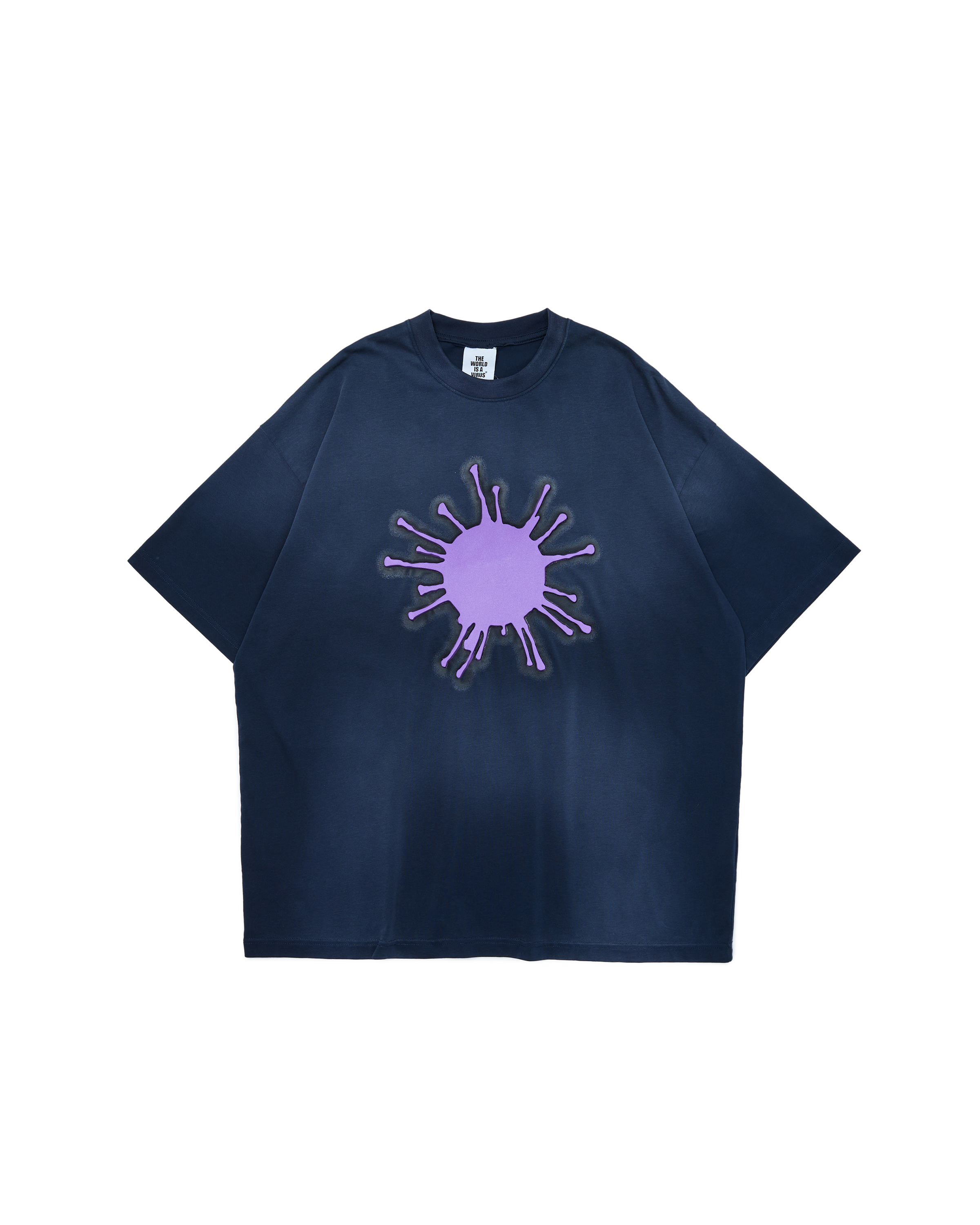 以病毒初始爆發的「源點」為靈感,打造出具有強烈象徵性的中心放射圖騰。特殊發泡工藝讓圖案不僅視覺立體,更帶來強烈的觸感存在感,彷彿正在擴散的能量體,為你的穿搭注入破格風格。