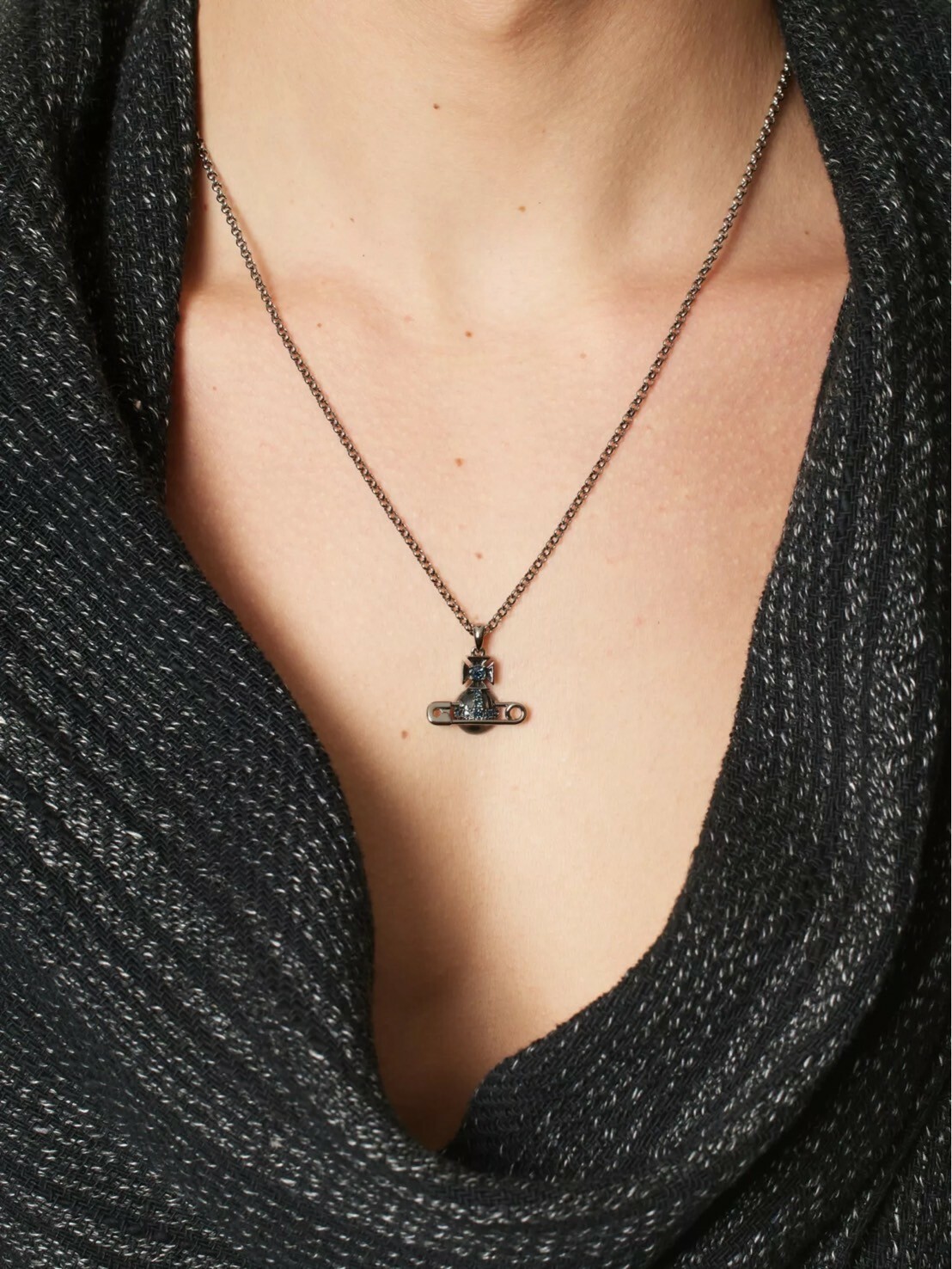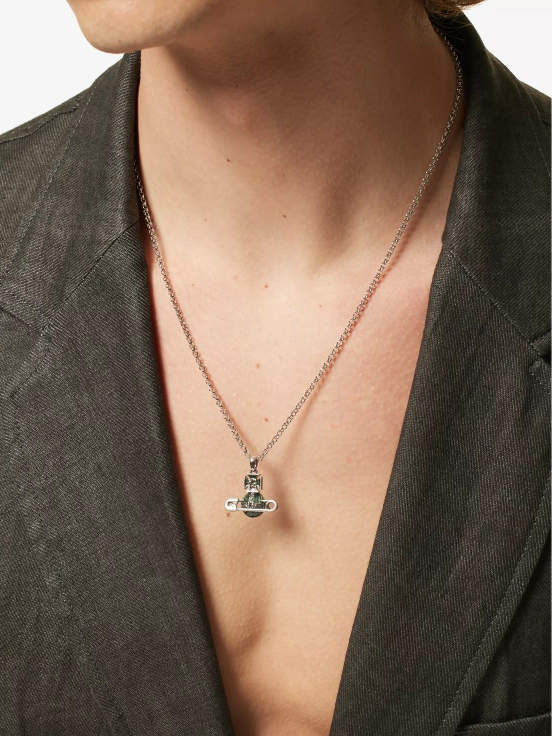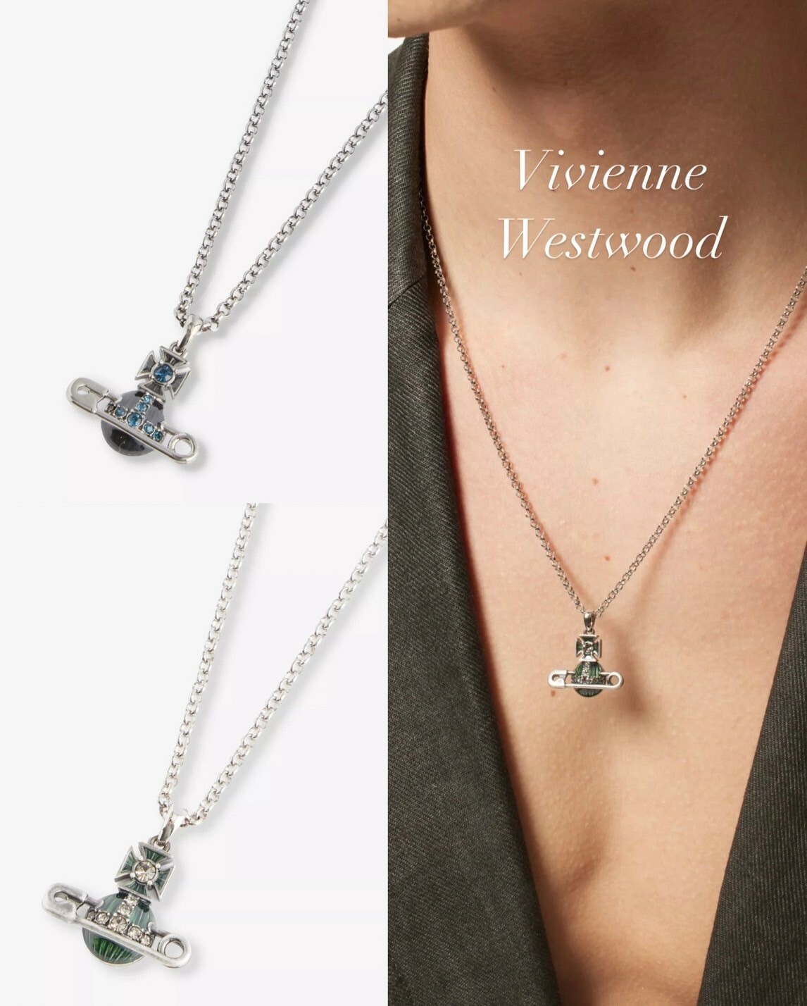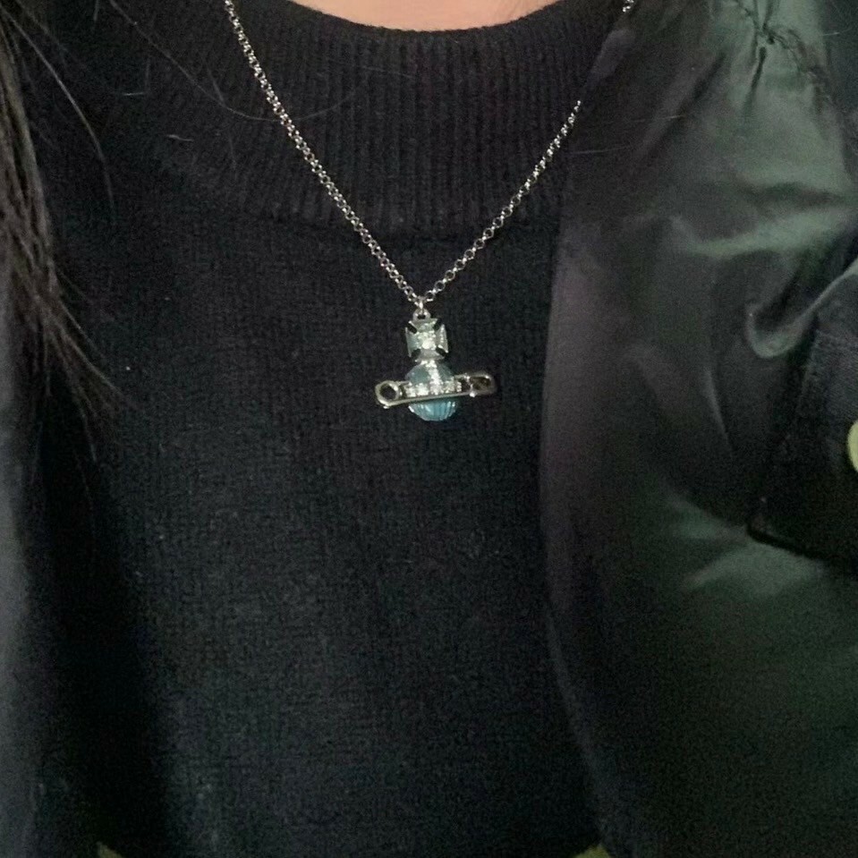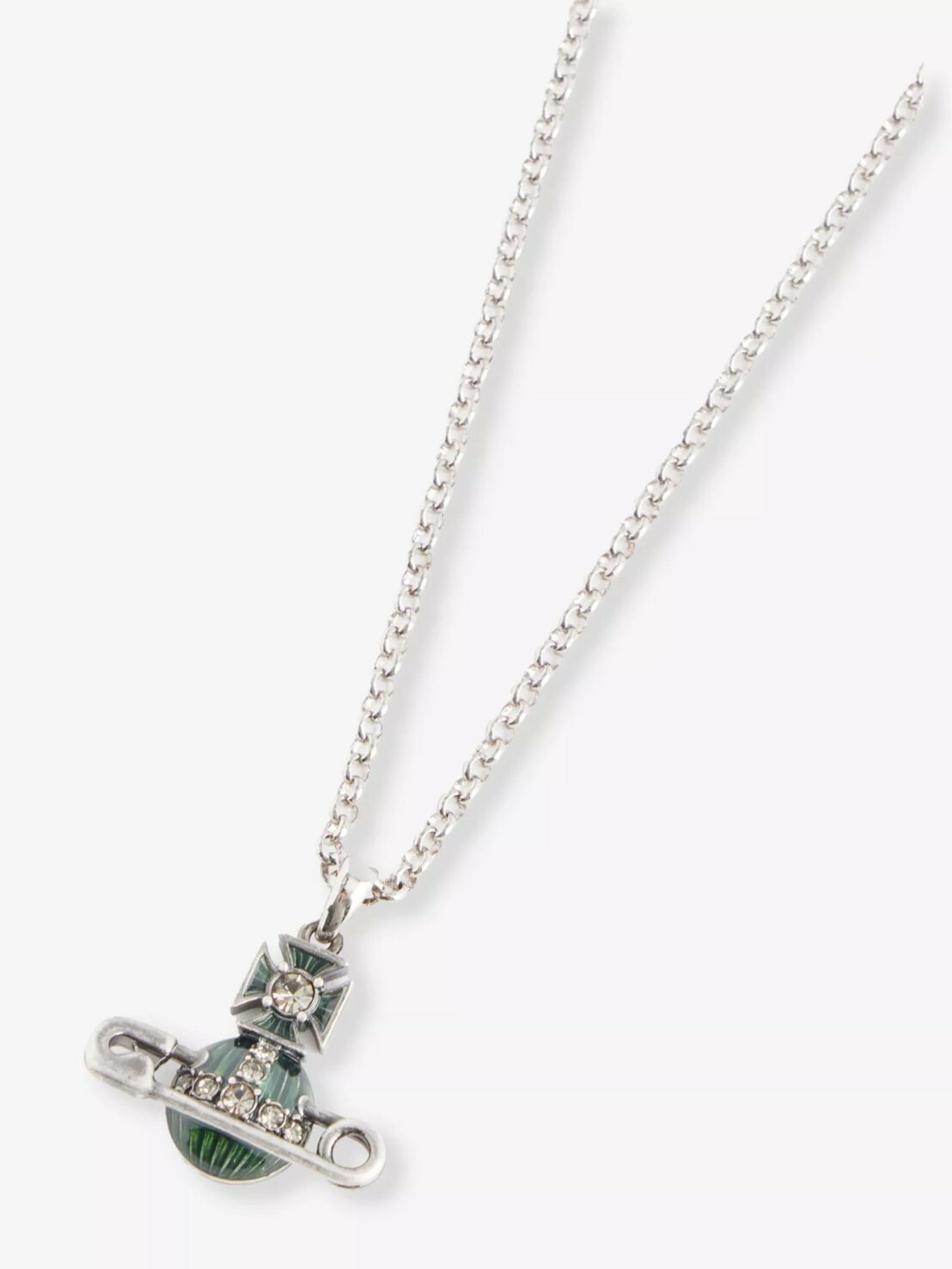 Vivienne Westwood Diamond Saturn Logo Enamel Brooch Necklace Queen Mother West KITTY NECKLACE