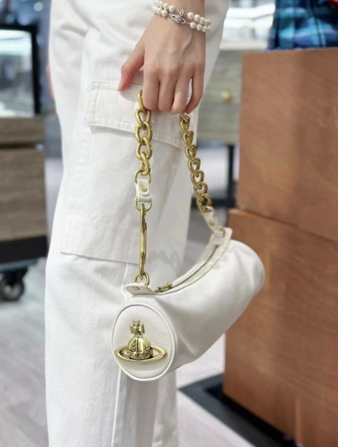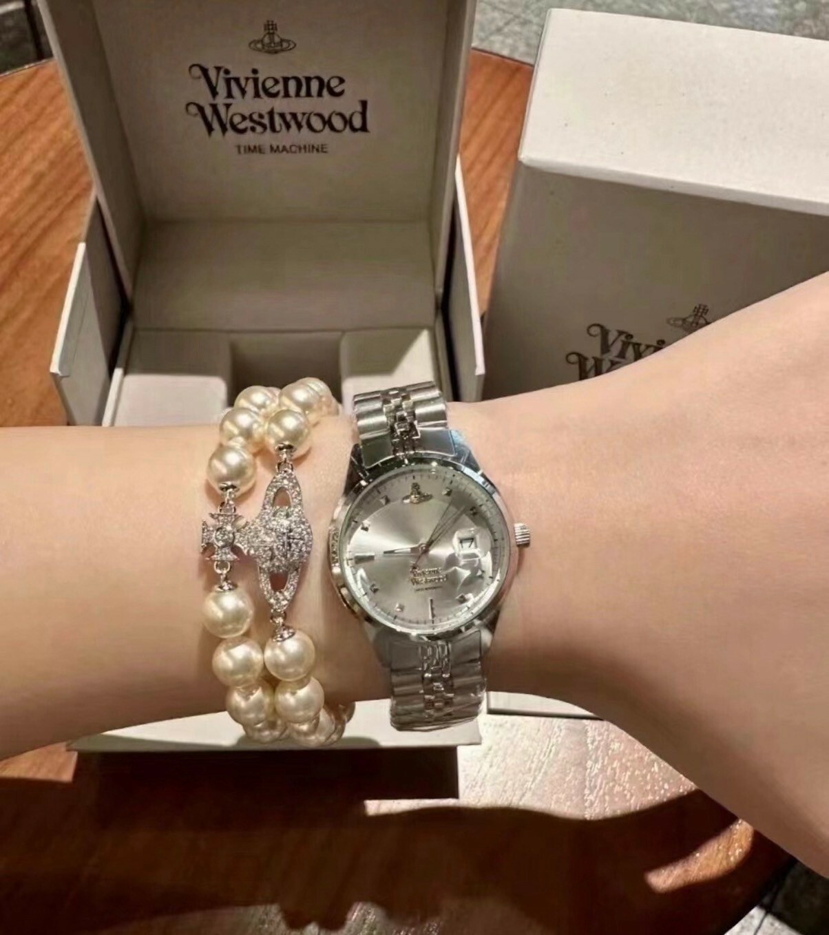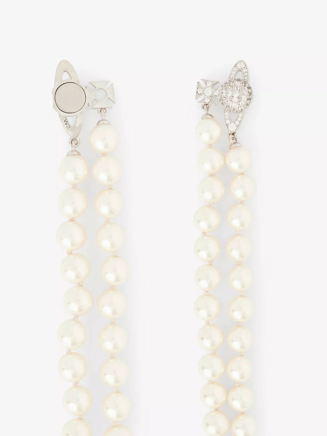 Vivienne Westwood Double Pearl Classic Saturn Logo Diamond Bracelet Queen Mother West