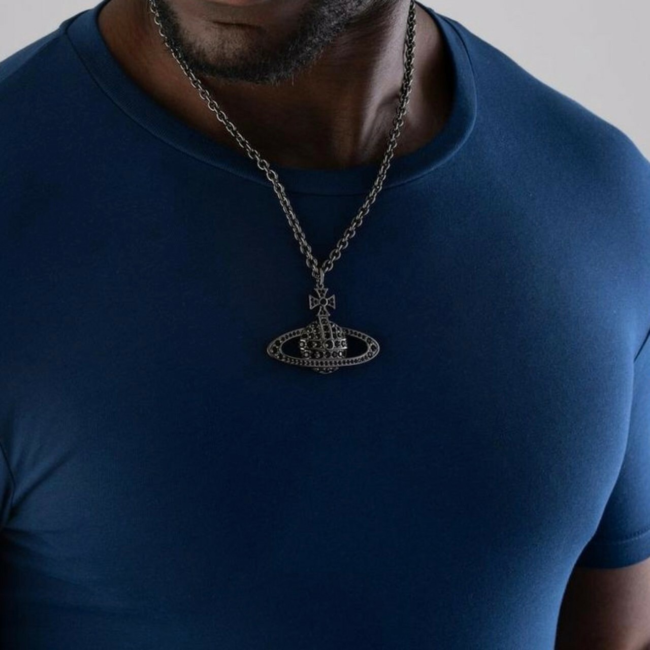 Vivienne Westwood 稀少款 黑色水晶浮雕Logo土星項鍊 大款